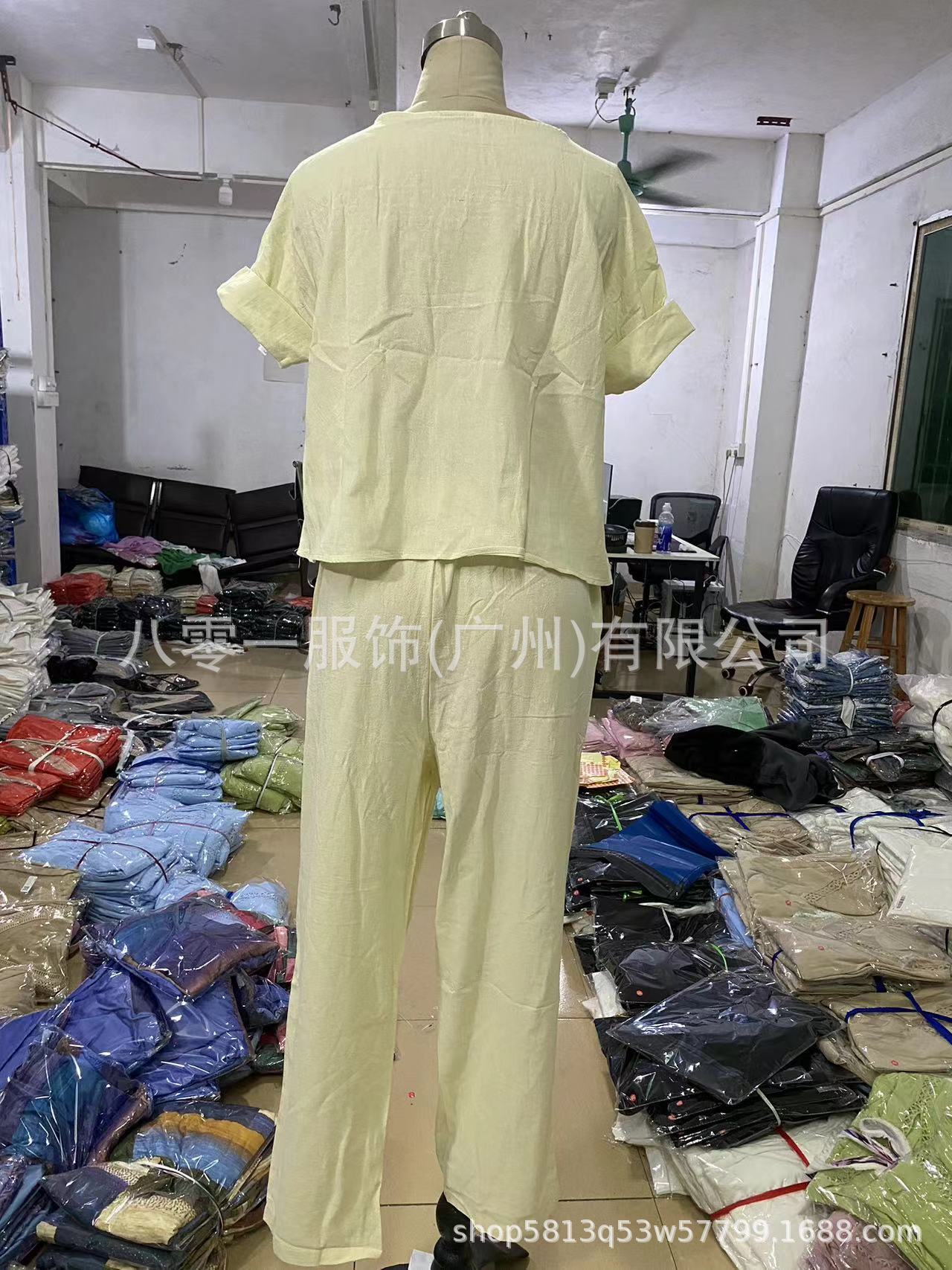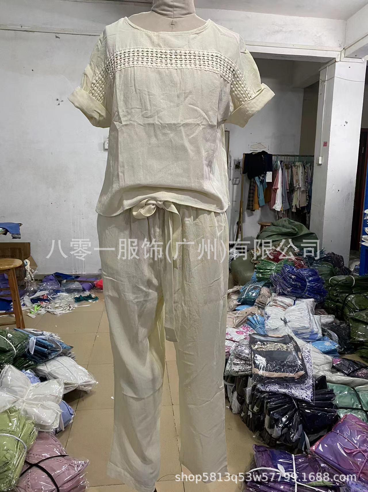 2024 대외 무역 봄과 여름 간단한 복고풍 탄성 허리 레이스 린넨 세트 여성 패션 단색 캐주얼 투피스 세트스토어 가기