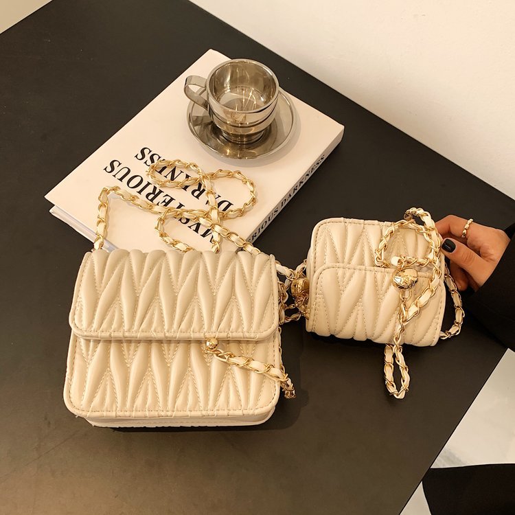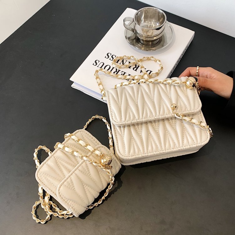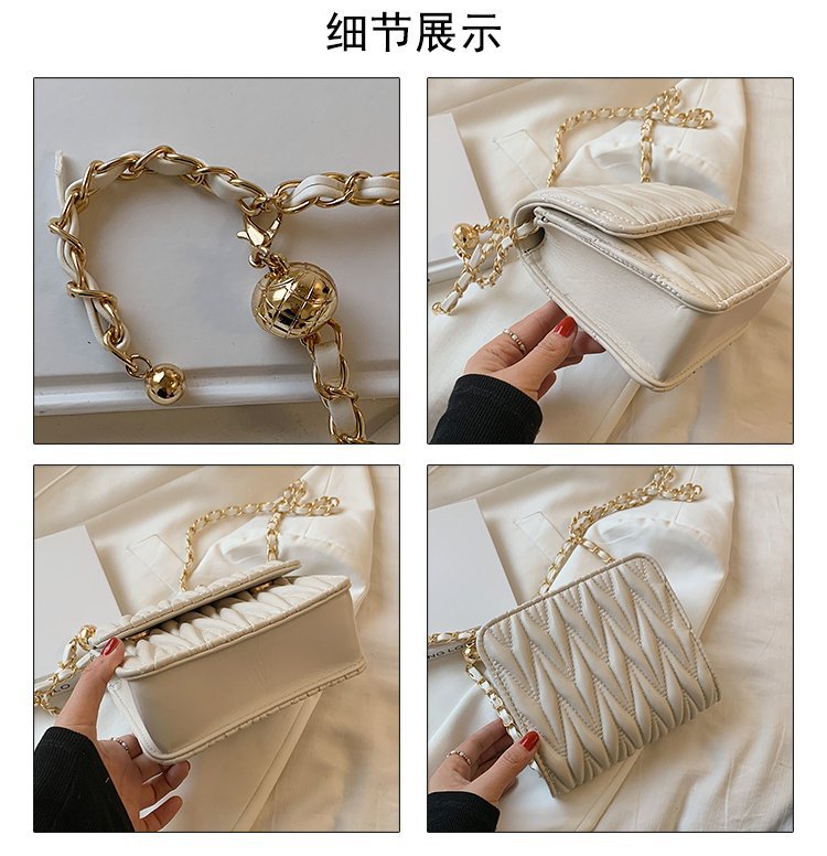 새로운 한국 스타일 다이아몬드 체인 작은 황금 공 간단한 패션 올 매치 어깨 메신저 가방 2024 여성을위한 작은 사각형 가방