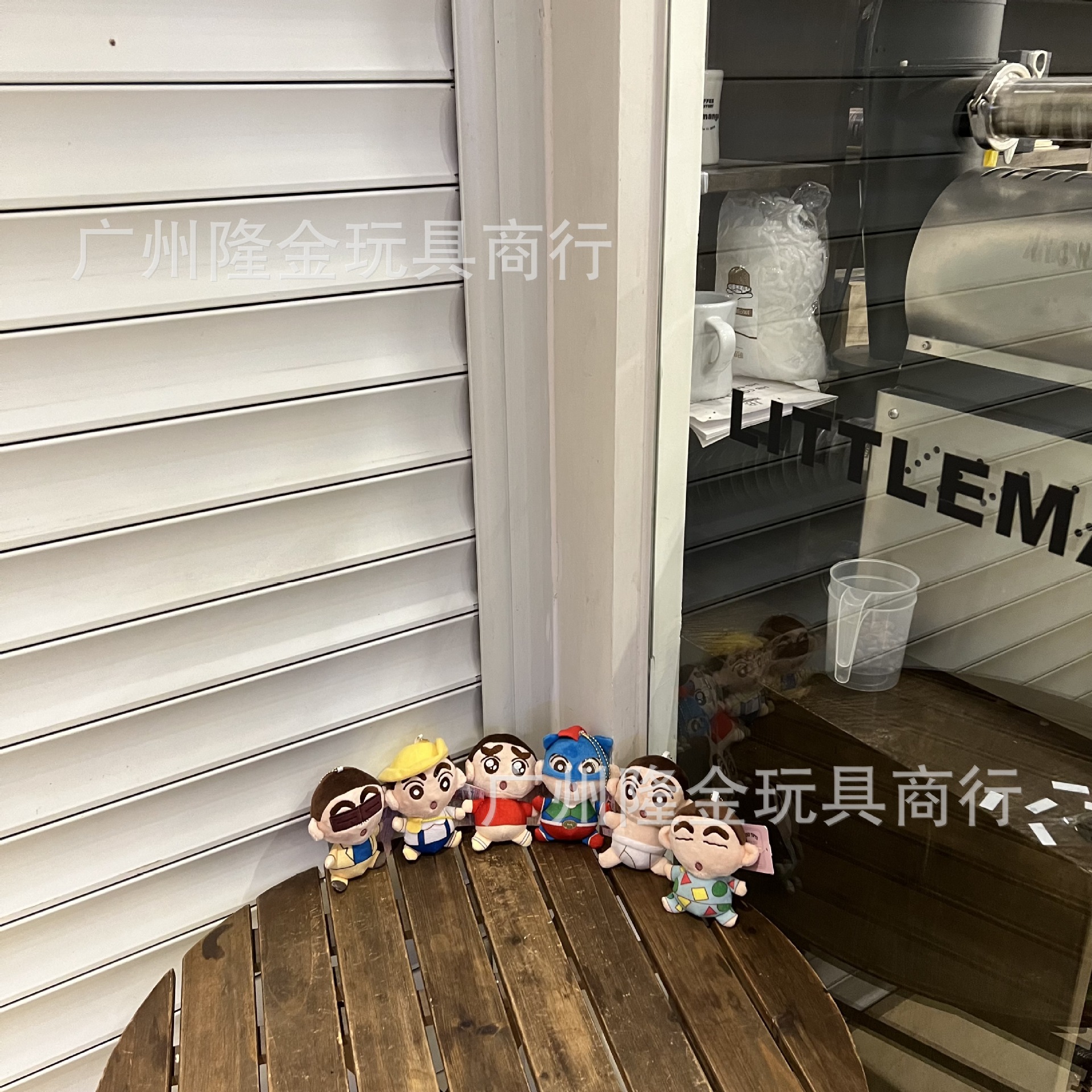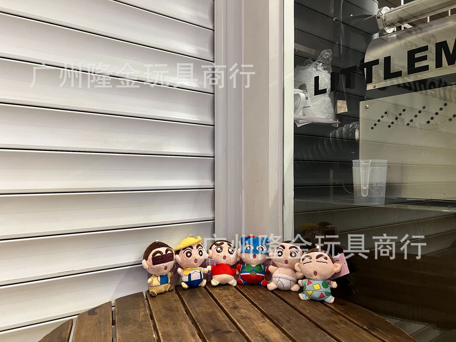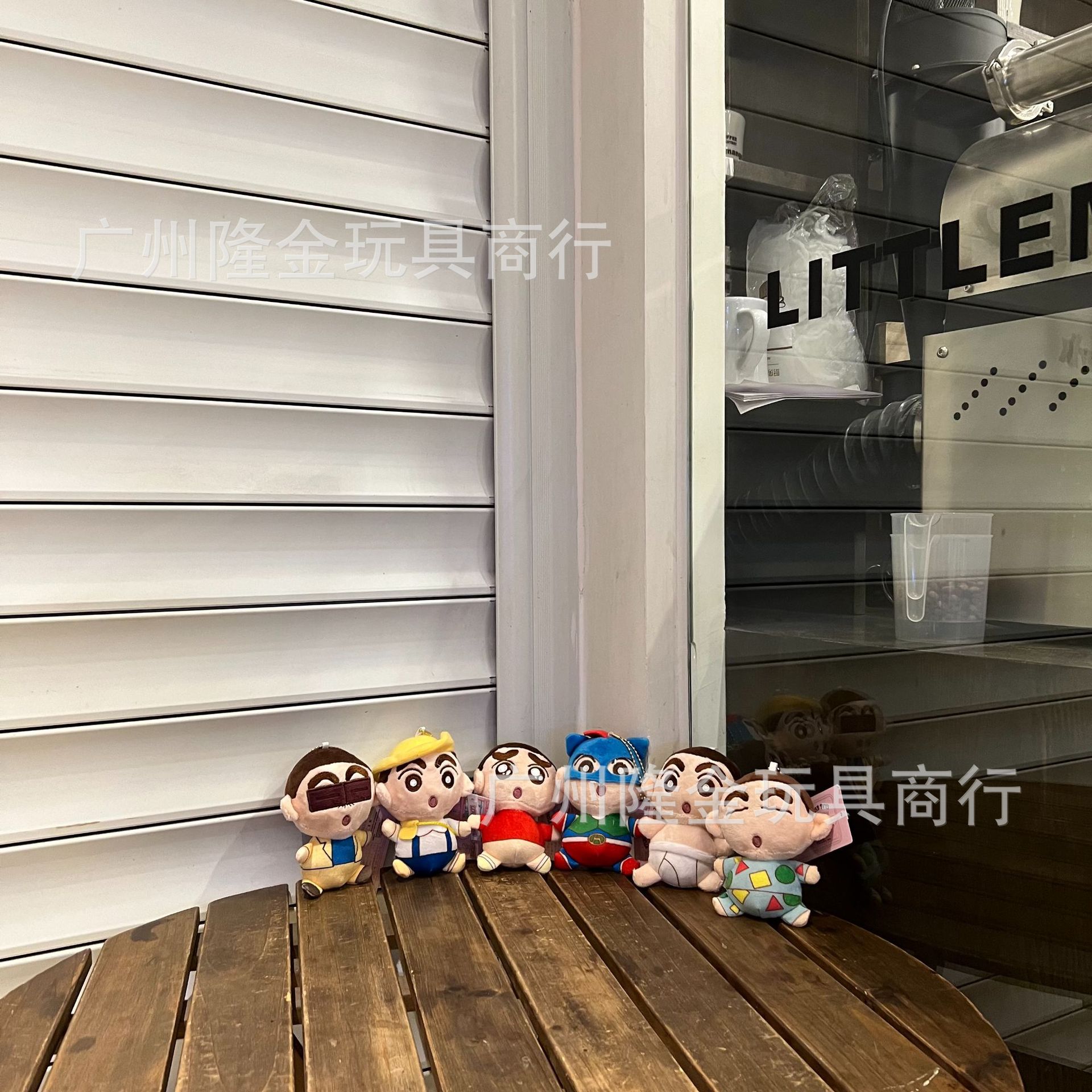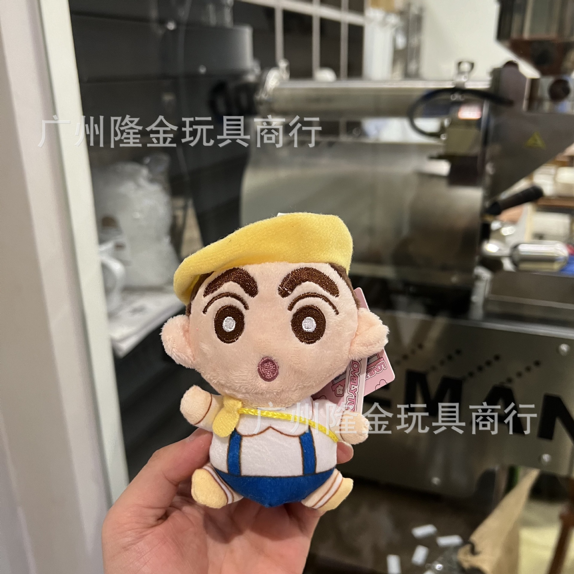 재고 만화 만화 귀여운 잠옷 크레용 작은 새로운 흰색 봉제 인형 가방 펜던트 비디오 게임 도시 인형 잡기 기계스토어 가기