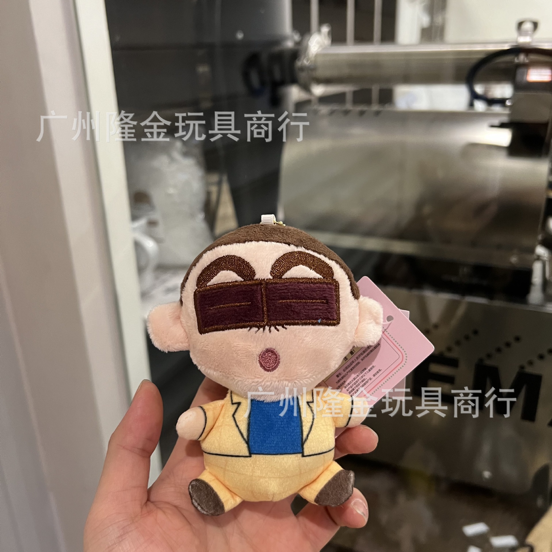 재고 만화 만화 귀여운 잠옷 크레용 작은 새로운 흰색 봉제 인형 가방 펜던트 비디오 게임 도시 인형 잡기 기계