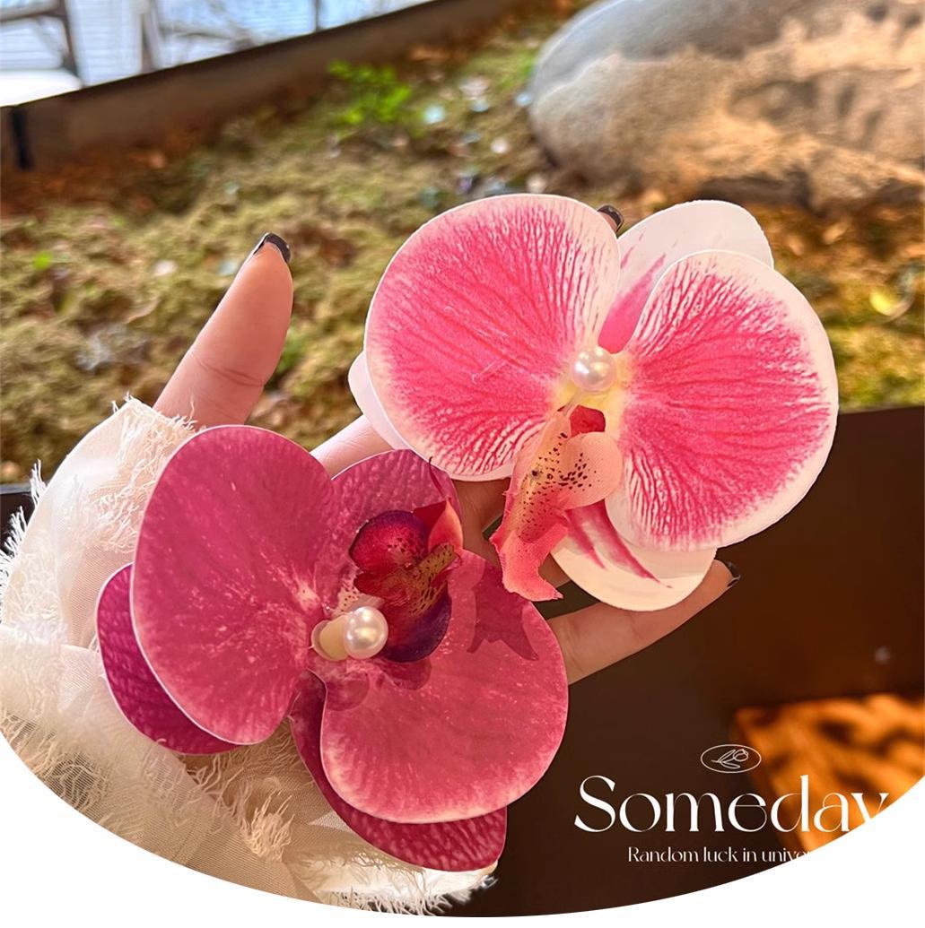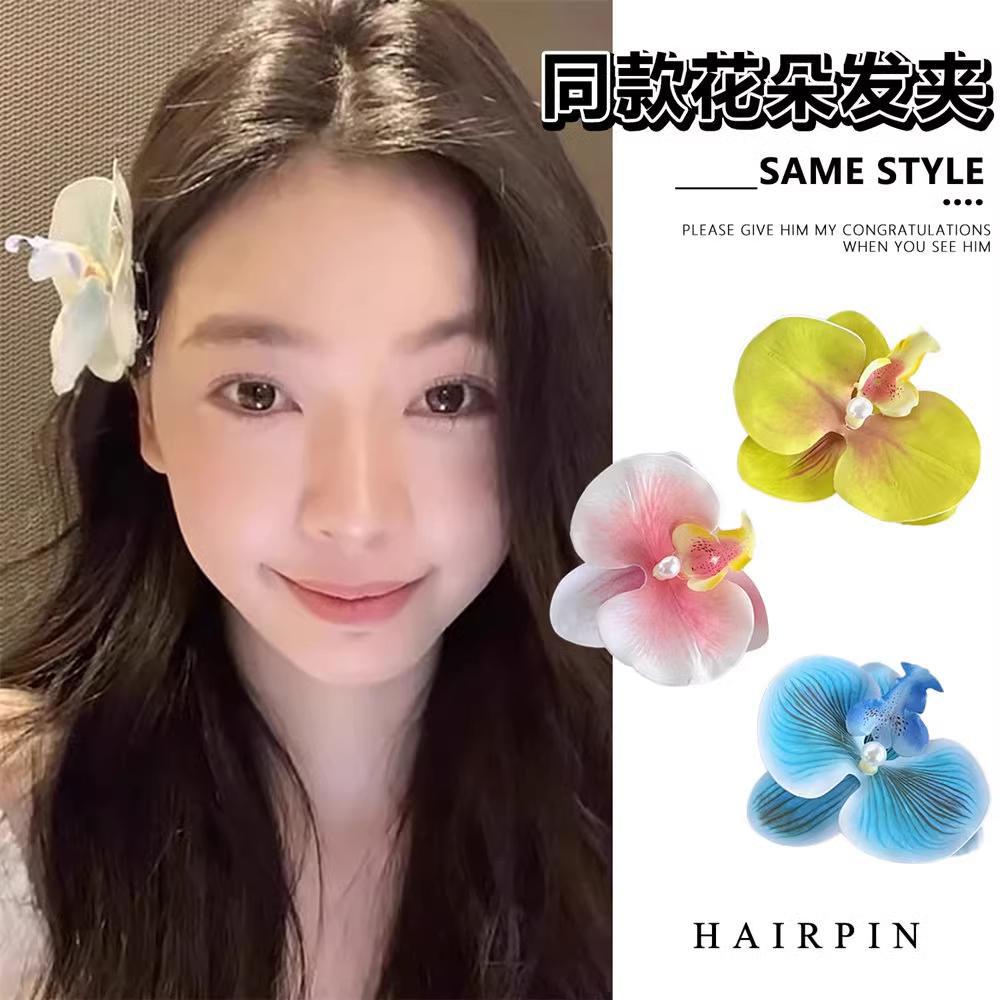 난초 꽃 머리핀 고급 분위기 헤일로 염색 나비 머리 소녀 하트 사이드 클립 헤어 액세서리 꽃 모양 머리 장식스토어 가기