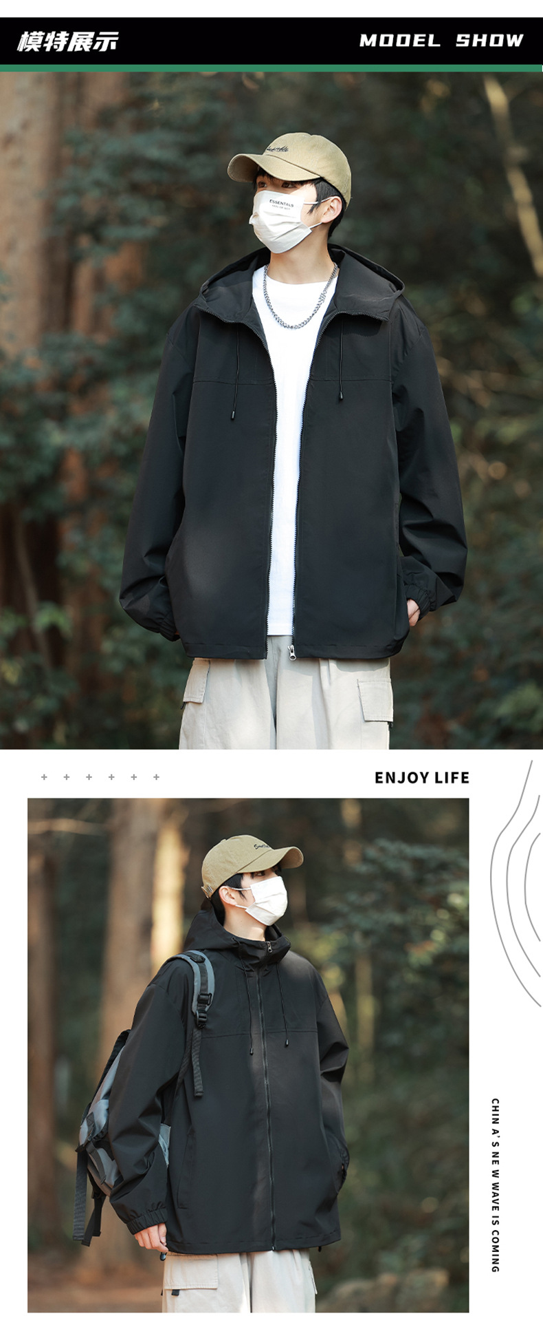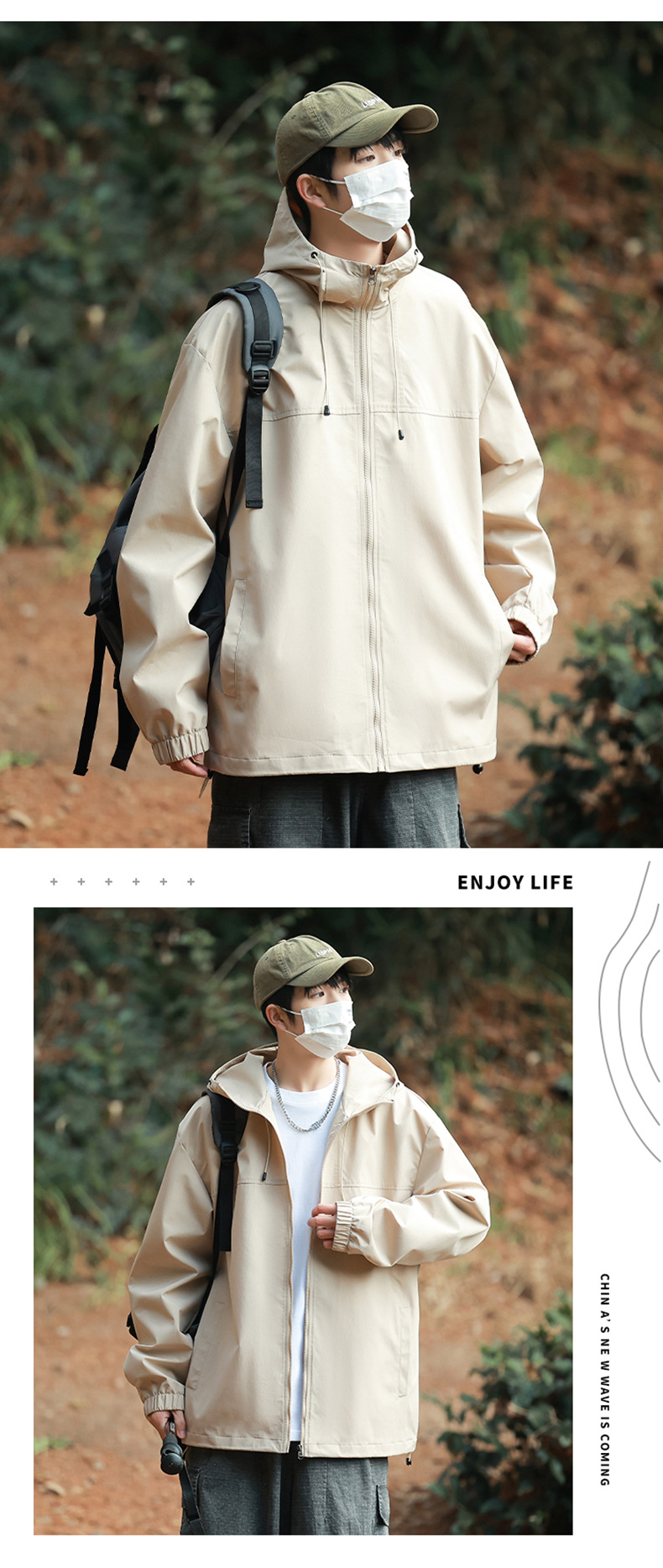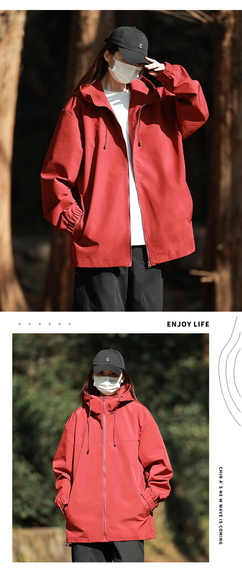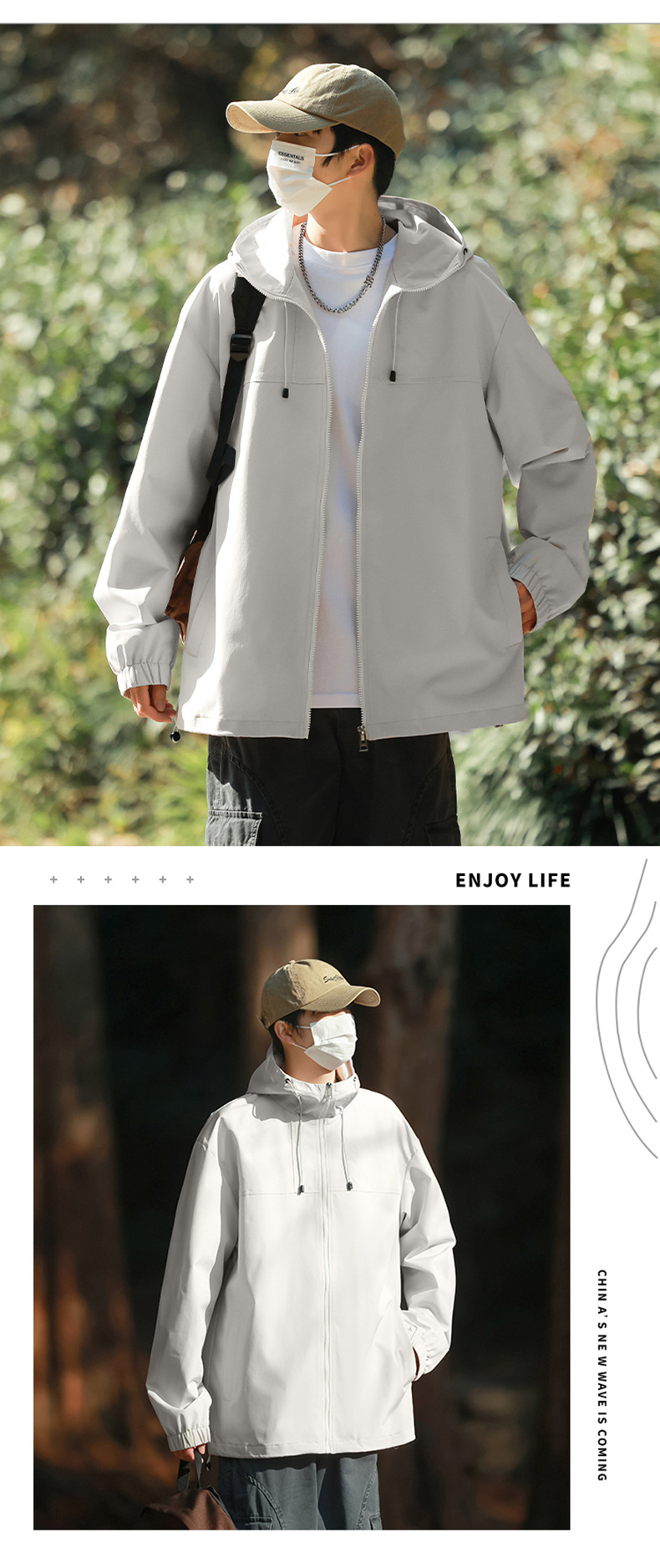 야외 활동용 심플 후드 재킷, 남녀 공용, 청년용 단색 다용도 재킷, 내구성과 실용성스토어 가기