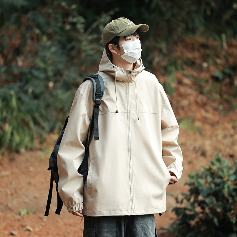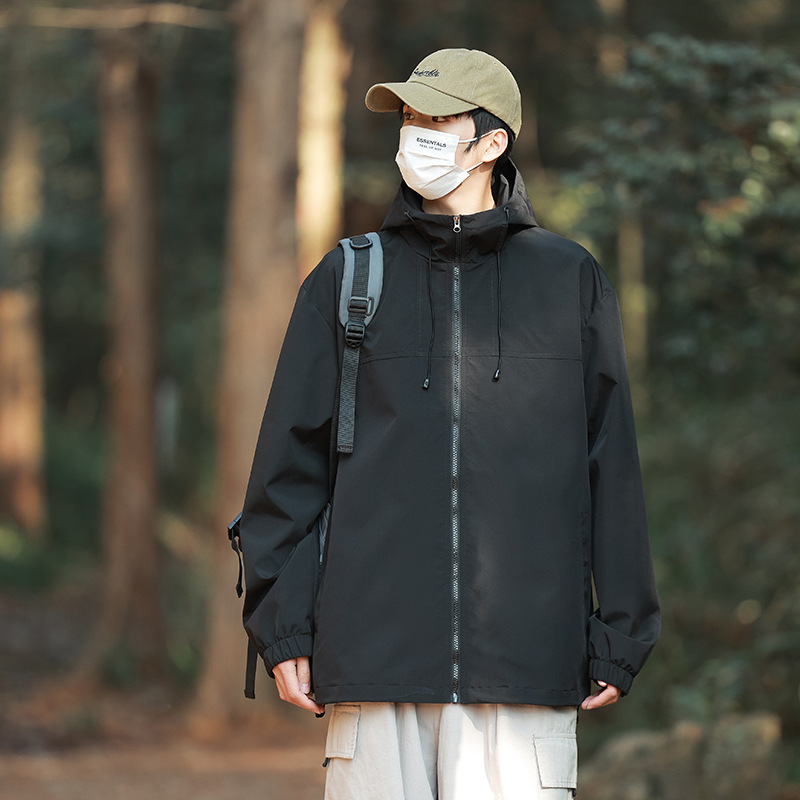야외 활동용 심플 후드 재킷, 남녀 공용, 청년용 단색 다용도 재킷, 내구성과 실용성