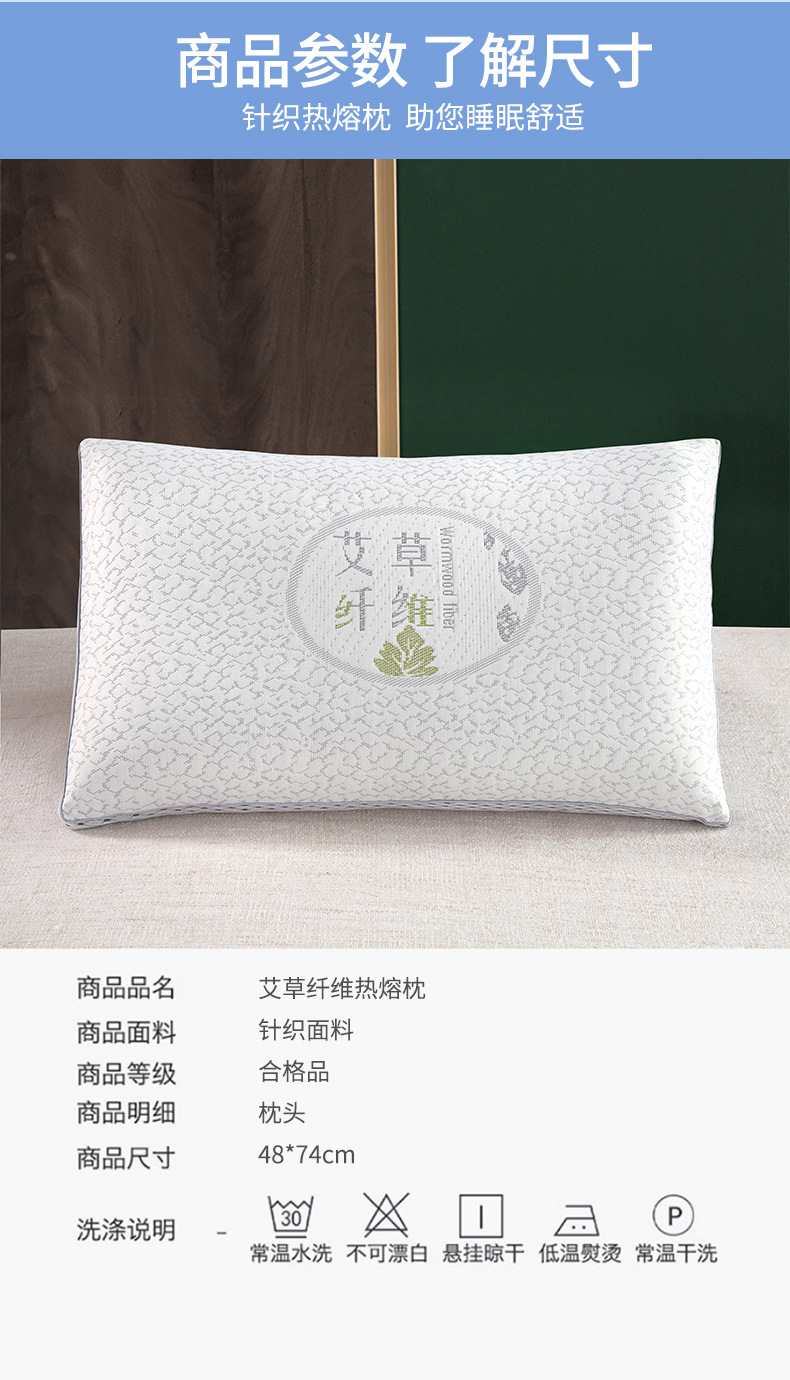 쑥 섬유 전체면 핫멜트 베개 빨 수있는 목 보호 진드기 단일 학생 가정용 베개 공장 공급스토어 가기