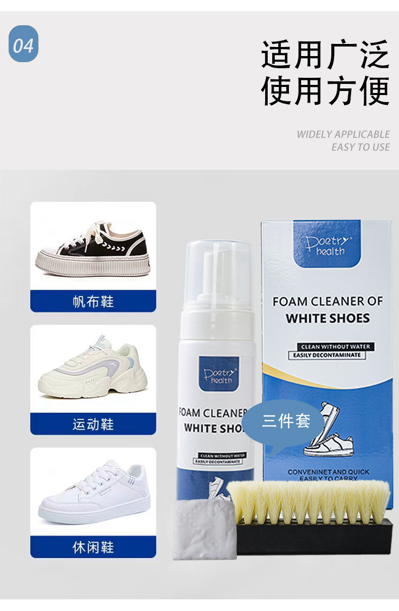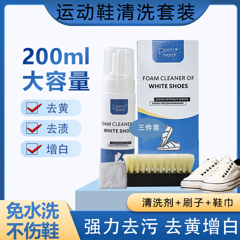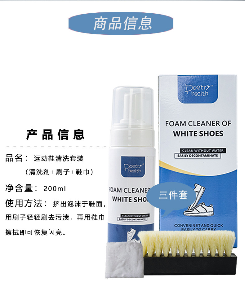 폼 슈 연마 3 피스 세트 컬러 박스 화이트 슈즈 클리너 세트 브러시 타월 드라이 클리닝 에이전트 3 피스 세트