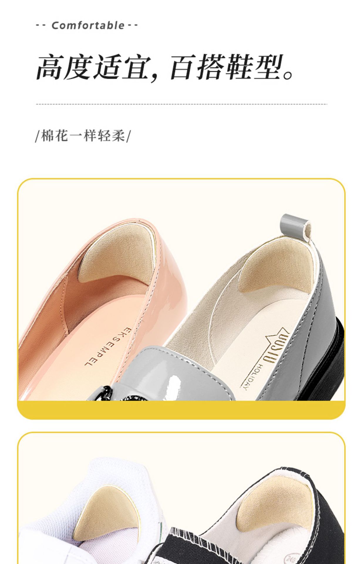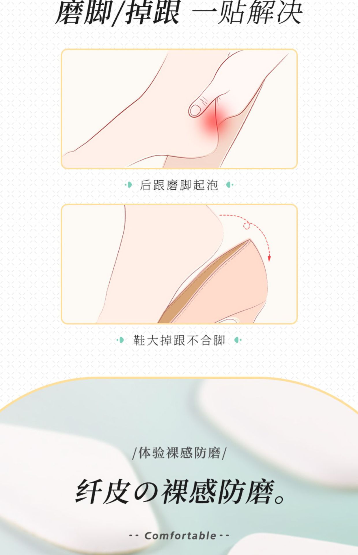 발뒤꿈치가 빠지지 않게 하는 하이힐 뒤꿈치 패드, 하이힐 사이즈 조정 도구, 반사이즈 패드, 한 사이즈 더 작아서 빠지지 않게