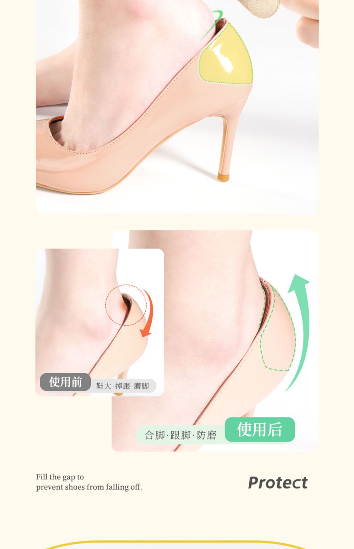 발뒤꿈치가 빠지지 않게 하는 하이힐 뒤꿈치 패드, 하이힐 사이즈 조정 도구, 반사이즈 패드, 한 사이즈 더 작아서 빠지지 않게스토어 가기