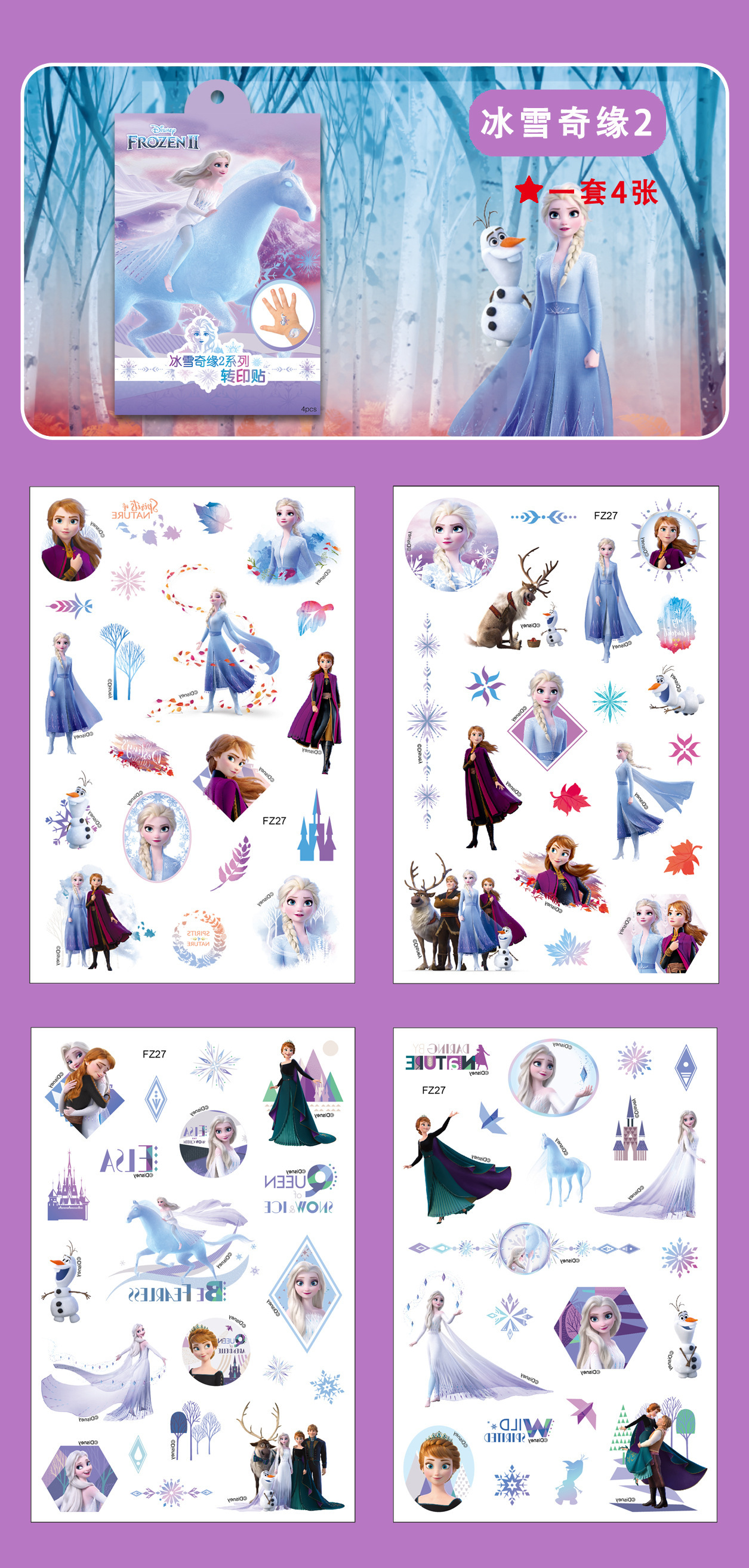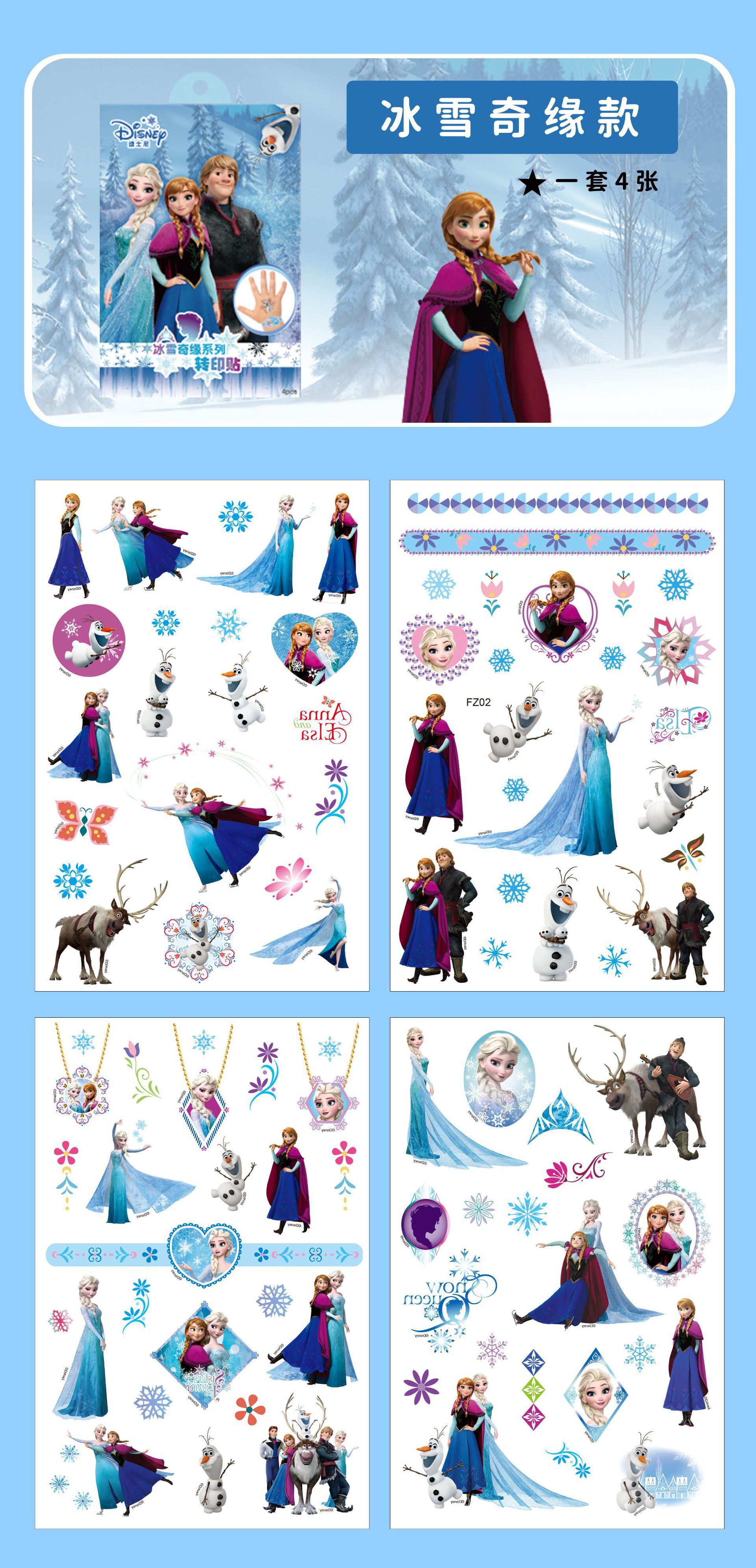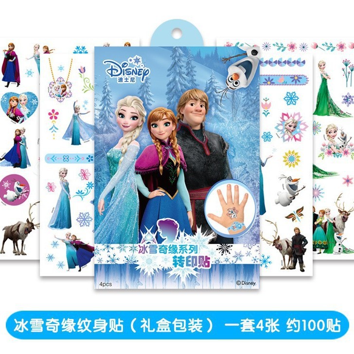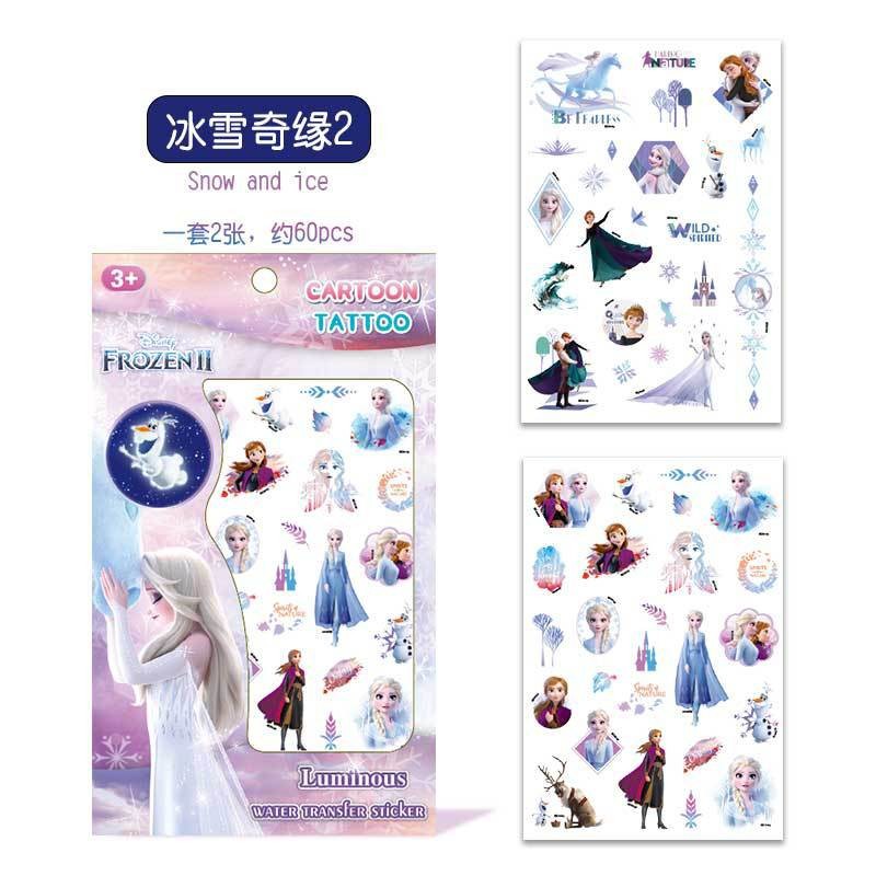 정품 냉동 공주 엘사 문신 스티커 어린이 만화 슈퍼 비행 남자 전송 스티커 방수스토어 가기