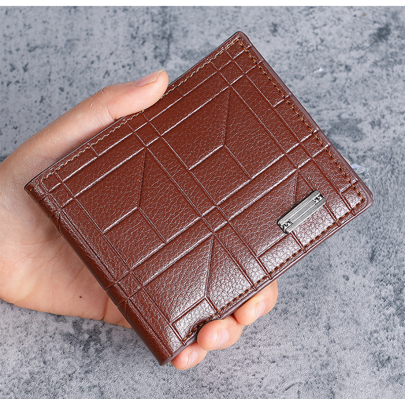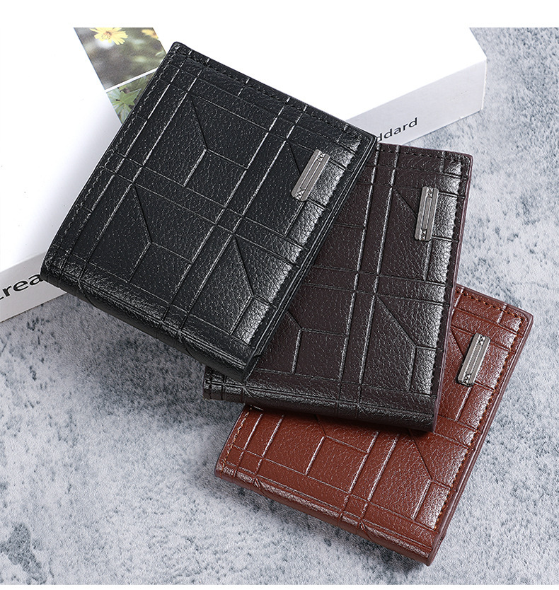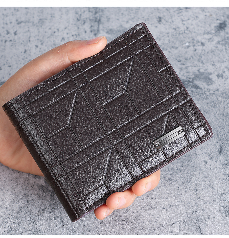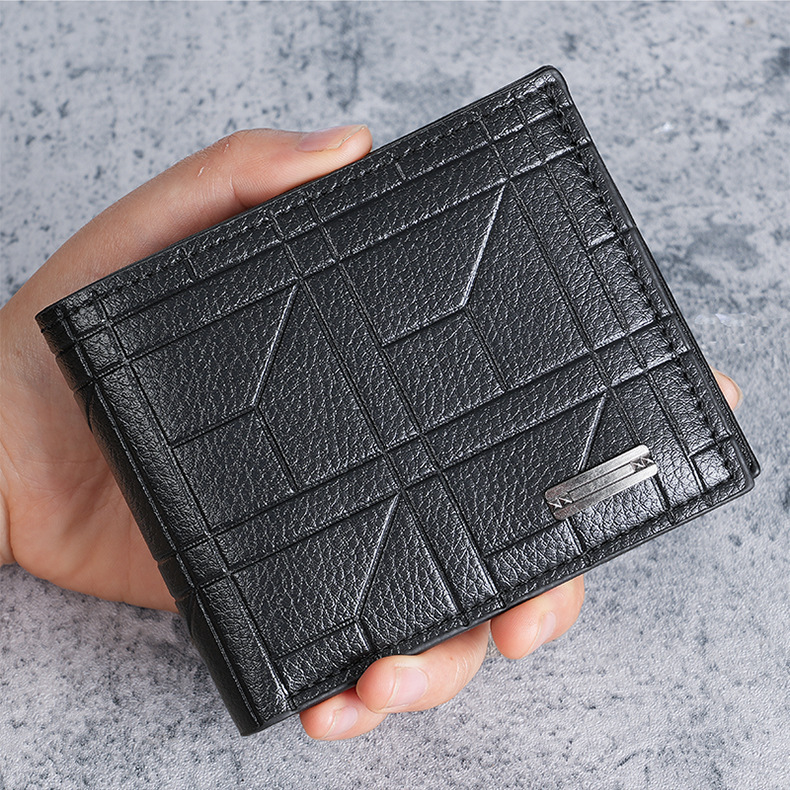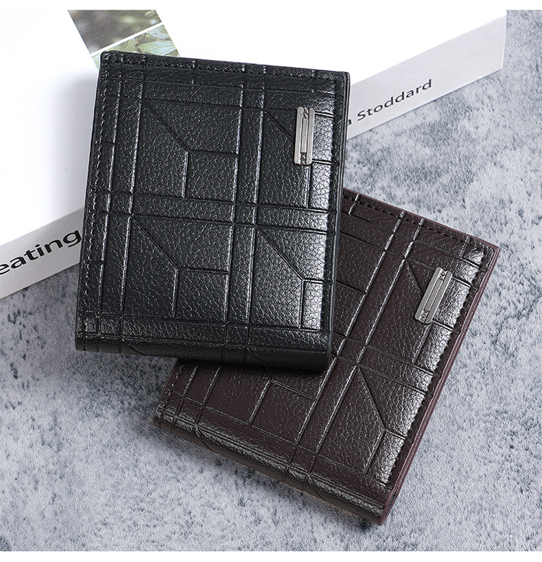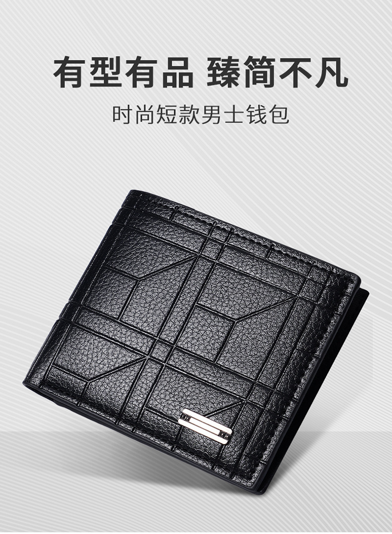새로운 남성 지갑 남자의 짧은 지갑 청소년 패션 격자 무늬 수평 소프트 지갑 대용량 멀티 카드 지갑