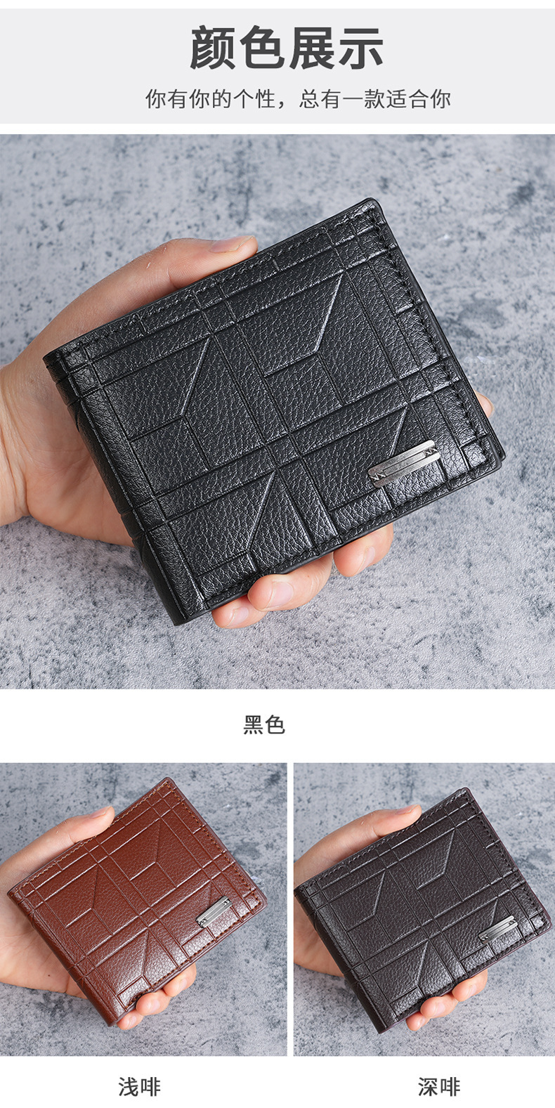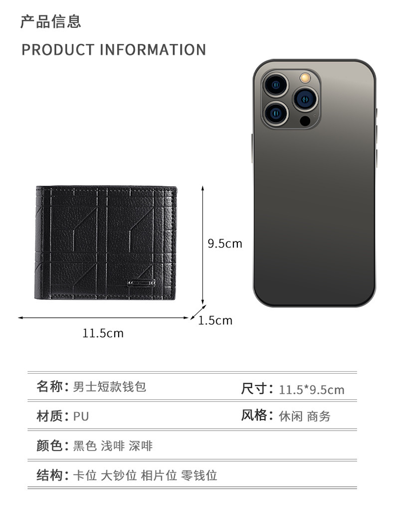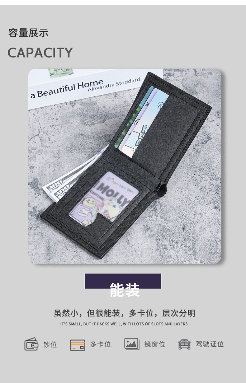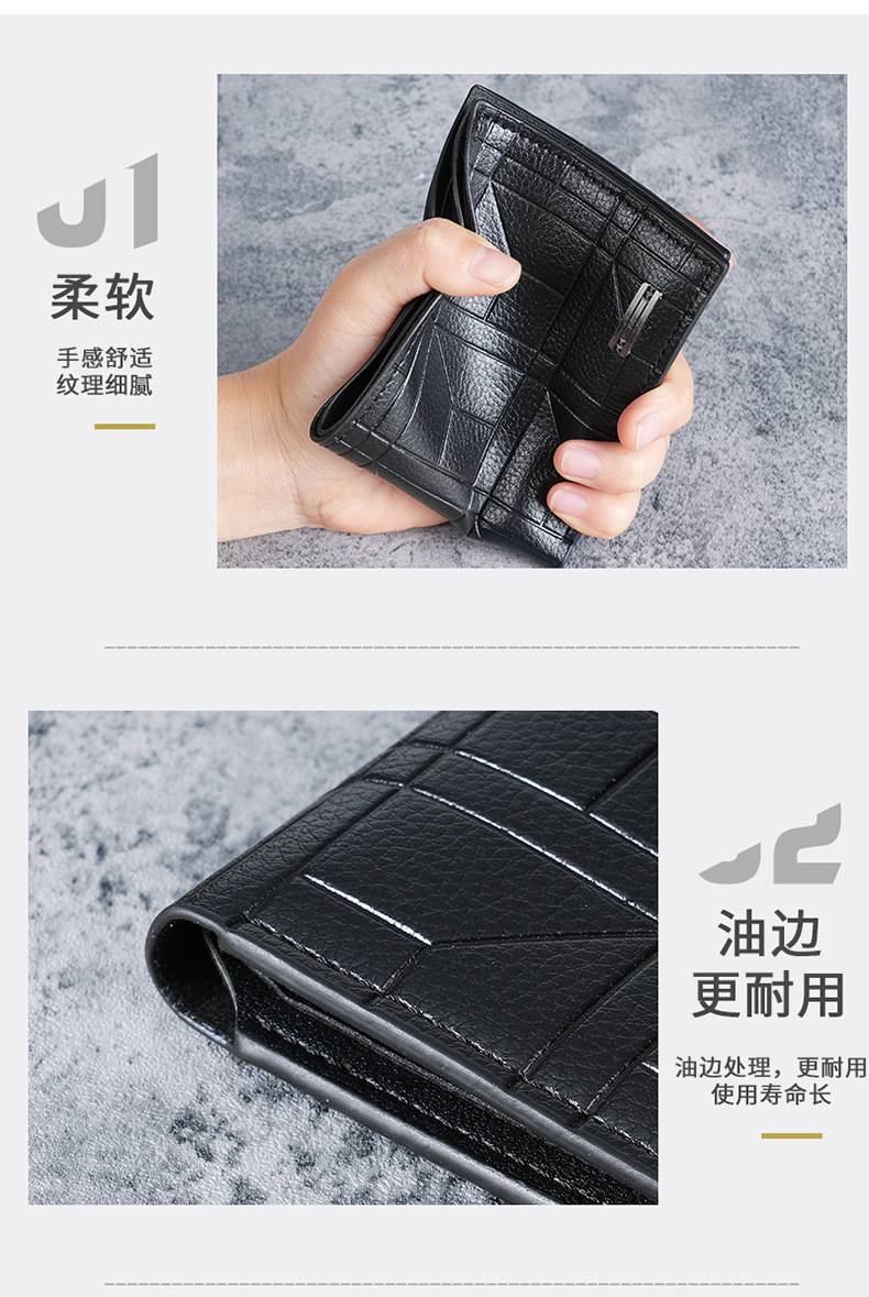 새로운 남성 지갑 남자의 짧은 지갑 청소년 패션 격자 무늬 수평 소프트 지갑 대용량 멀티 카드 지갑