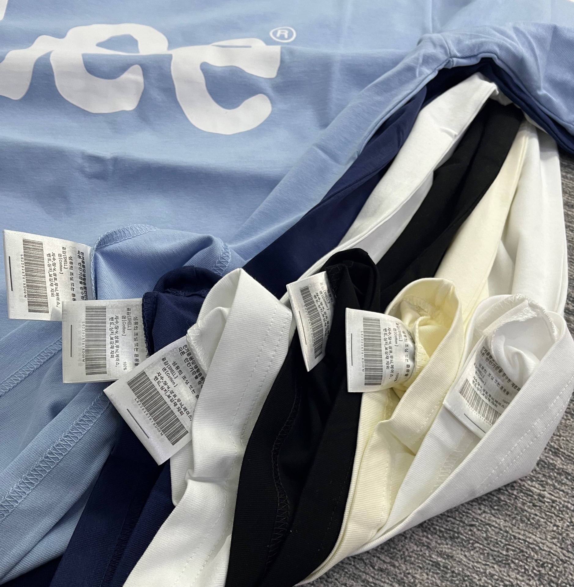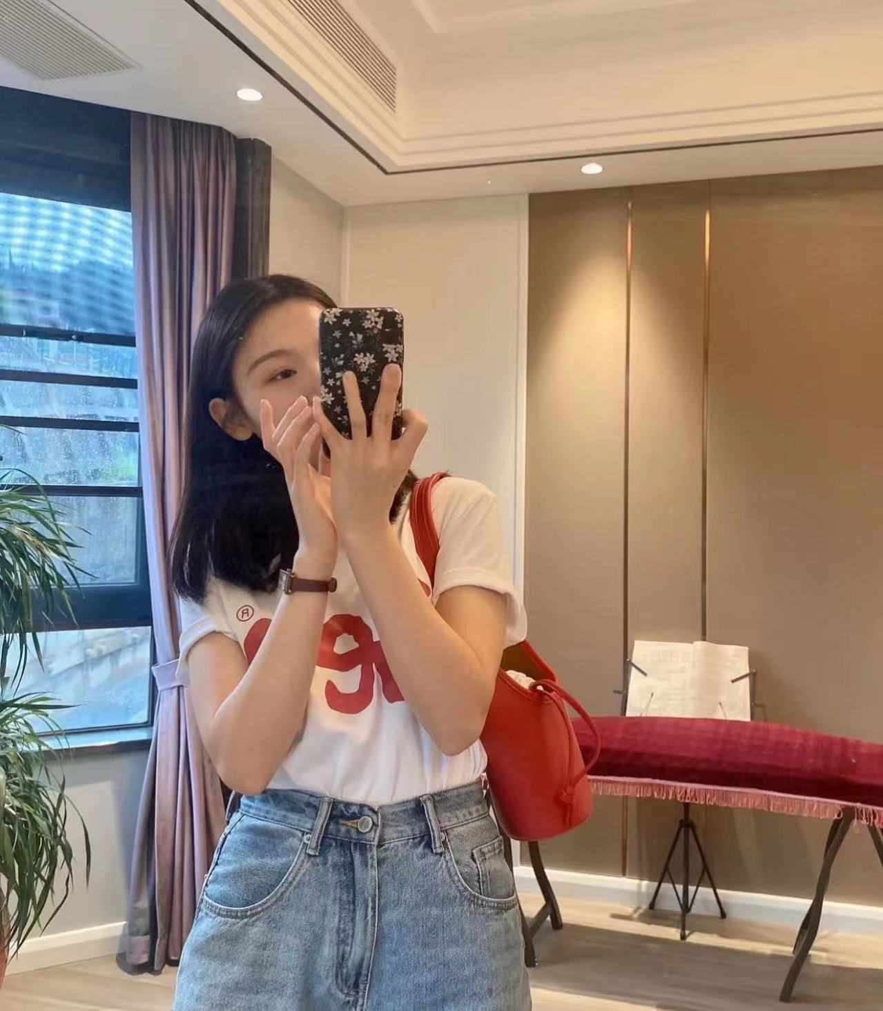 한국 틈새 트렌디 브랜드 Lee Wang Yibo Jin Baoluo의 동일한 클래식 로고 루즈 라운드 넥 퓨어 코튼 반팔 티셔츠 여성용
