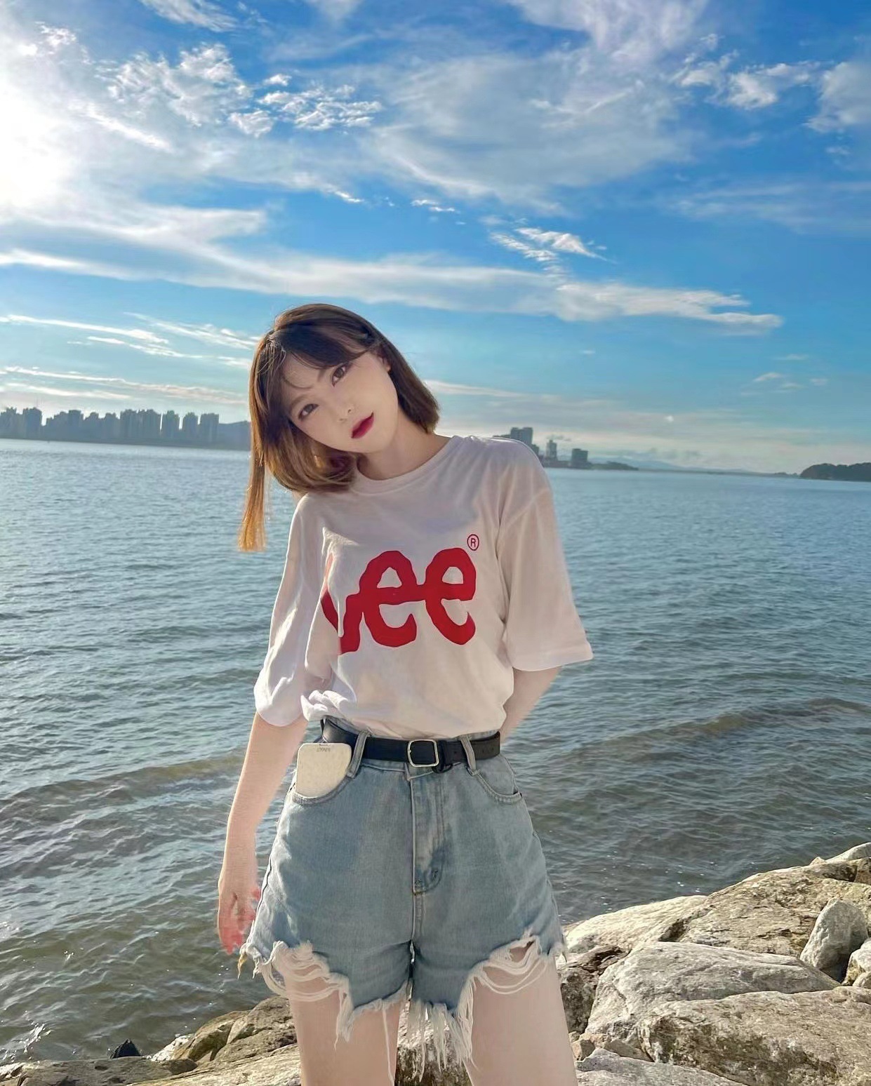 한국 틈새 트렌디 브랜드 Lee Wang Yibo Jin Baoluo의 동일한 클래식 로고 루즈 라운드 넥 퓨어 코튼 반팔 티셔츠 여성용스토어 가기
