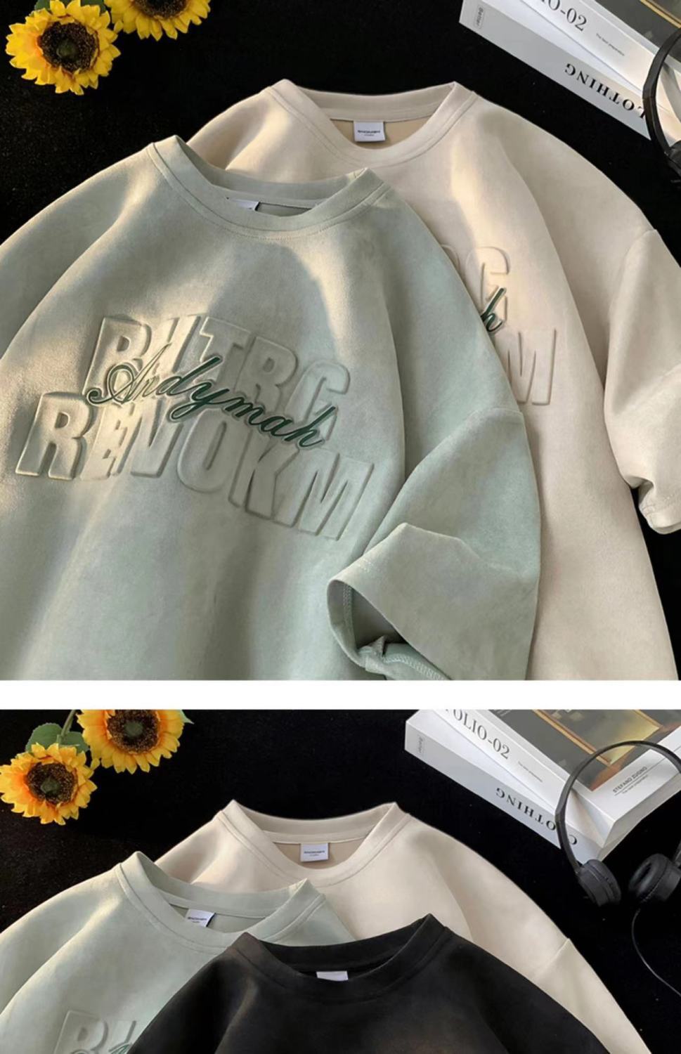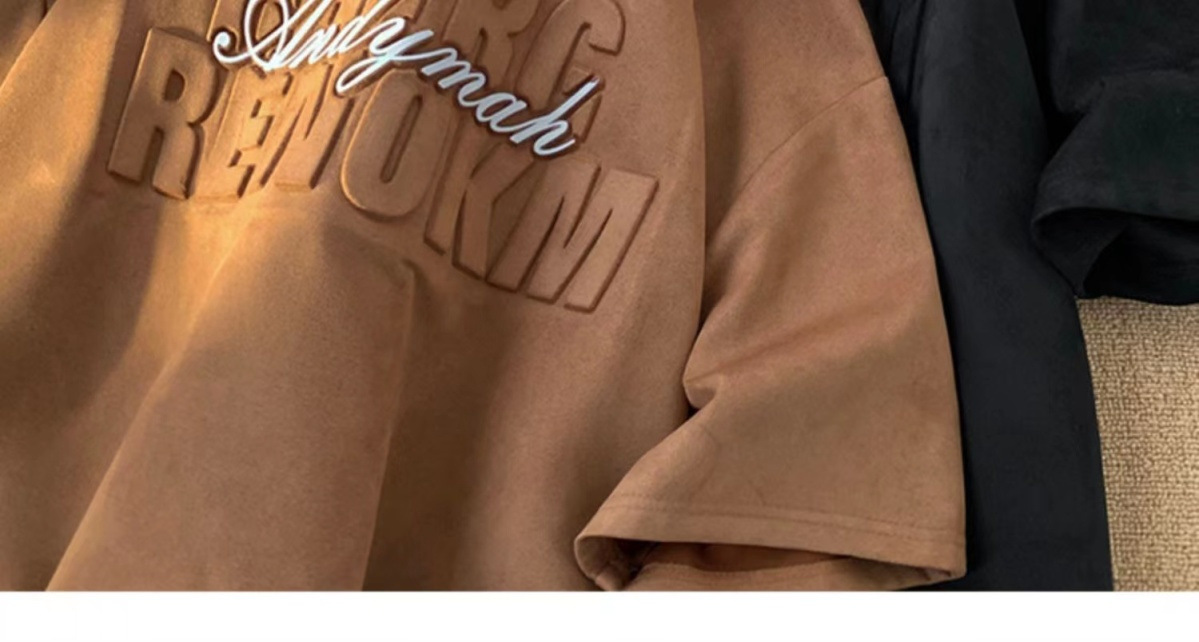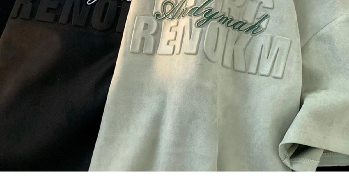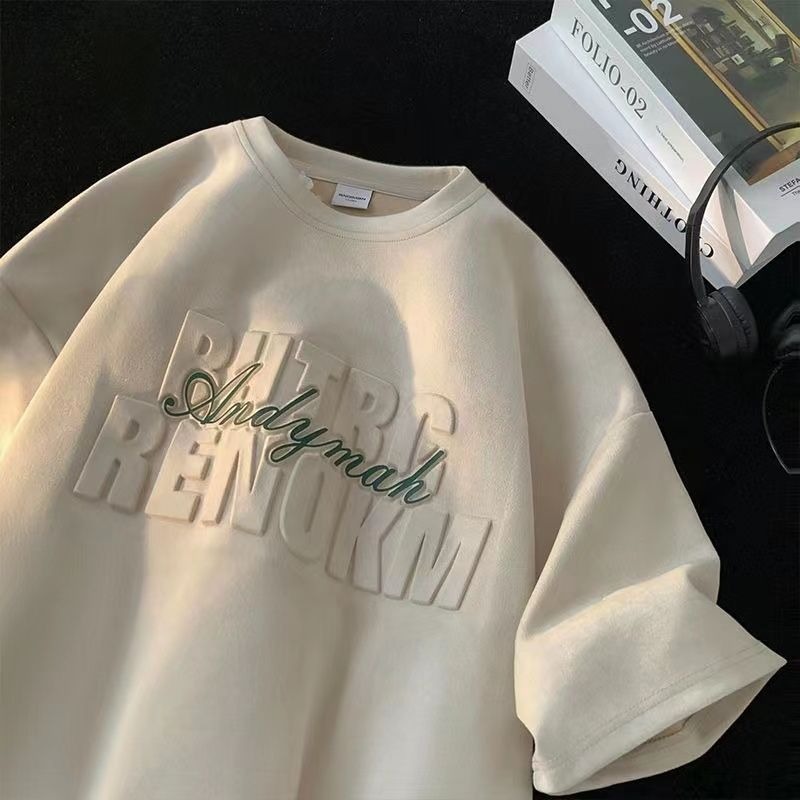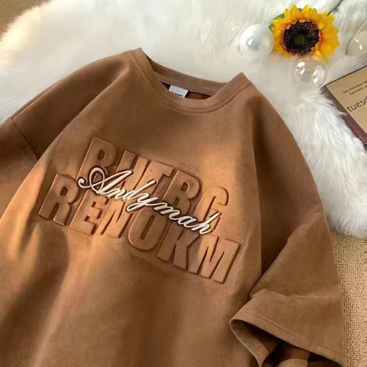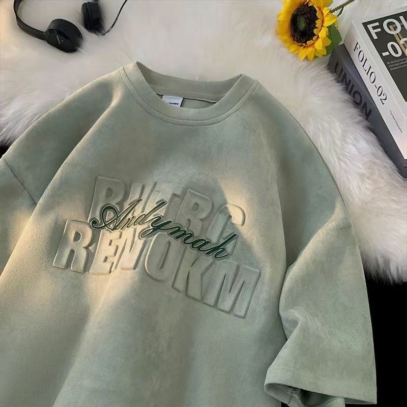 헤비 스웨이드 반팔 티셔츠 남성 여름 얇은 미국 복고풍 패션 브랜드 반소매 트렌디 한 올 매치 라운드 넥 탑스토어 가기