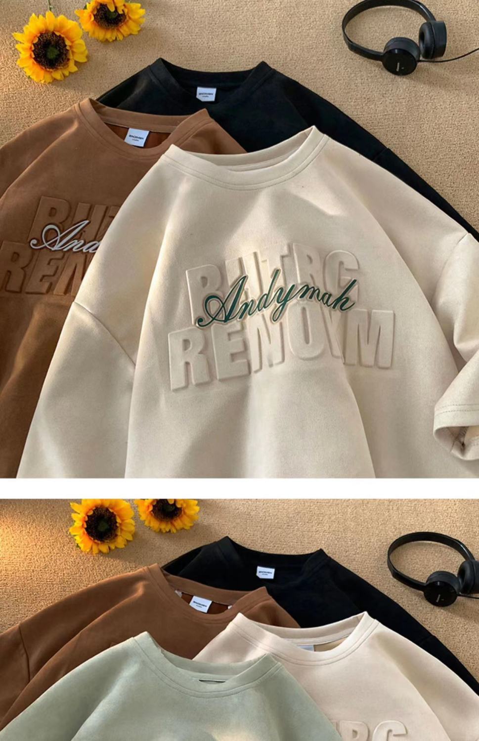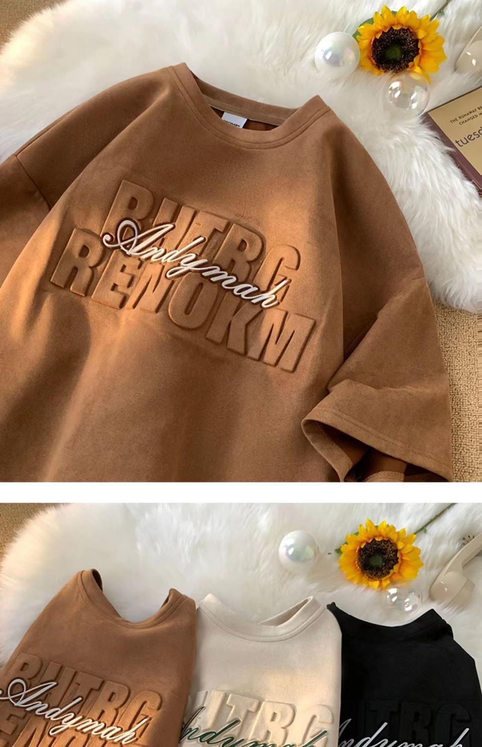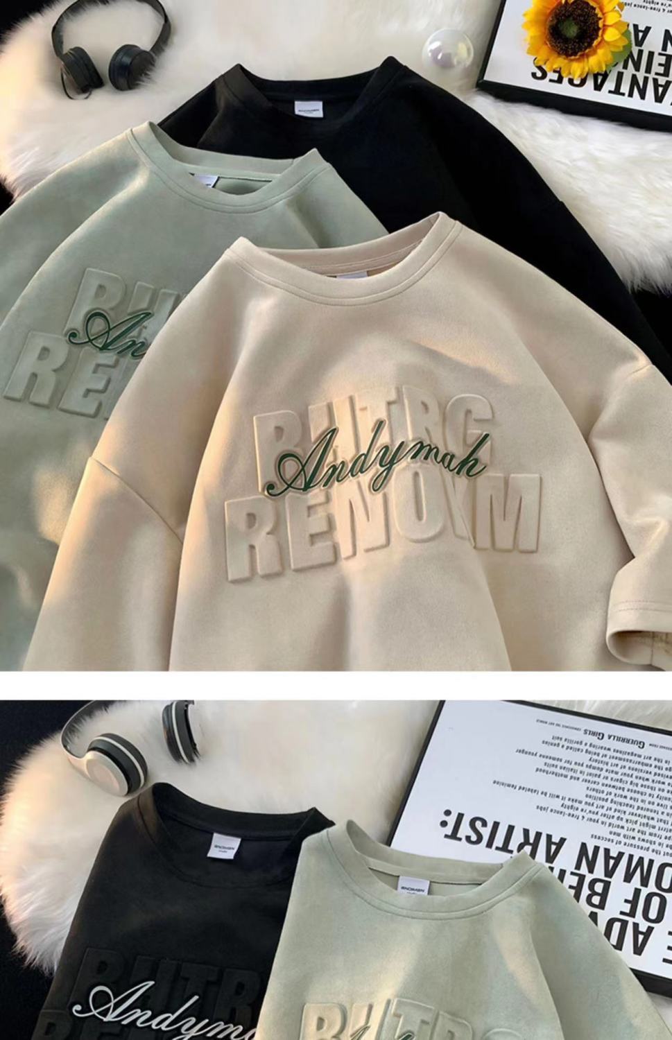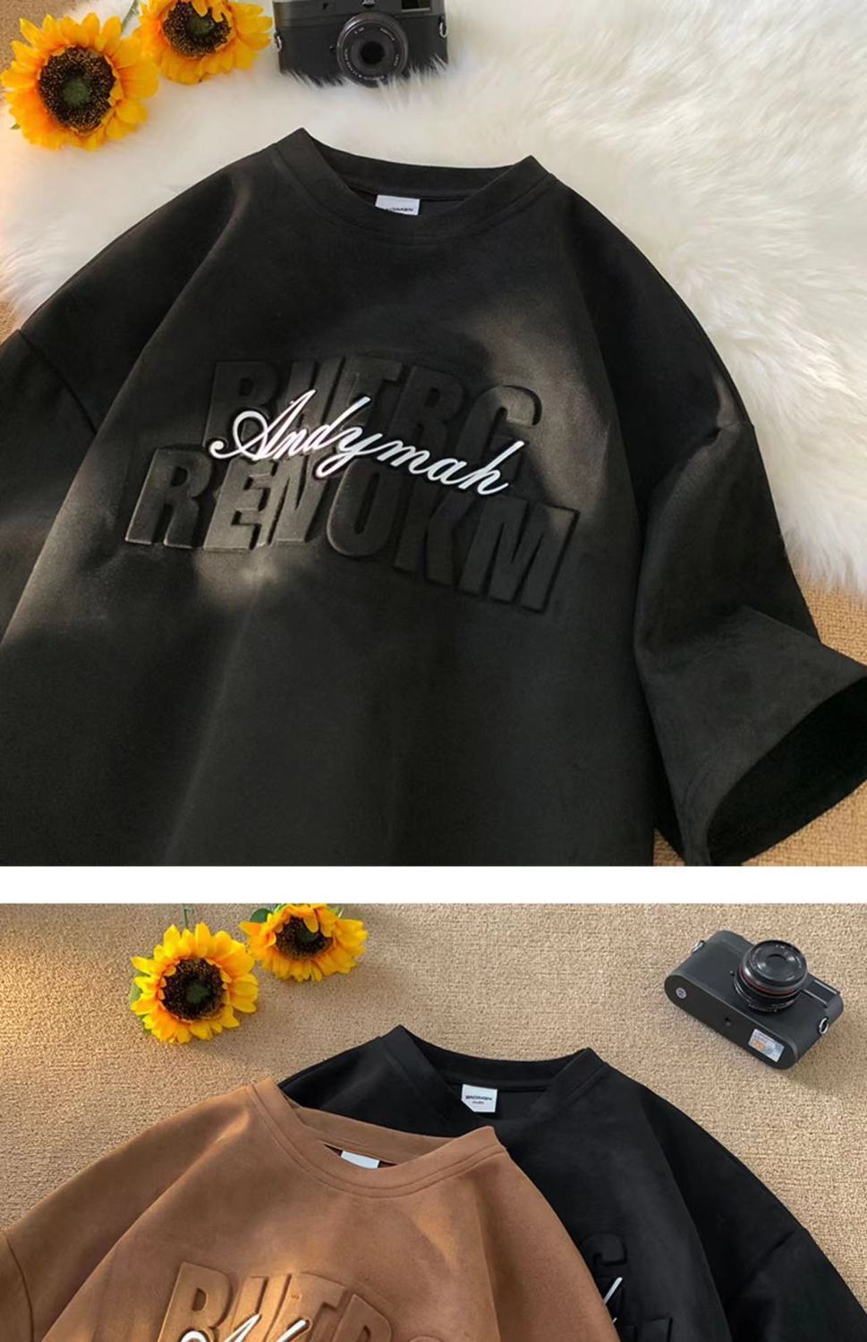 헤비 스웨이드 반팔 티셔츠 남성 여름 얇은 미국 복고풍 패션 브랜드 반소매 트렌디 한 올 매치 라운드 넥 탑스토어 가기