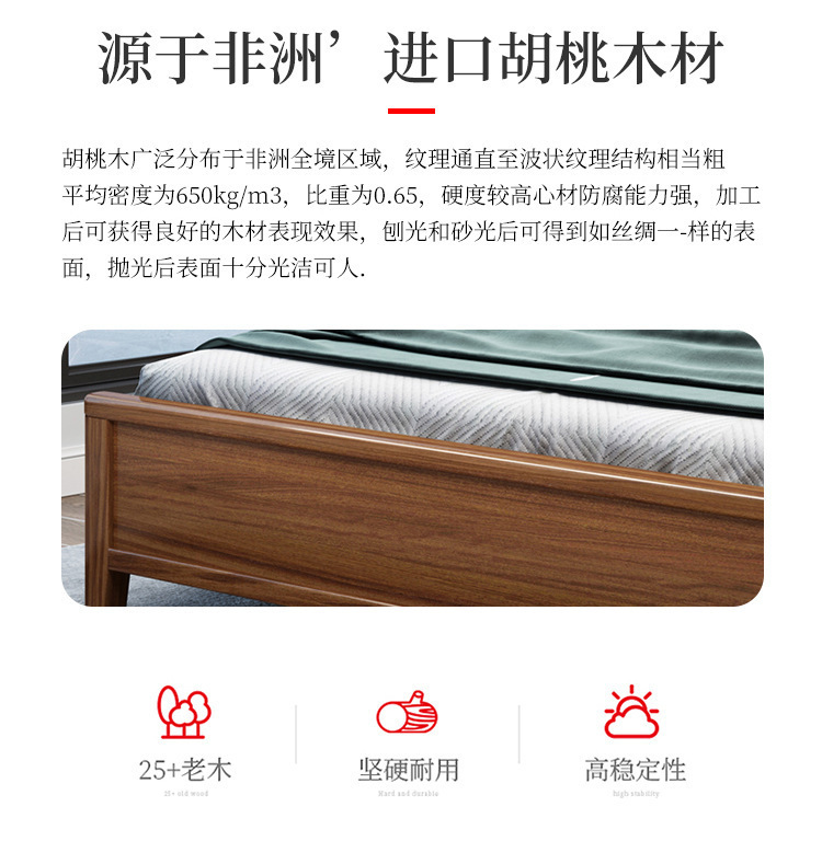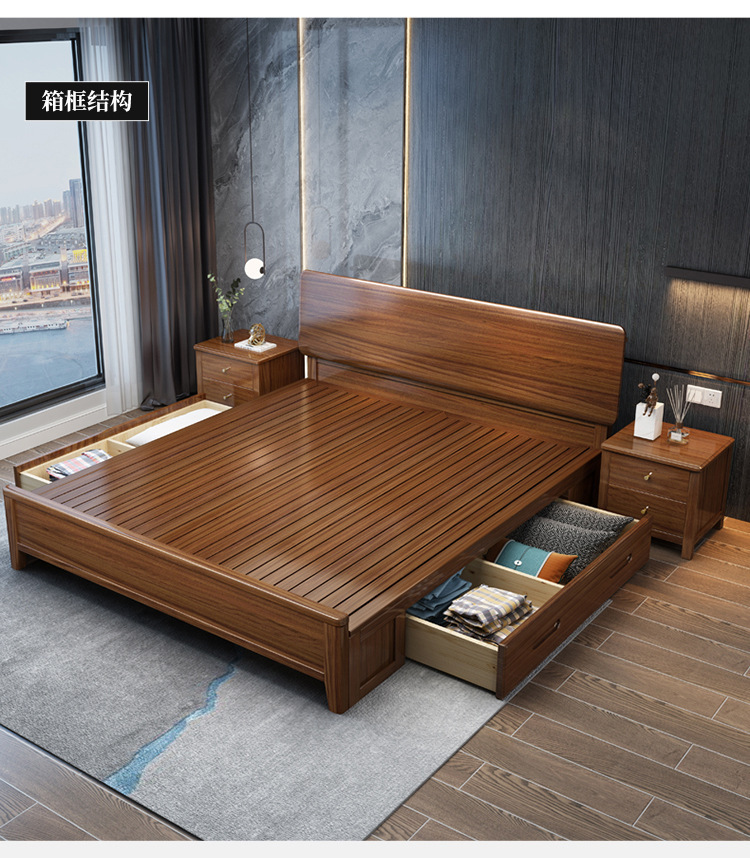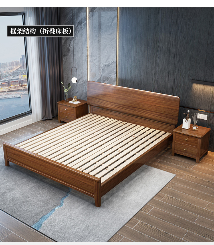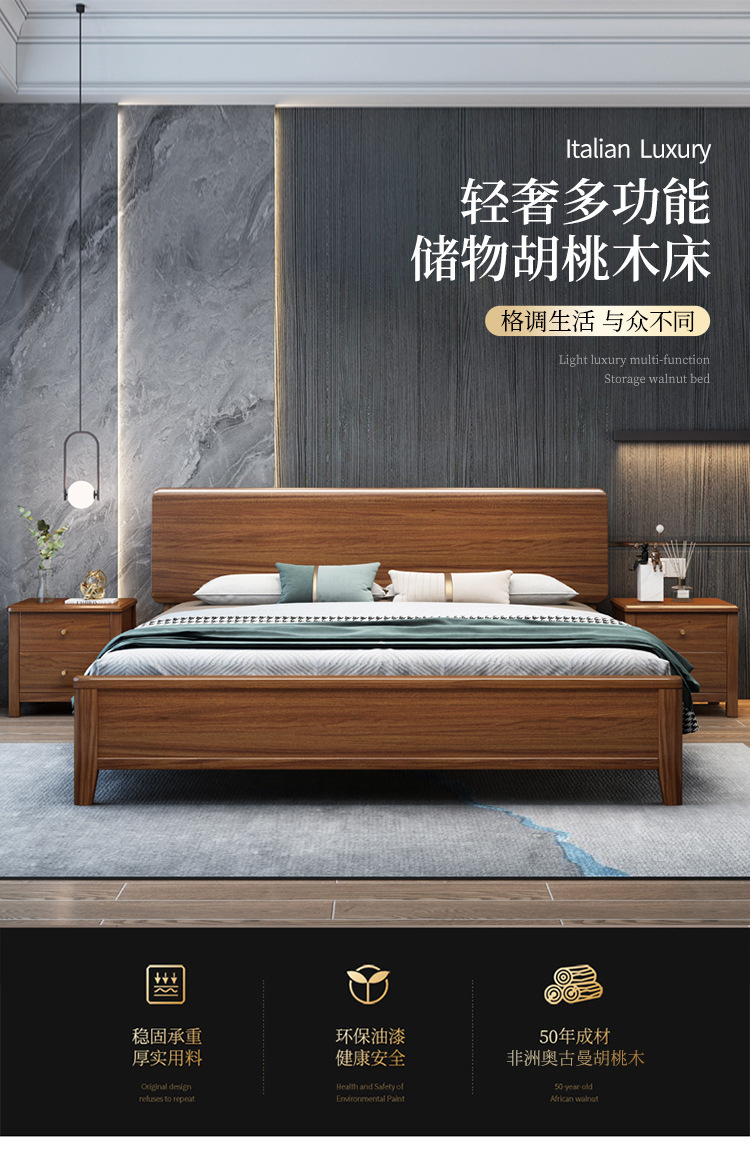 현대 미니멀리스트 북유럽 호두 나무 침대 1.5m 미니멀리스트 웨딩 침대 1.8m 마스터 침실 더블 침대 Dropshipping 도매