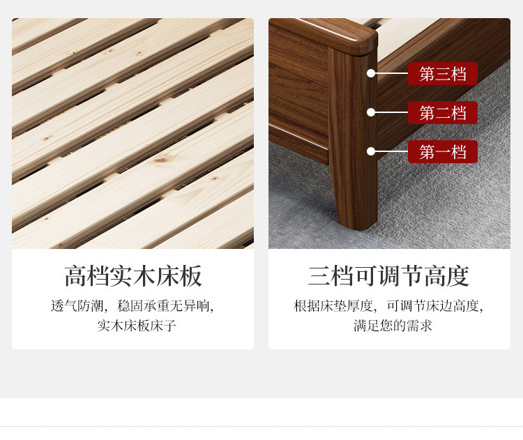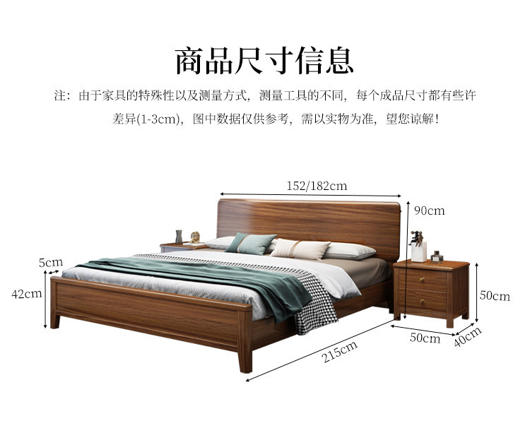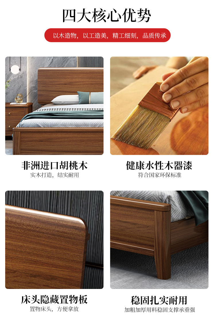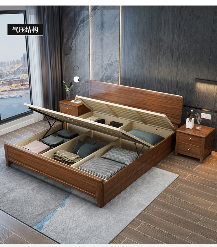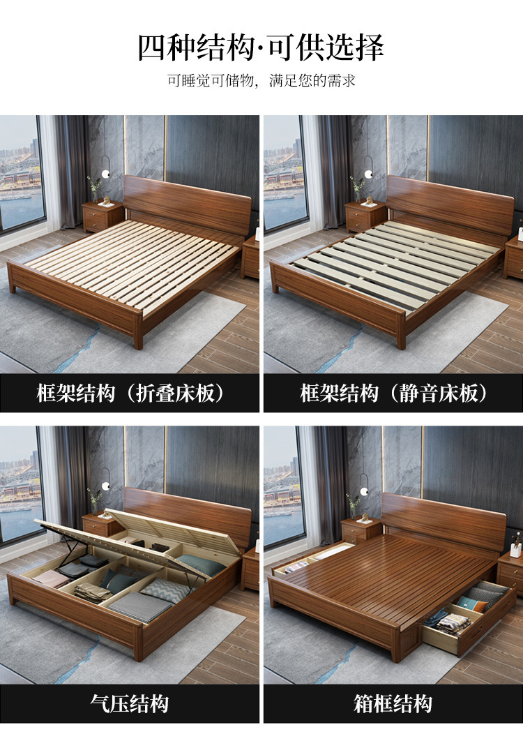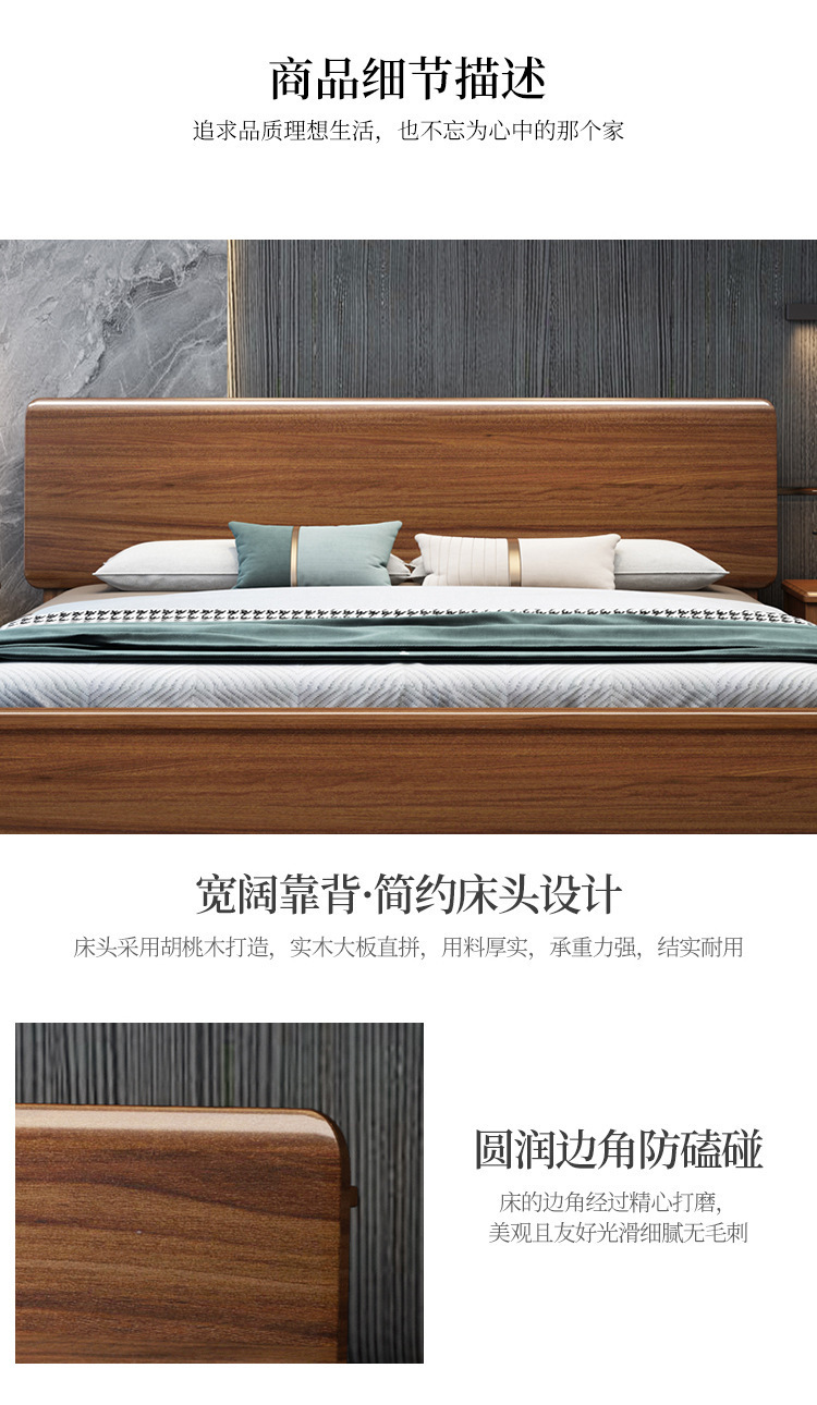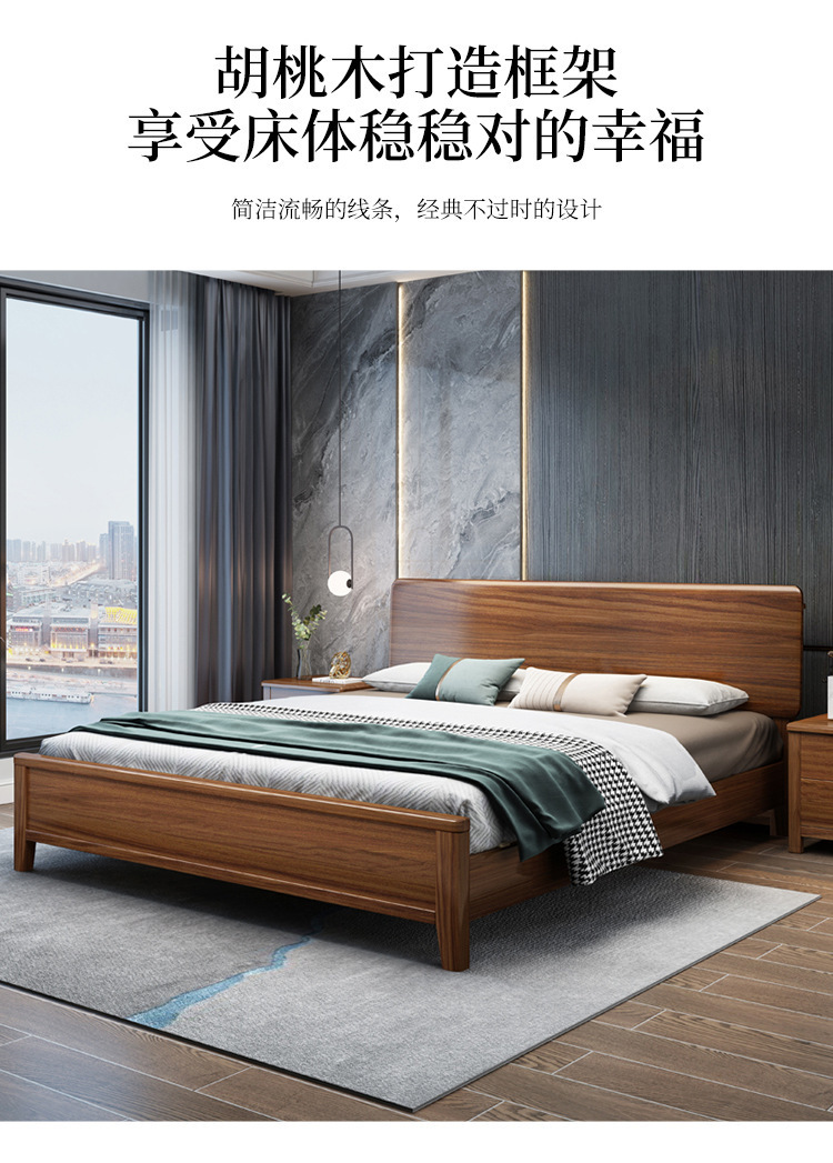 현대 미니멀리스트 북유럽 호두 나무 침대 1.5m 미니멀리스트 웨딩 침대 1.8m 마스터 침실 더블 침대 Dropshipping 도매스토어 가기