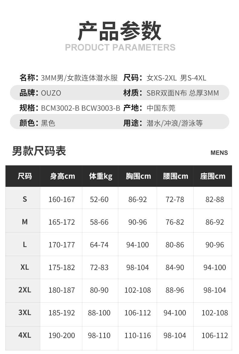 3mm潜水服男士长袖加厚防寒保暖潜水衣女连体防晒浮潜冲浪服