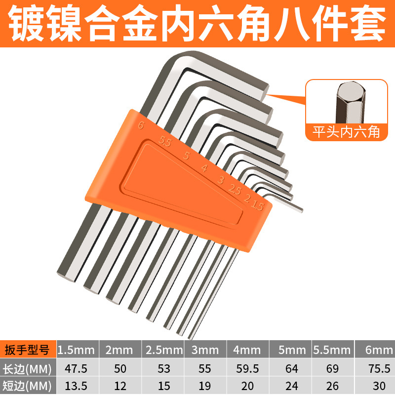 작은 육각형 소켓 플랫 헤드 높은 하드 니켈 도금 아연 도금 1.5mm-6mm 내부 육각형 렌치 L 형 짧은 육각형 렌치스토어 가기