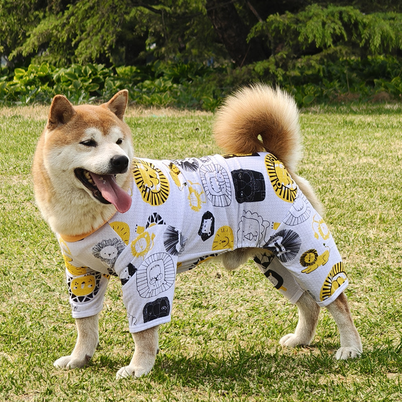 봄과 여름 새 개 옷 애완 동물 태양 보호 의류 안티 린트 골든 리트리버 사모 시바 이누 중형 및 대형 개 네 다리 옷