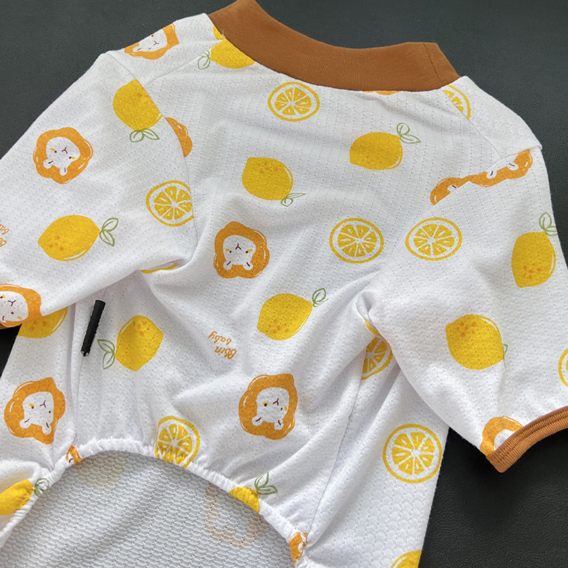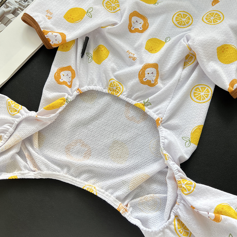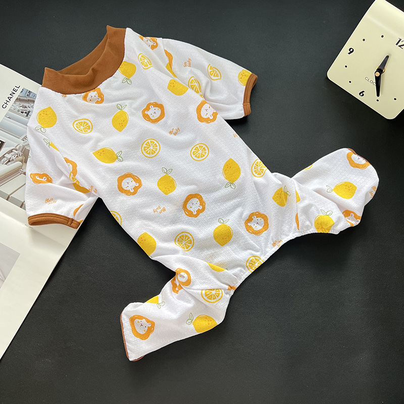 • 노란색-네 다리 옷 작은 레몬 패턴
