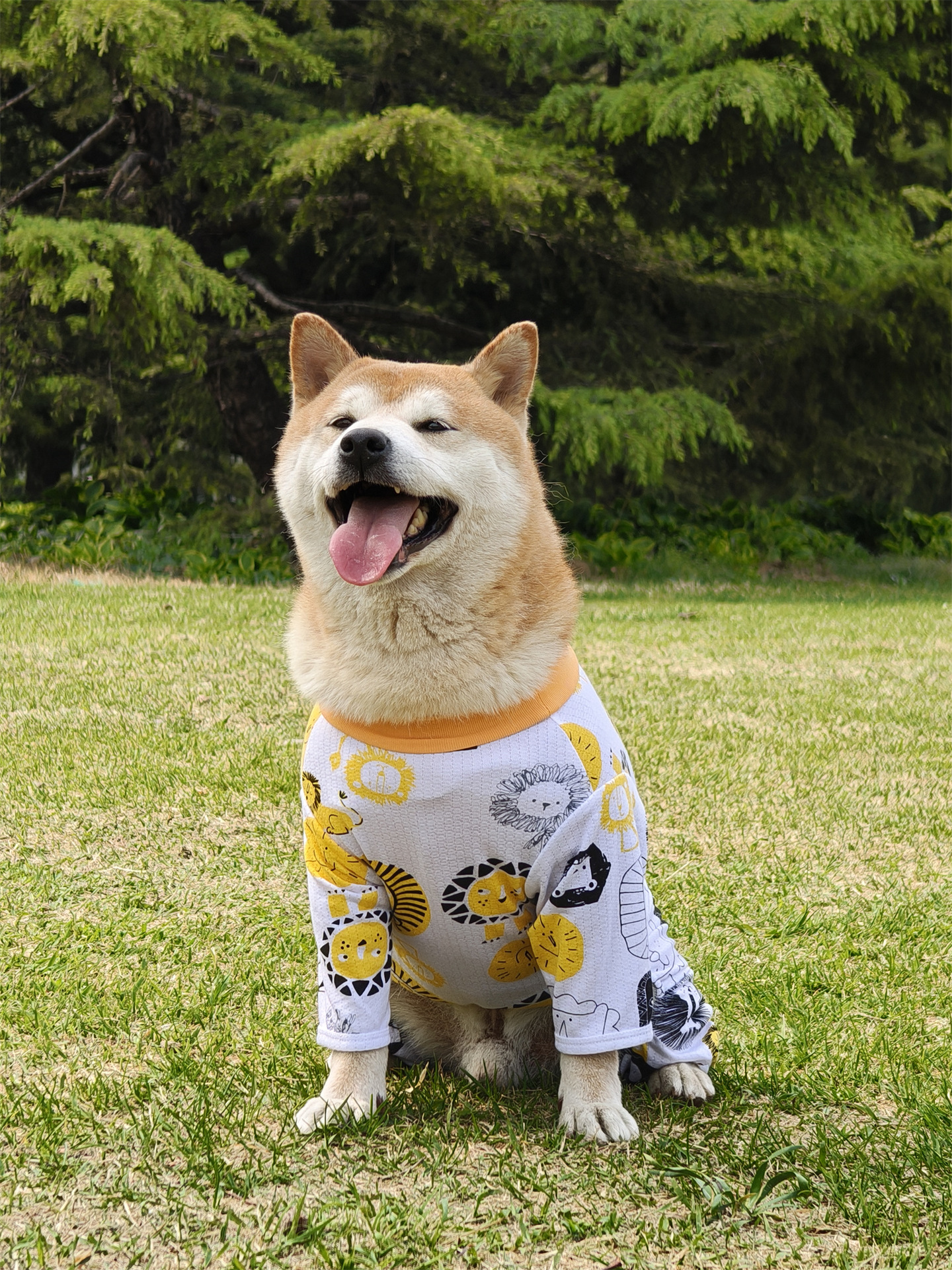 • 작은 사자 패턴의 노란색 네 다리 재킷
