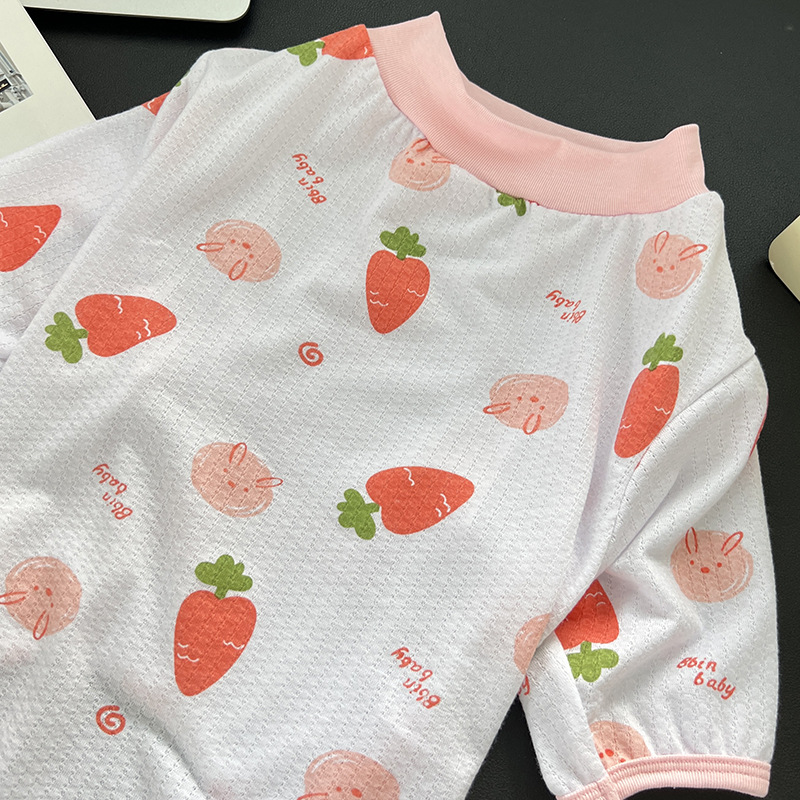 • 핑크 네 다리 의류 토끼 당근 패턴