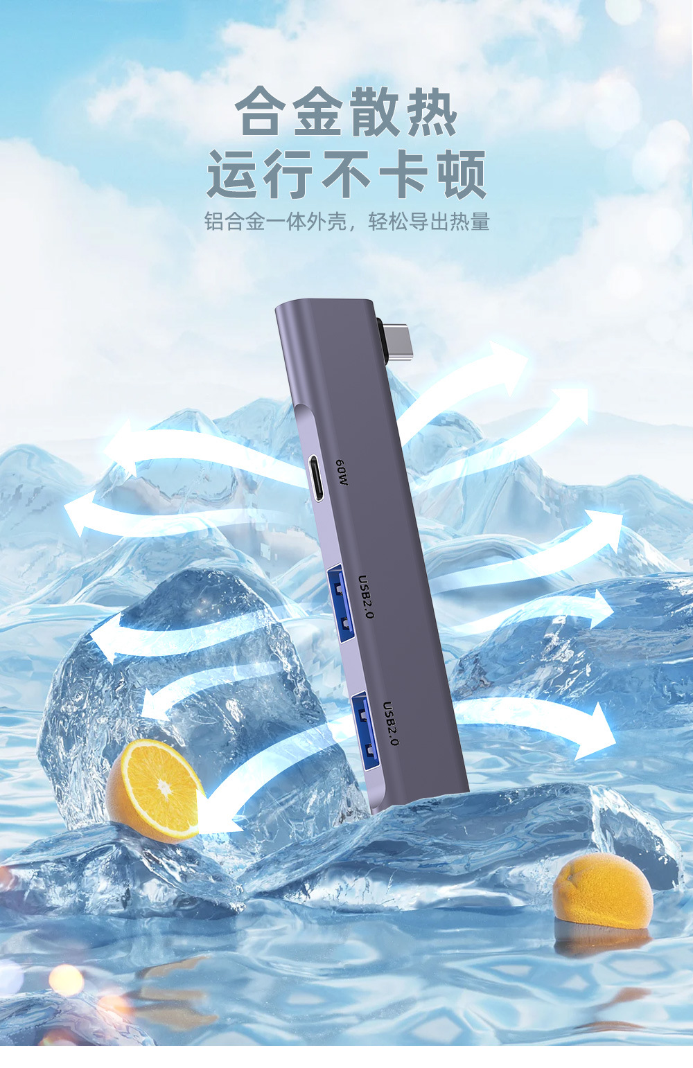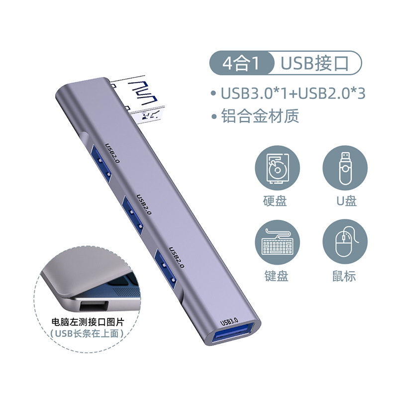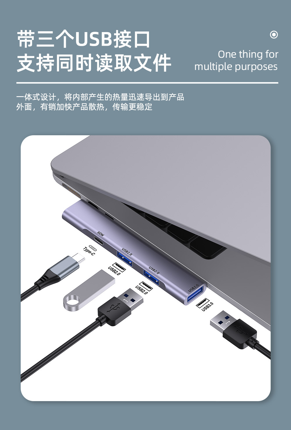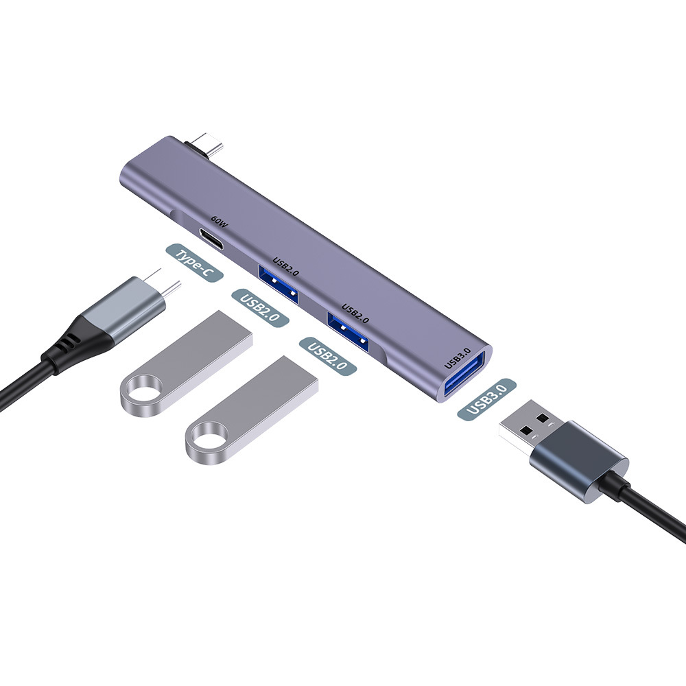 4-in-1 USB 허브 변환기 TYPE-C에서 2*USB2.0+1*USB3.0+PD60W 고속 전송