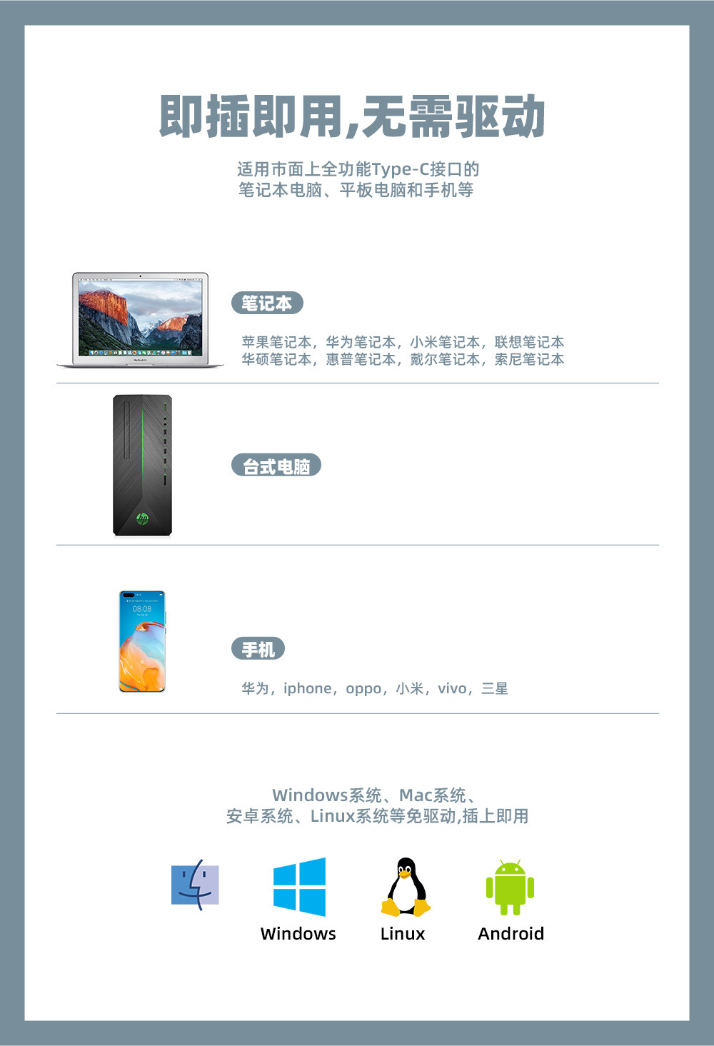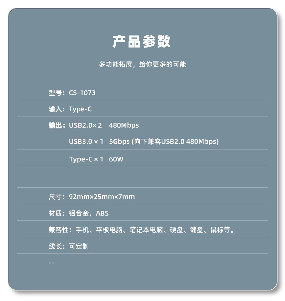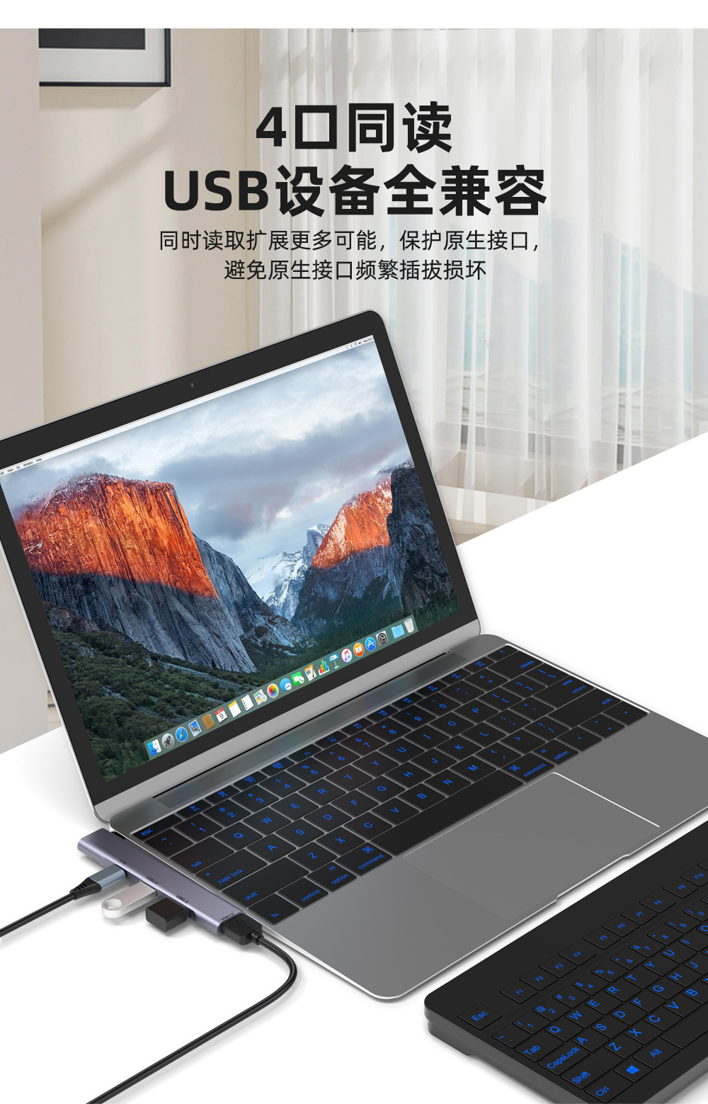 4-in-1 USB 허브 변환기 TYPE-C에서 2*USB2.0+1*USB3.0+PD60W 고속 전송