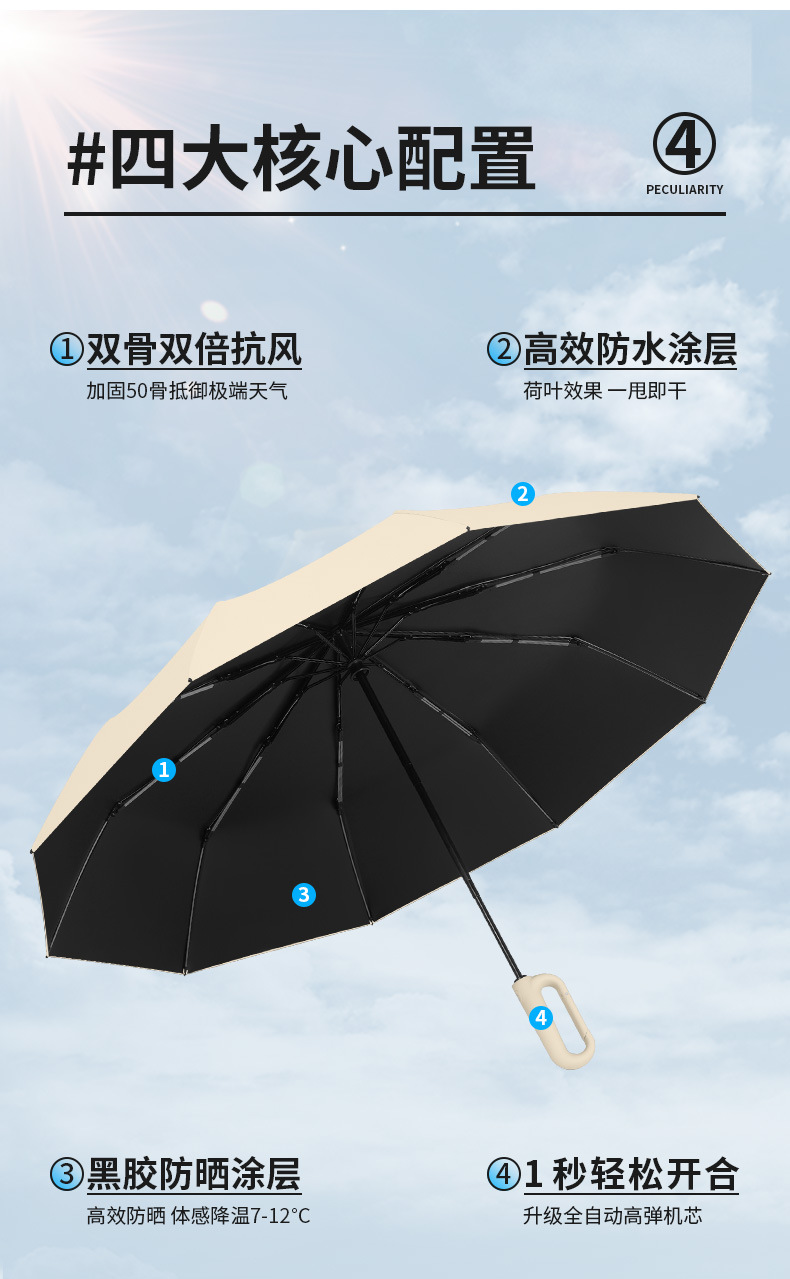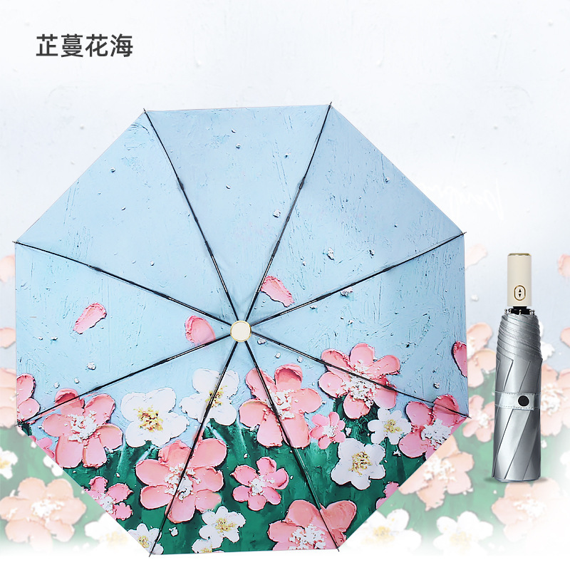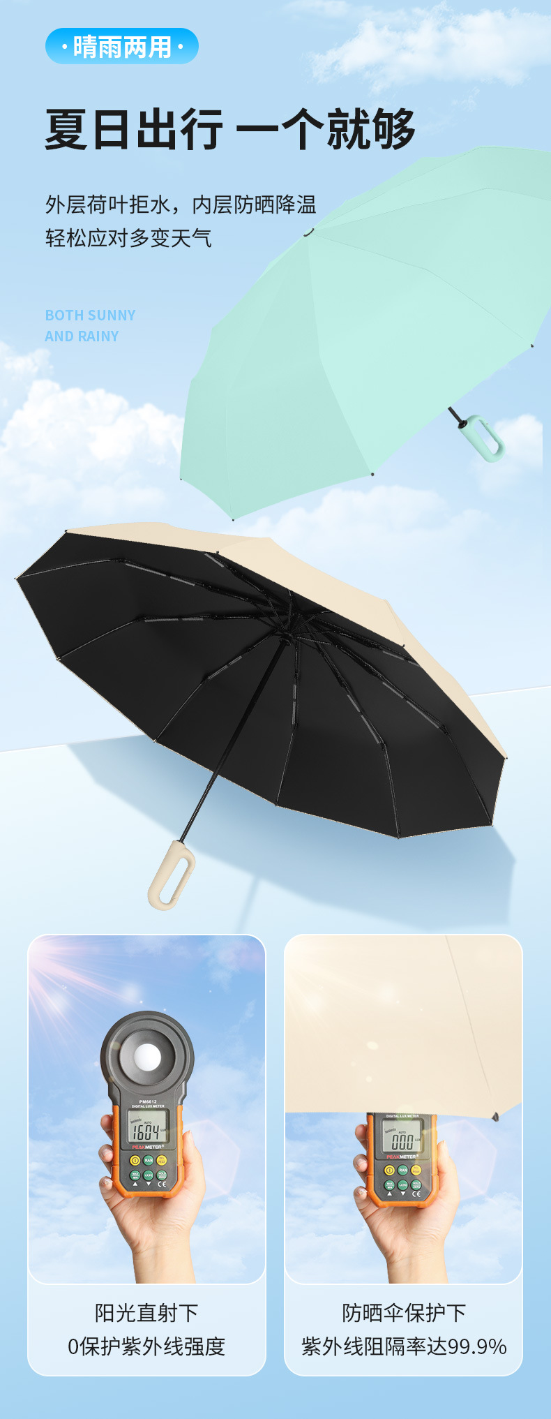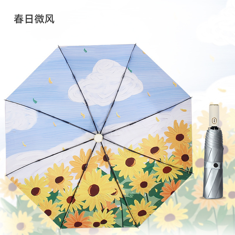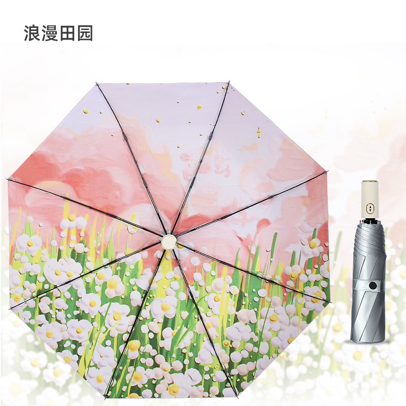 3 배 자동 우산 버클 대형 써니 우산 태양 보호 UV 보호 접히는 유니섹스 태양 우산 야외 파라솔