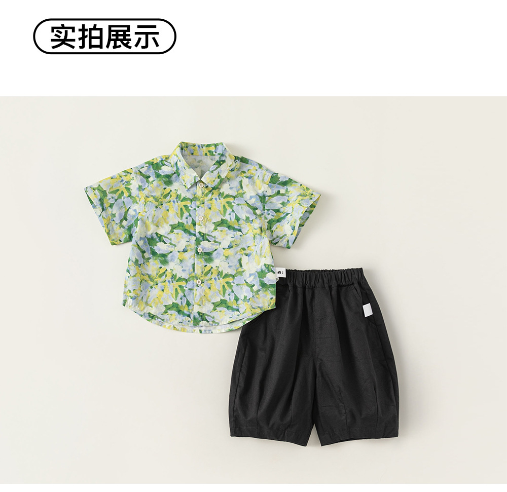 유바오 아동복 2026년 신상 여름옷 아동복 세트 남아 셔츠 레트로 홍콩 스타일 투피스 세트스토어 가기