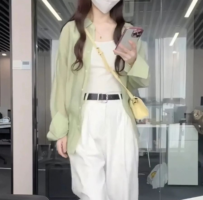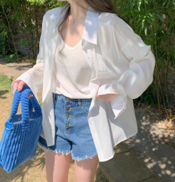 여성을위한 프랑스 얼음 실크 태양 보호 셔츠 여름 실크 얇은 셔츠 스타일 긴팔 태양 보호 의류 탑과 재킷 재고 있음