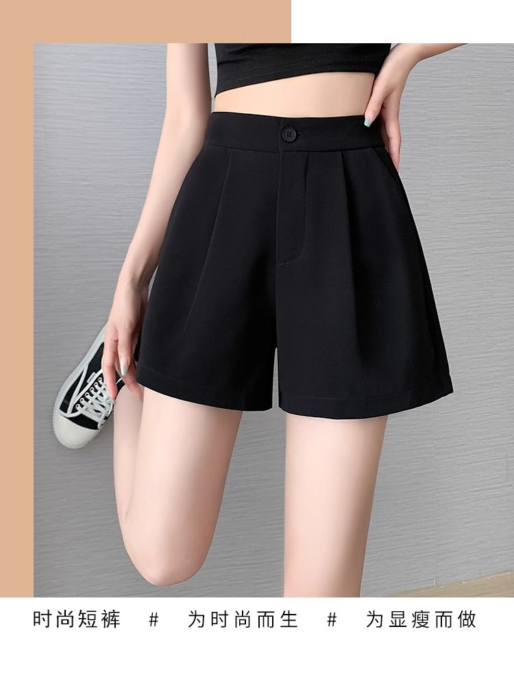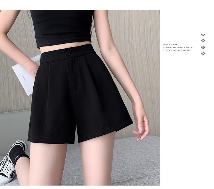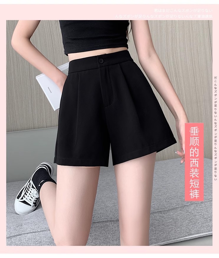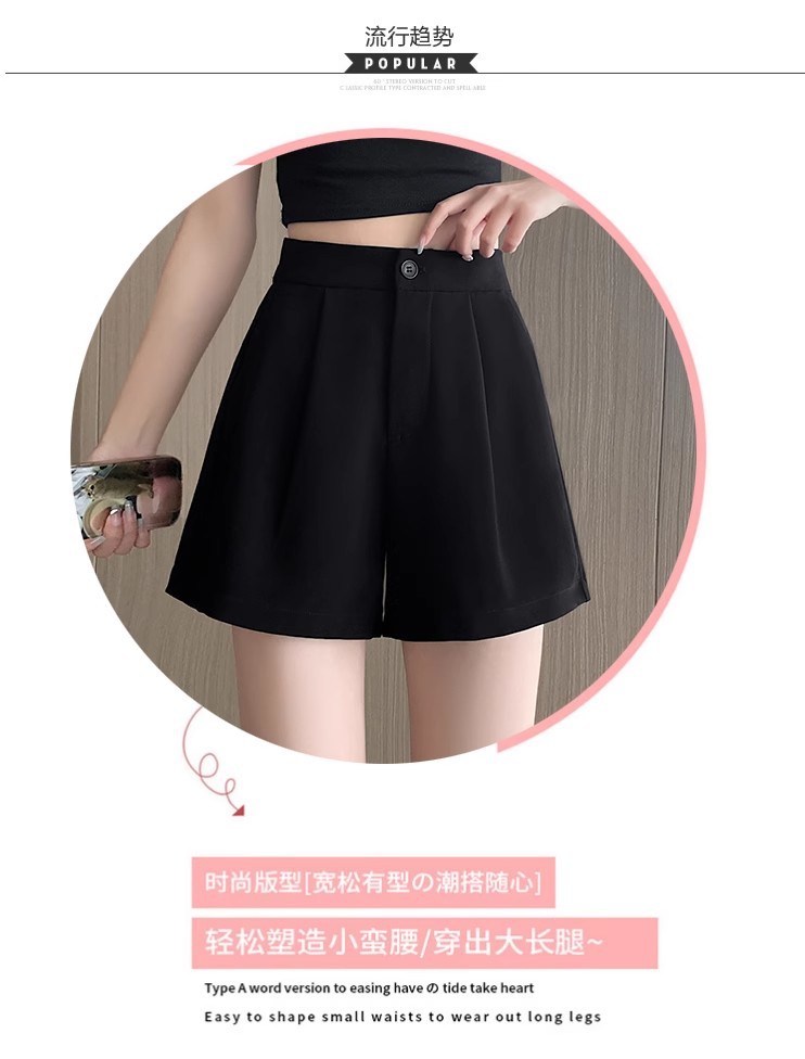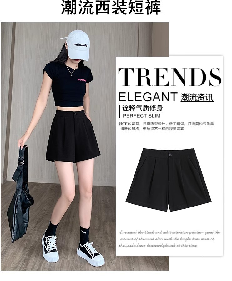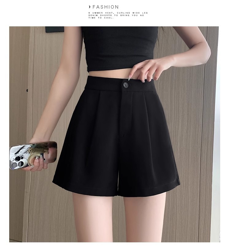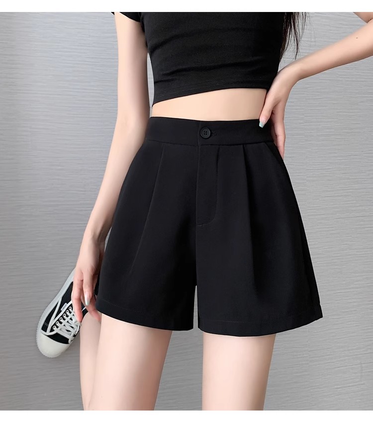 블랙 탄성 하이 허리 캐주얼 세트 반바지 여름 여성 2024 새로운 얇은 느슨한 작은 A 라인 와이드 다리 바지스토어 가기