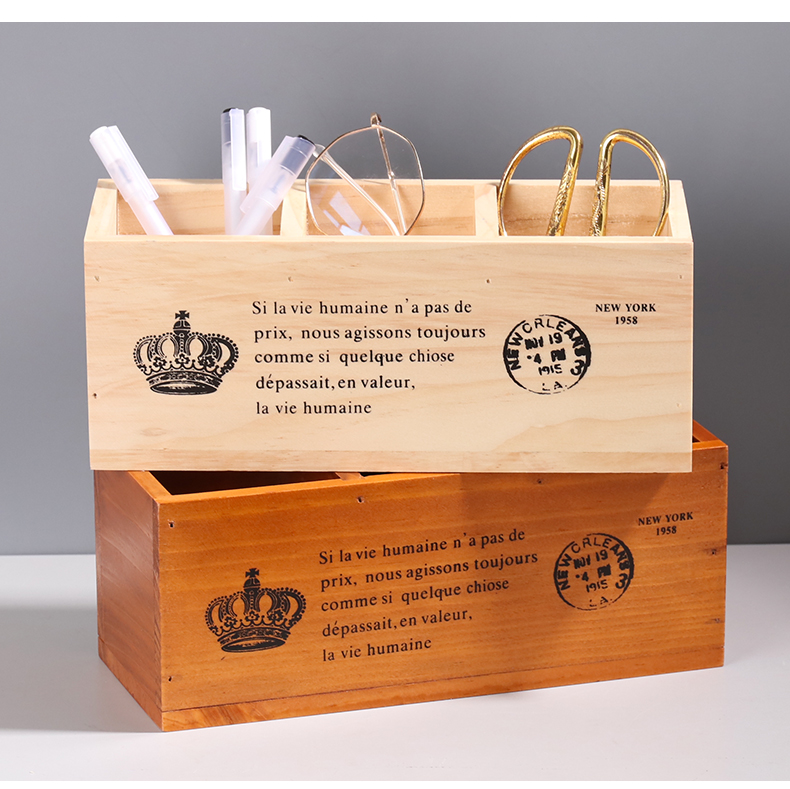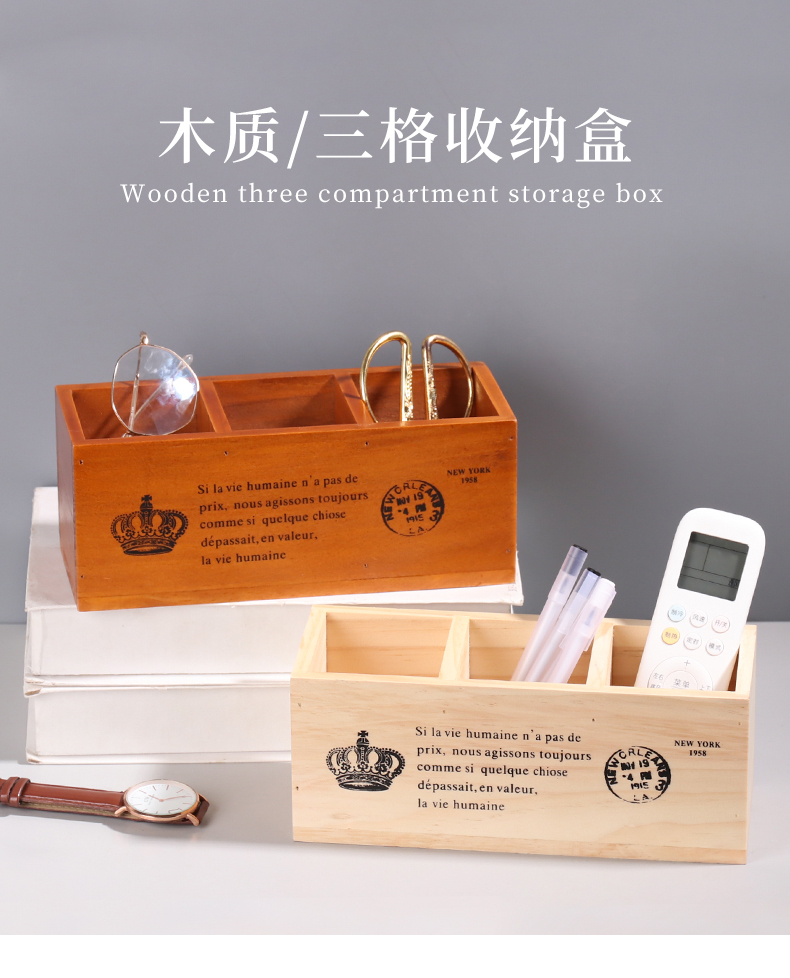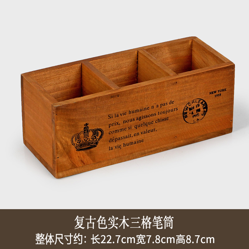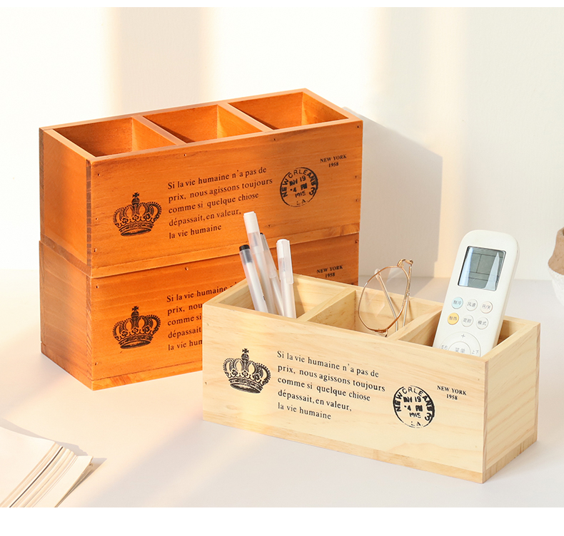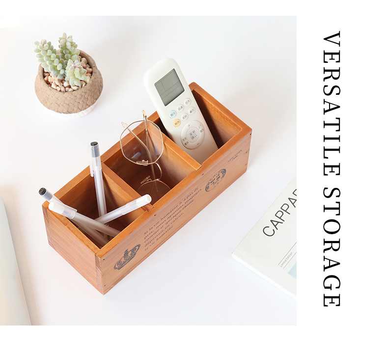 나무 바탕 화면 3 그리드 저장 상자 홈 사무실 책상 펜 홀더 원격 제어 잡화 복고풍 조직 나무 상자스토어 가기