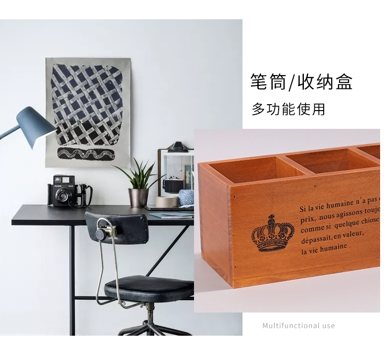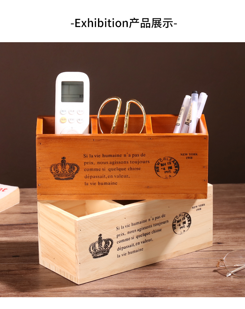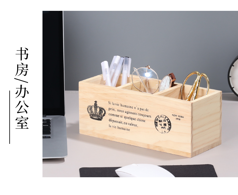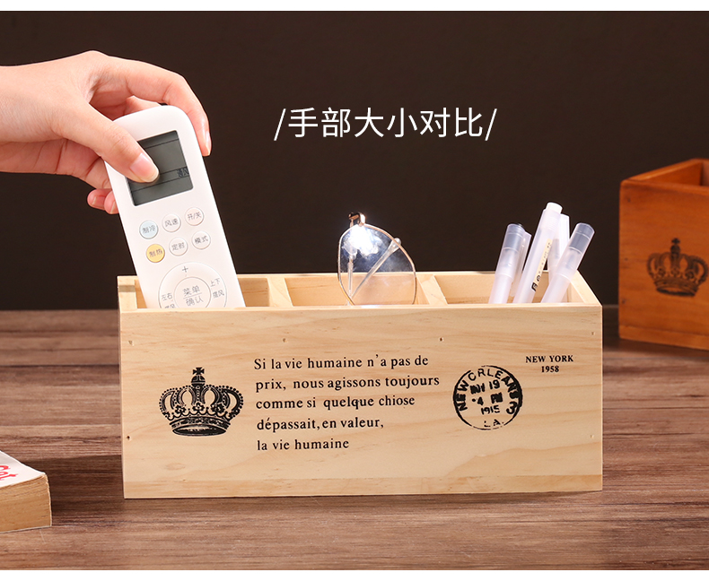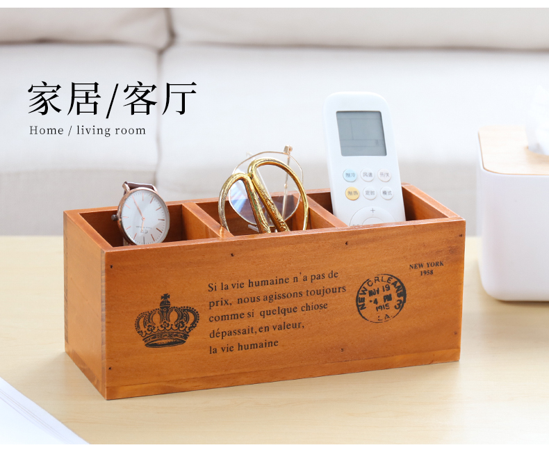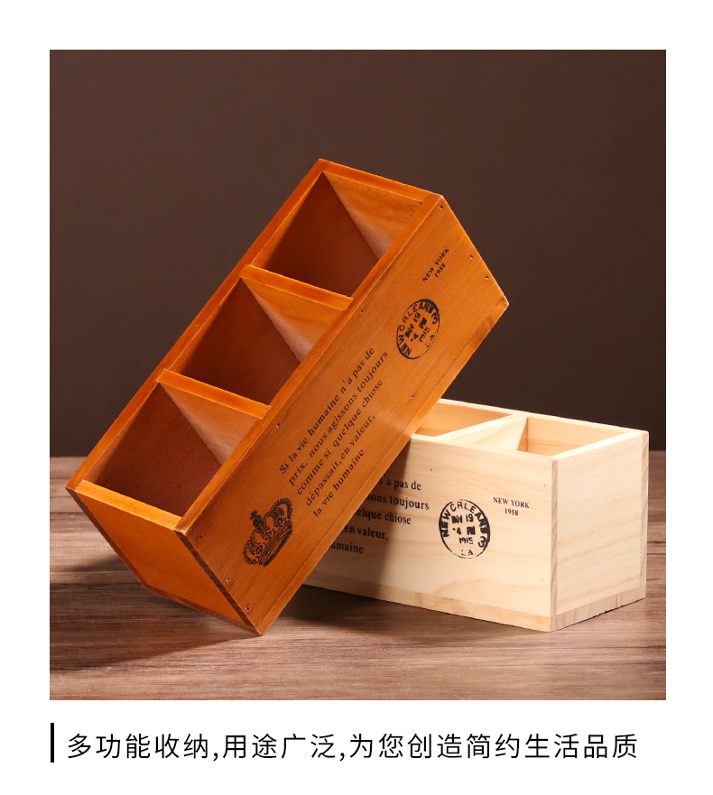 나무 바탕 화면 3 그리드 저장 상자 홈 사무실 책상 펜 홀더 원격 제어 잡화 복고풍 조직 나무 상자스토어 가기