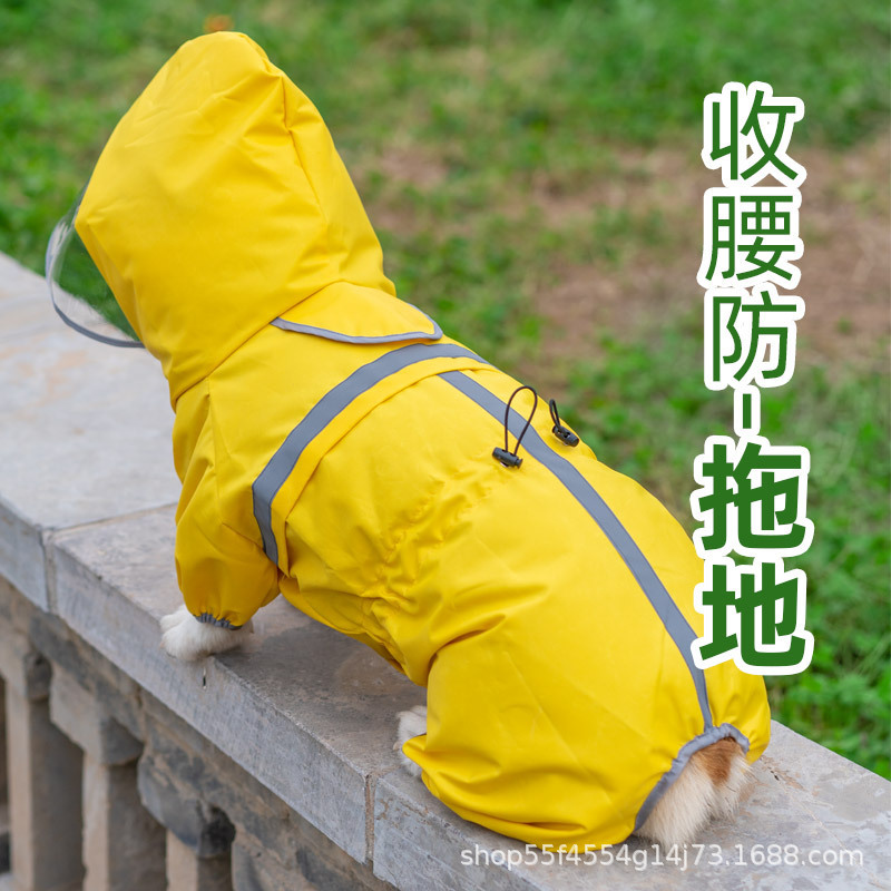 강아지 비옷, 애완동물 비옷, 코기 사츠마견, 중대형 애완동물 허리가 비치지 않는 4족 일체형 통기성 비옷스토어 가기