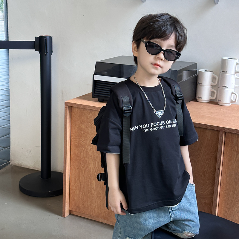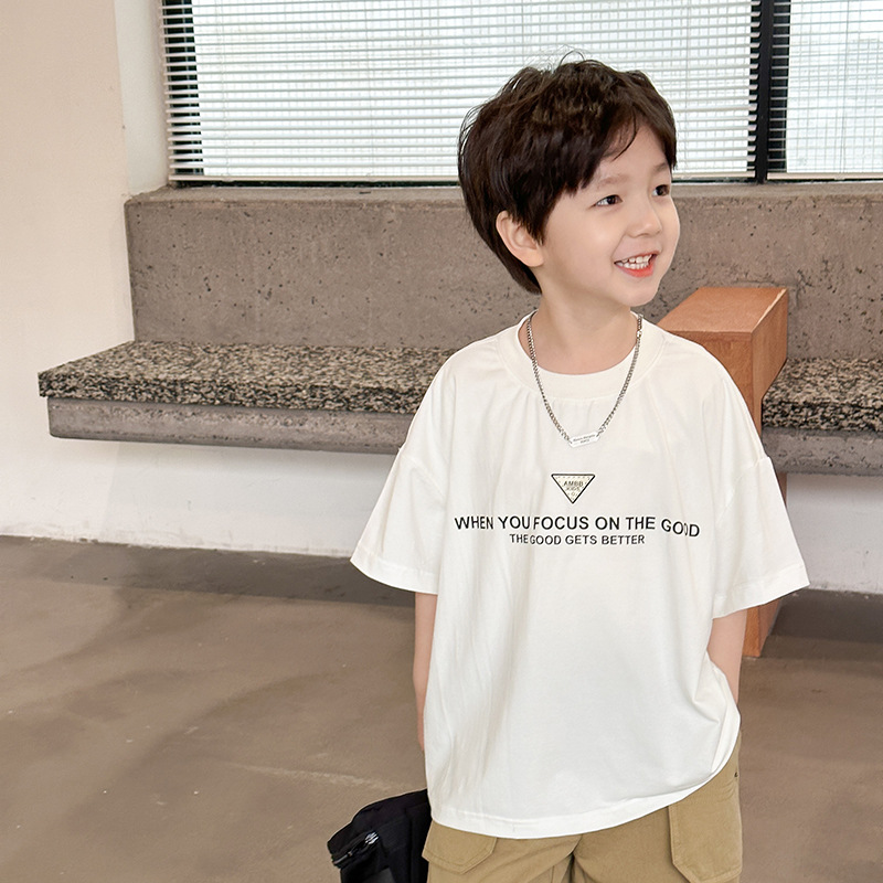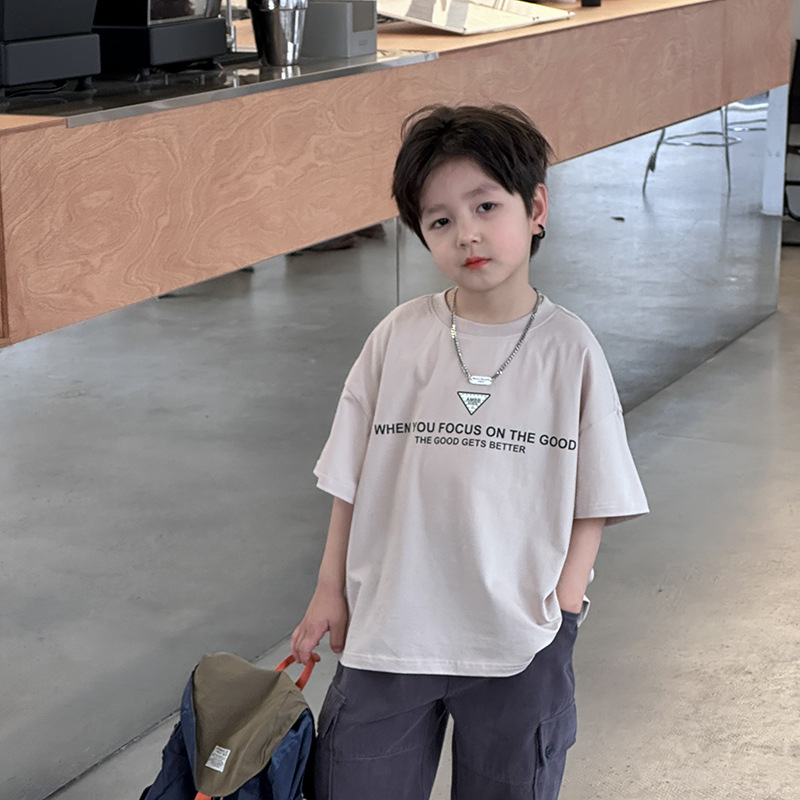 이모 베이베이 어린이 2025 년 봄과 여름 잘 생긴 편지 반팔 티셔츠 소년 소녀 아기의 올 매치 핸즈미베이스 셔츠스토어 가기