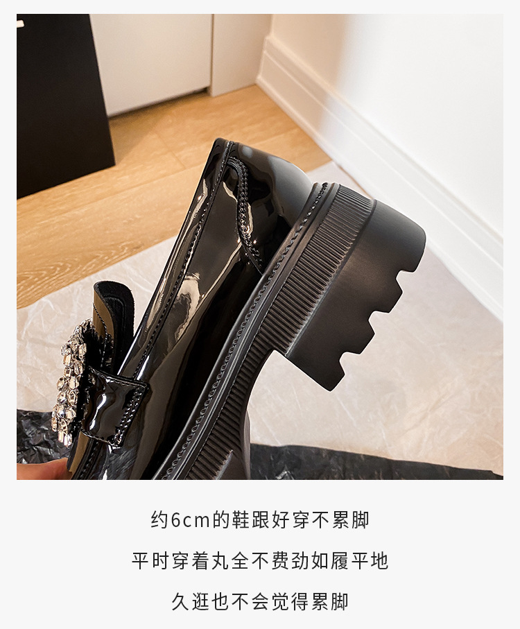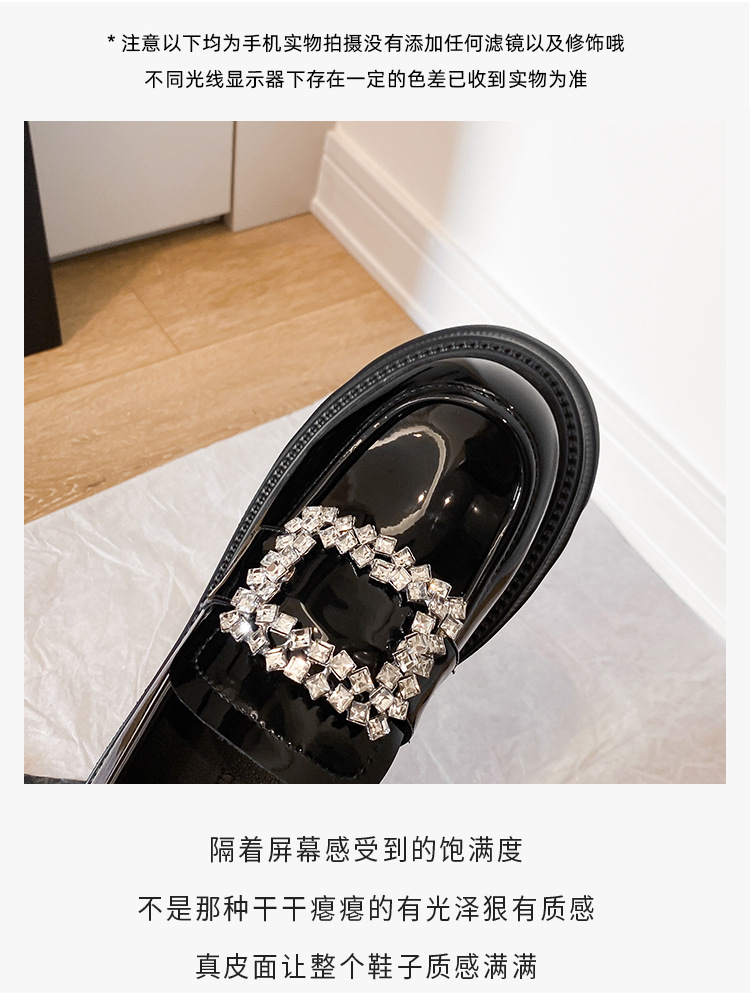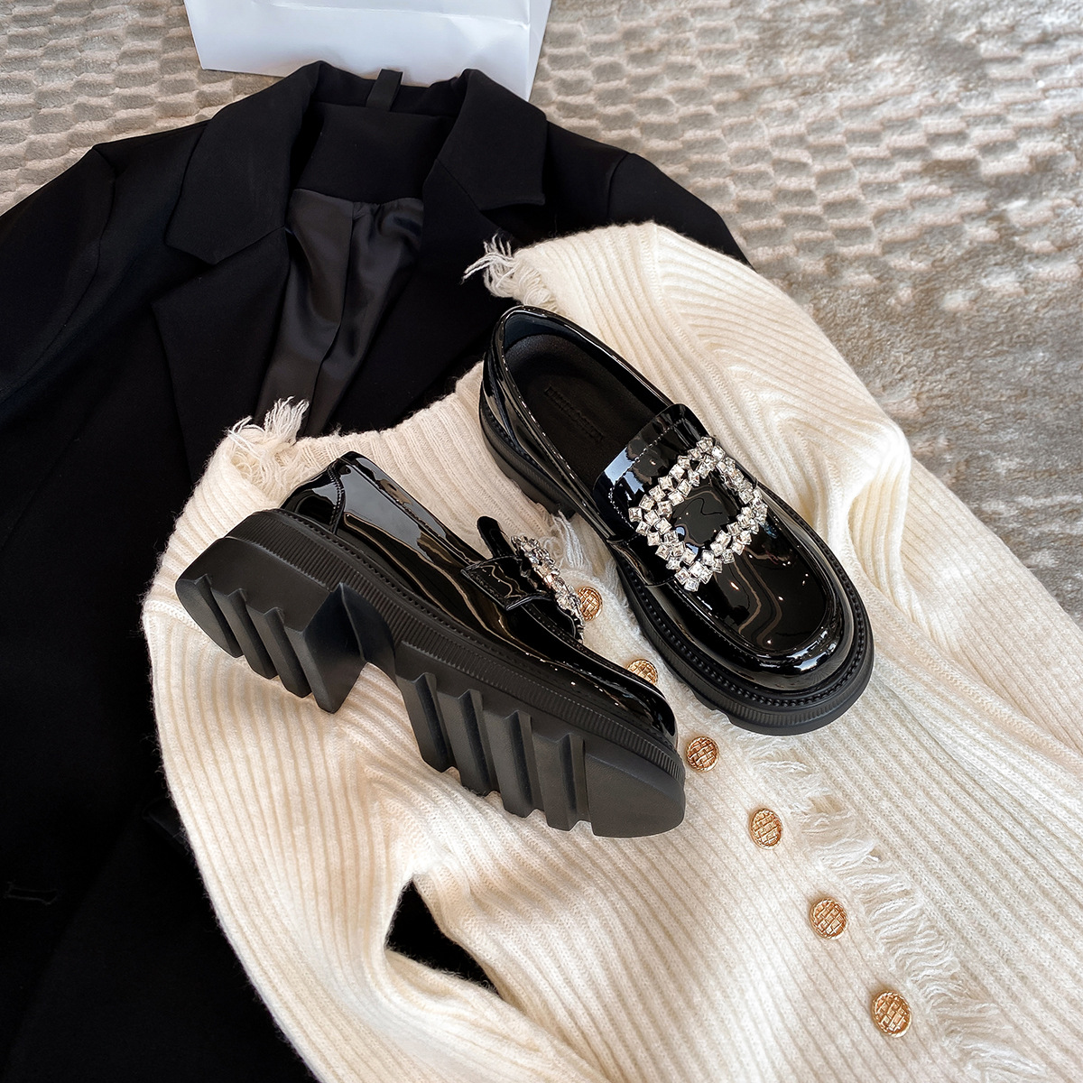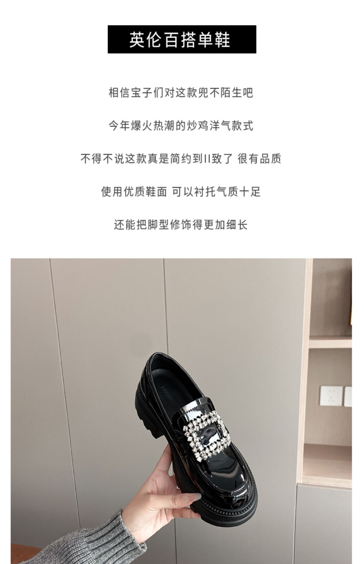 양가죽 버전 ~ 플랫폼 로퍼 여성 영국 스타일의 두꺼운 뒤꿈치 스퀘어 버클 모조 다이아몬드 가죽 신발 프랑스 복고풍 가죽 신발스토어 가기