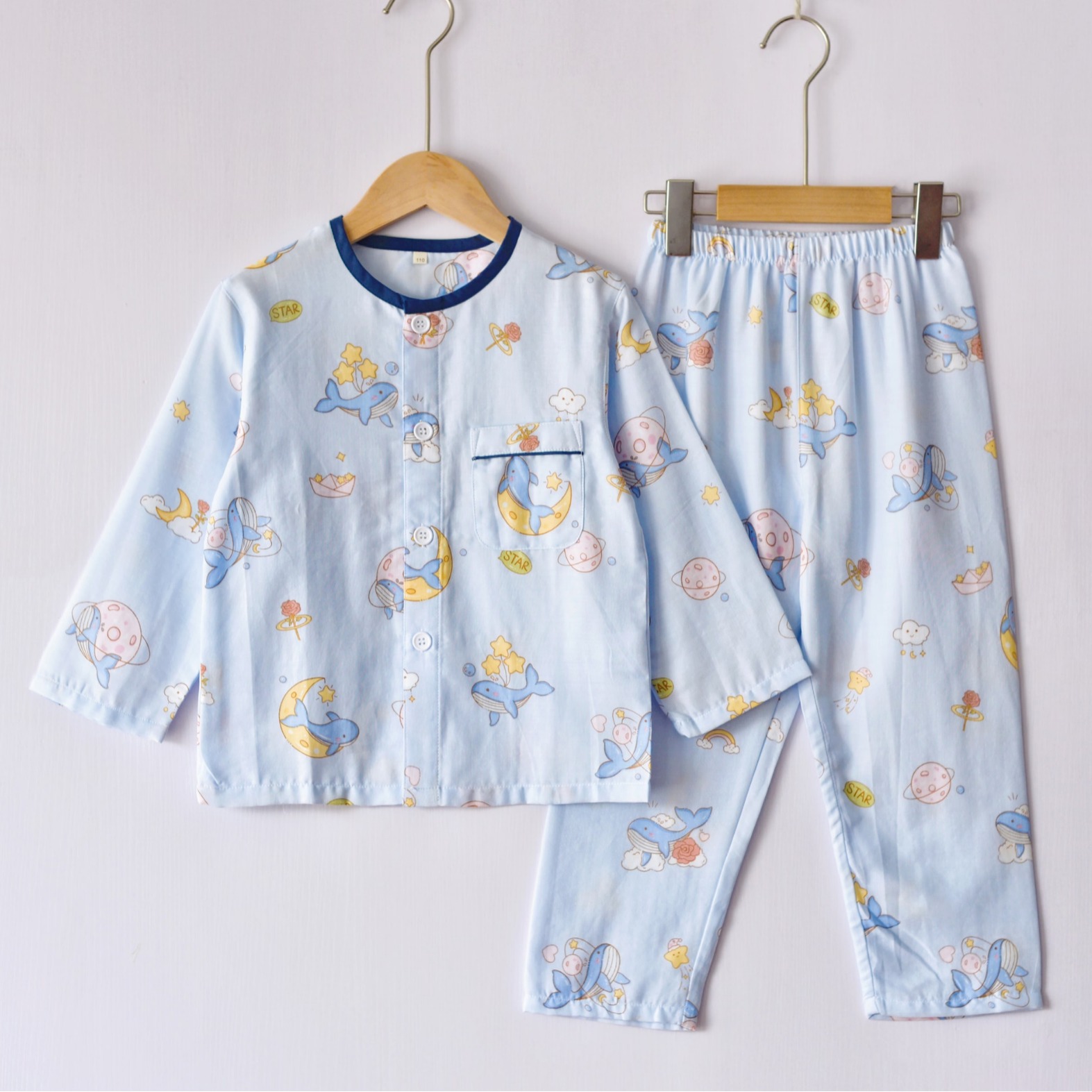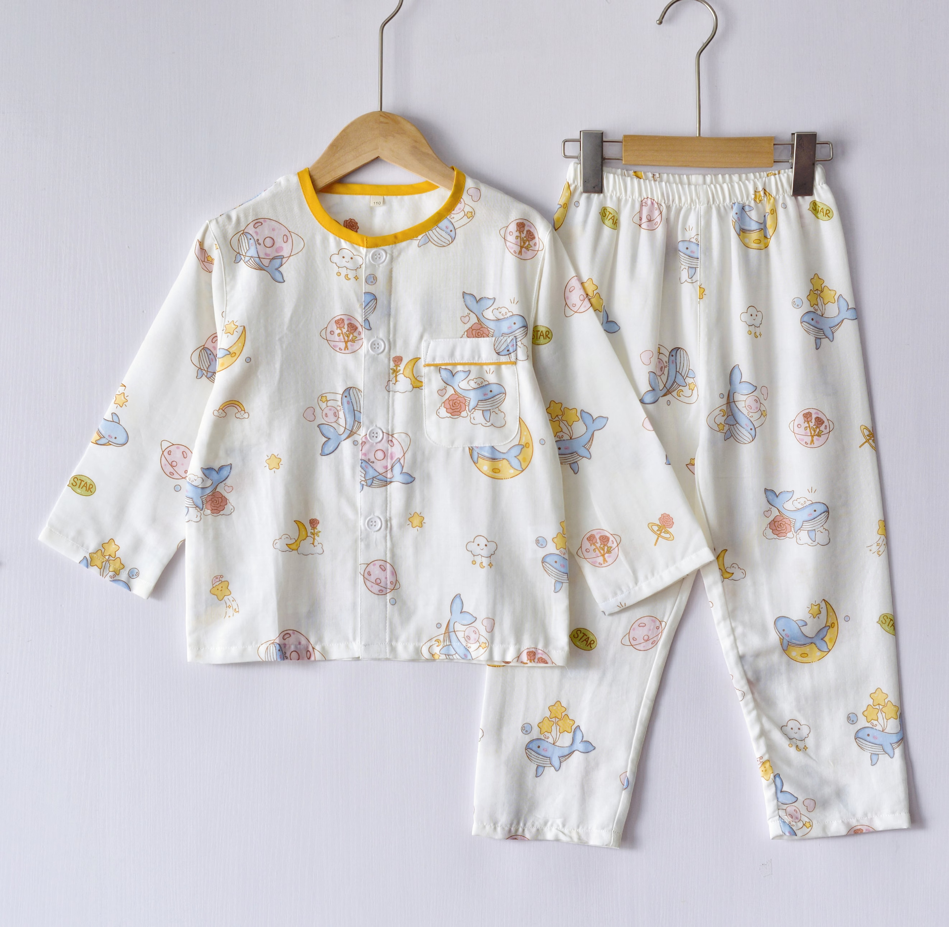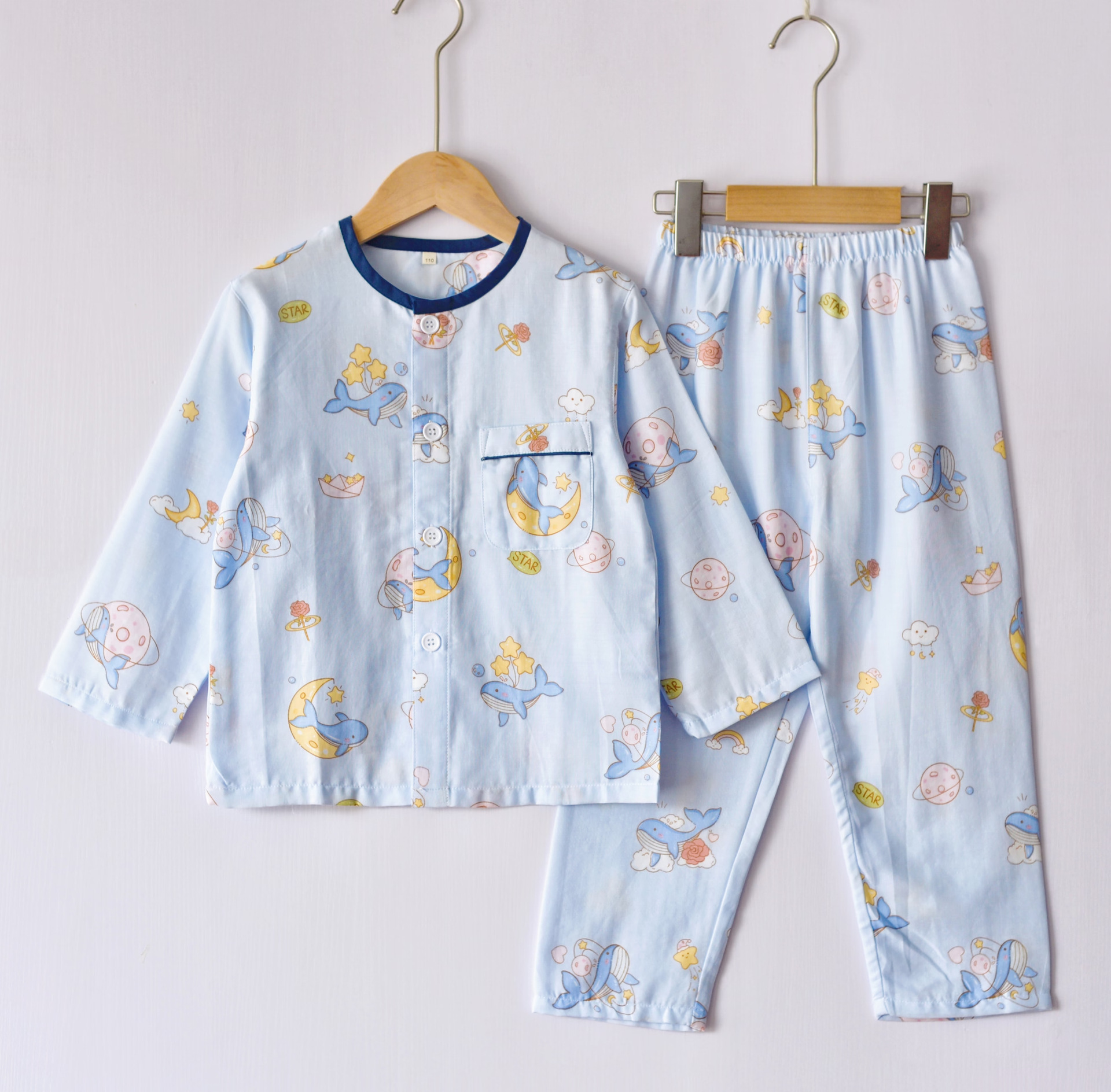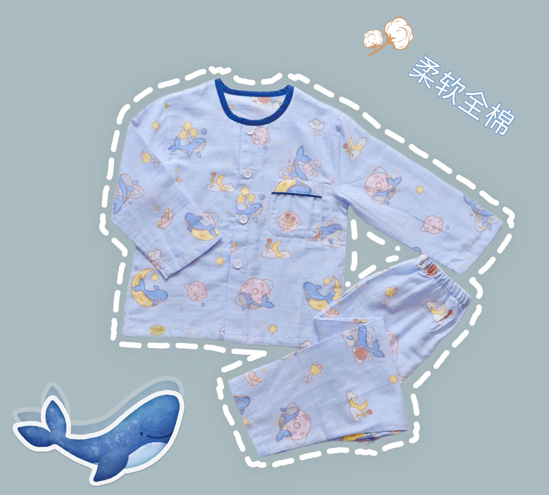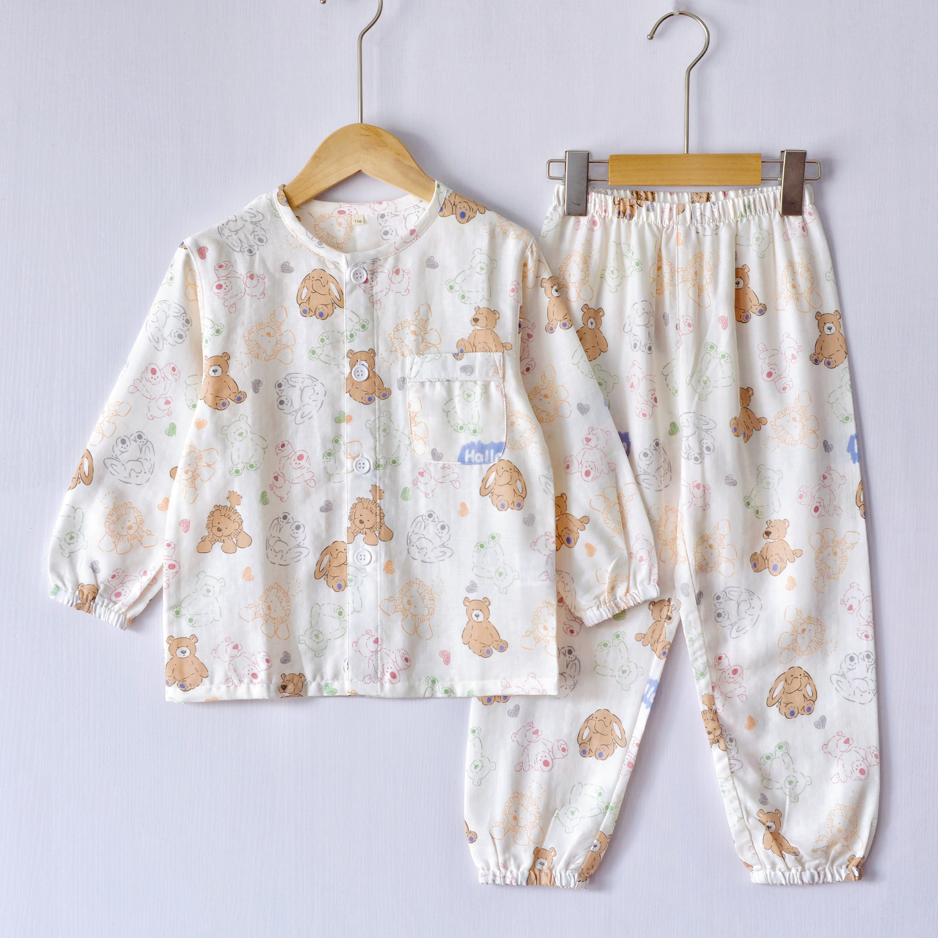 봄 새로운면 거즈 소년의 긴팔 잠옷 세트 어린이 소년의 봄과 가을 만화 홈웨어스토어 가기