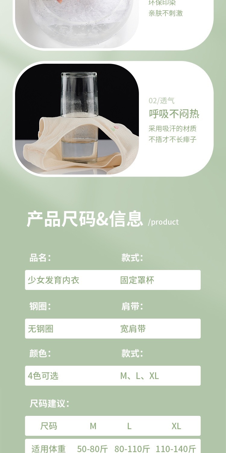 12-18 세 속옷 여성 중학생 개발 기간 충격 방지 순면 U 자형 브래지어 소녀 튜브 탑 조끼스토어 가기