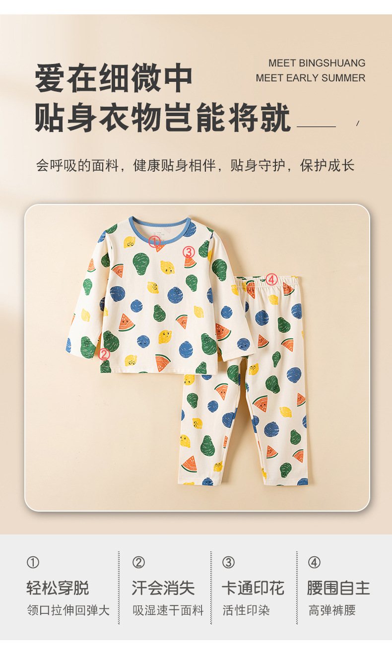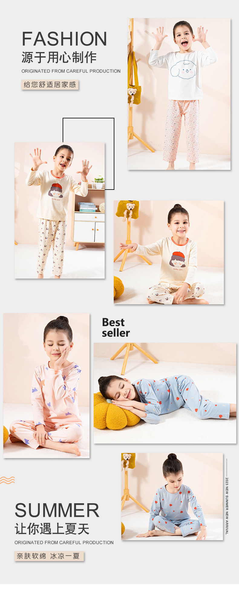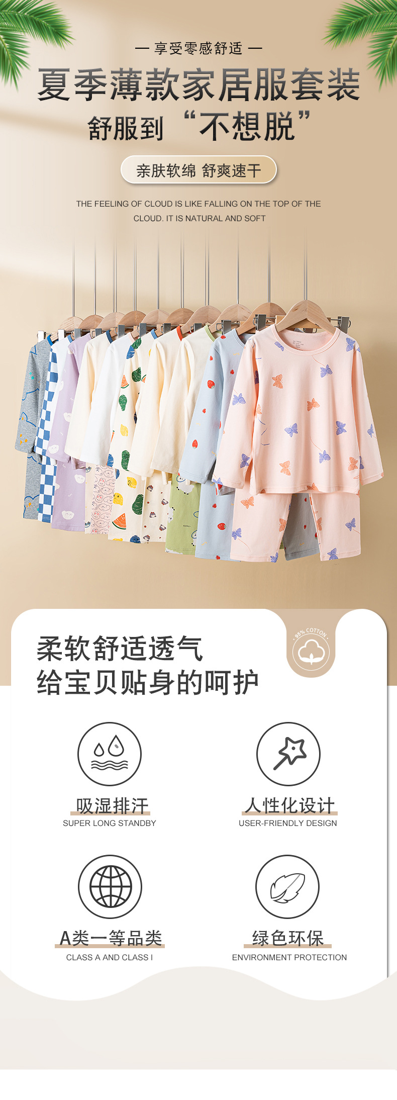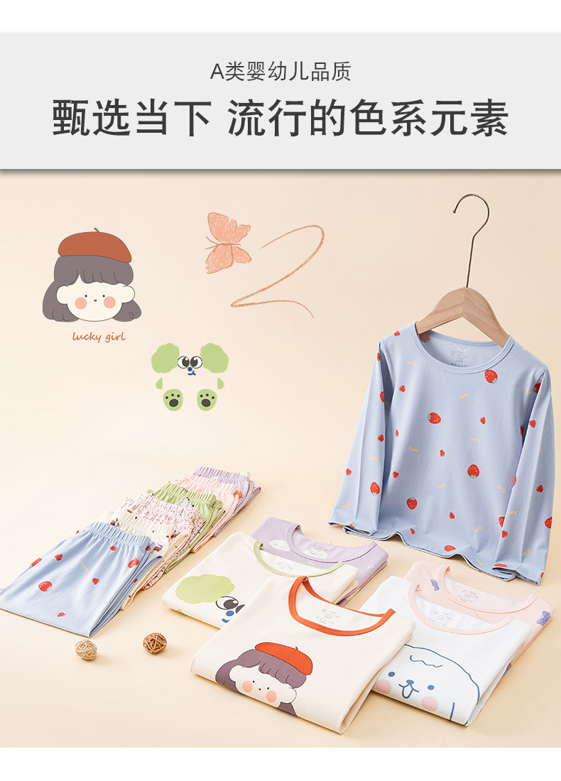 여름 어린이 가정 의류 순수 코튼 속옷 세트 만화 항균 클래스 a 긴 소매 얇은 소녀 잠옷 도매