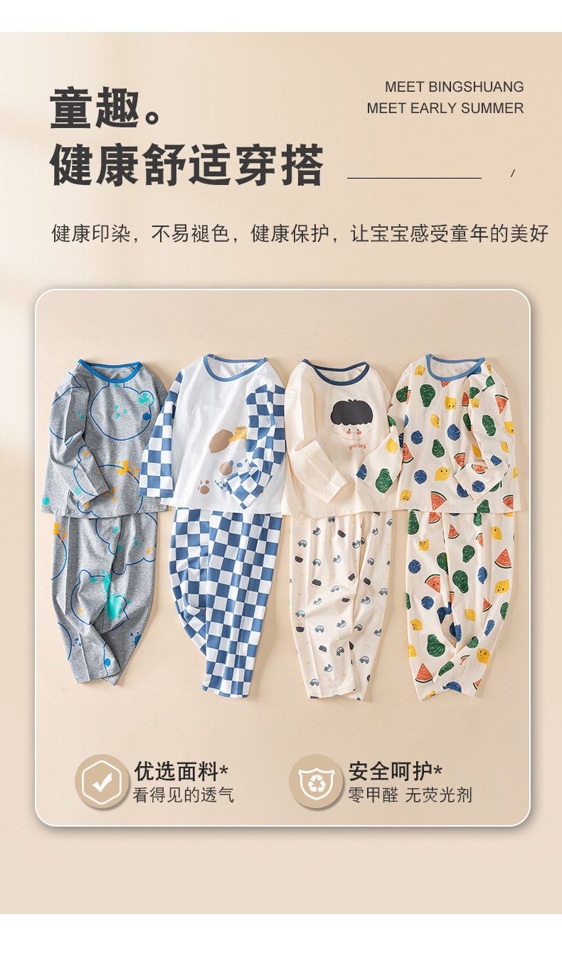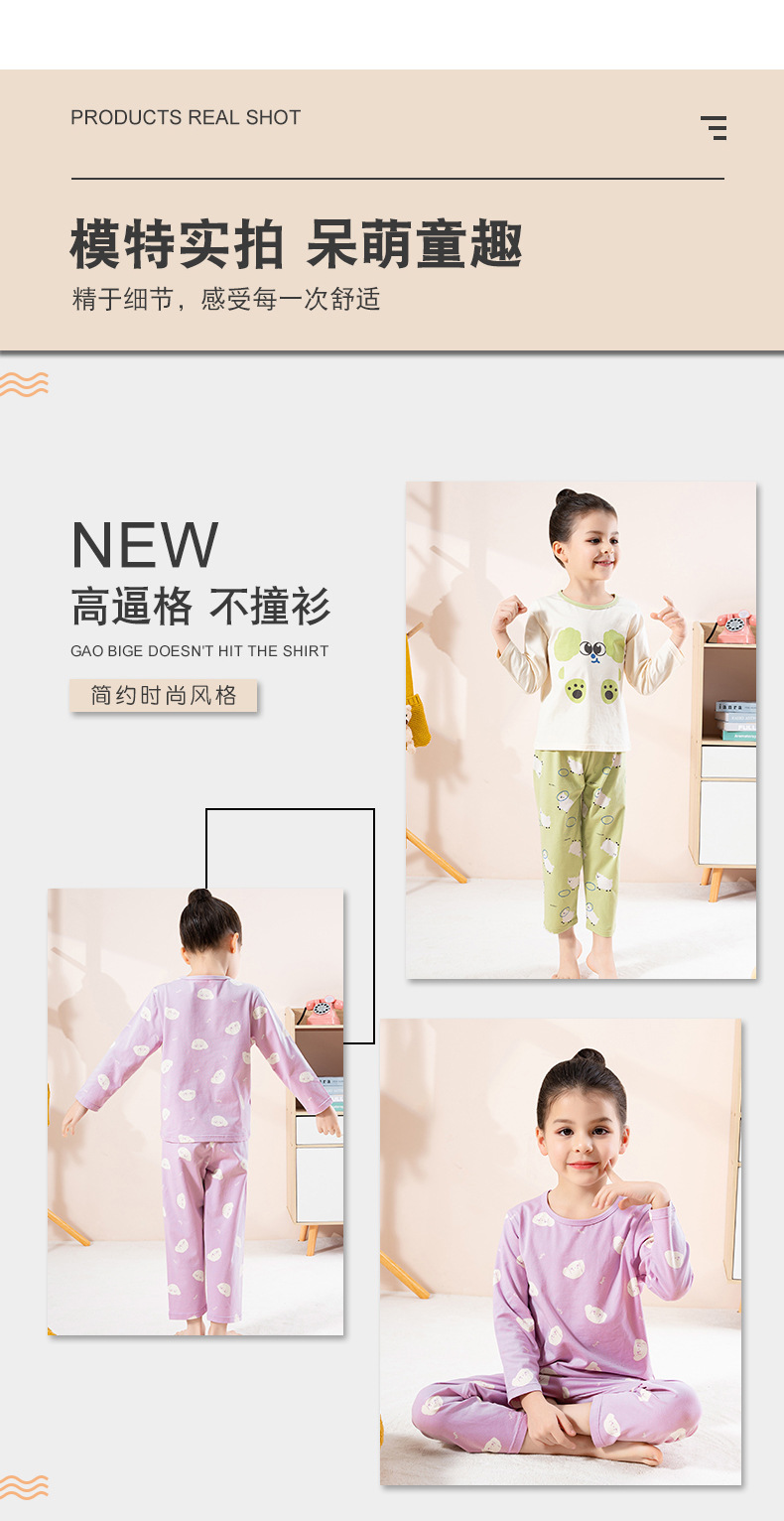 여름 어린이 가정 의류 순수 코튼 속옷 세트 만화 항균 클래스 a 긴 소매 얇은 소녀 잠옷 도매스토어 가기