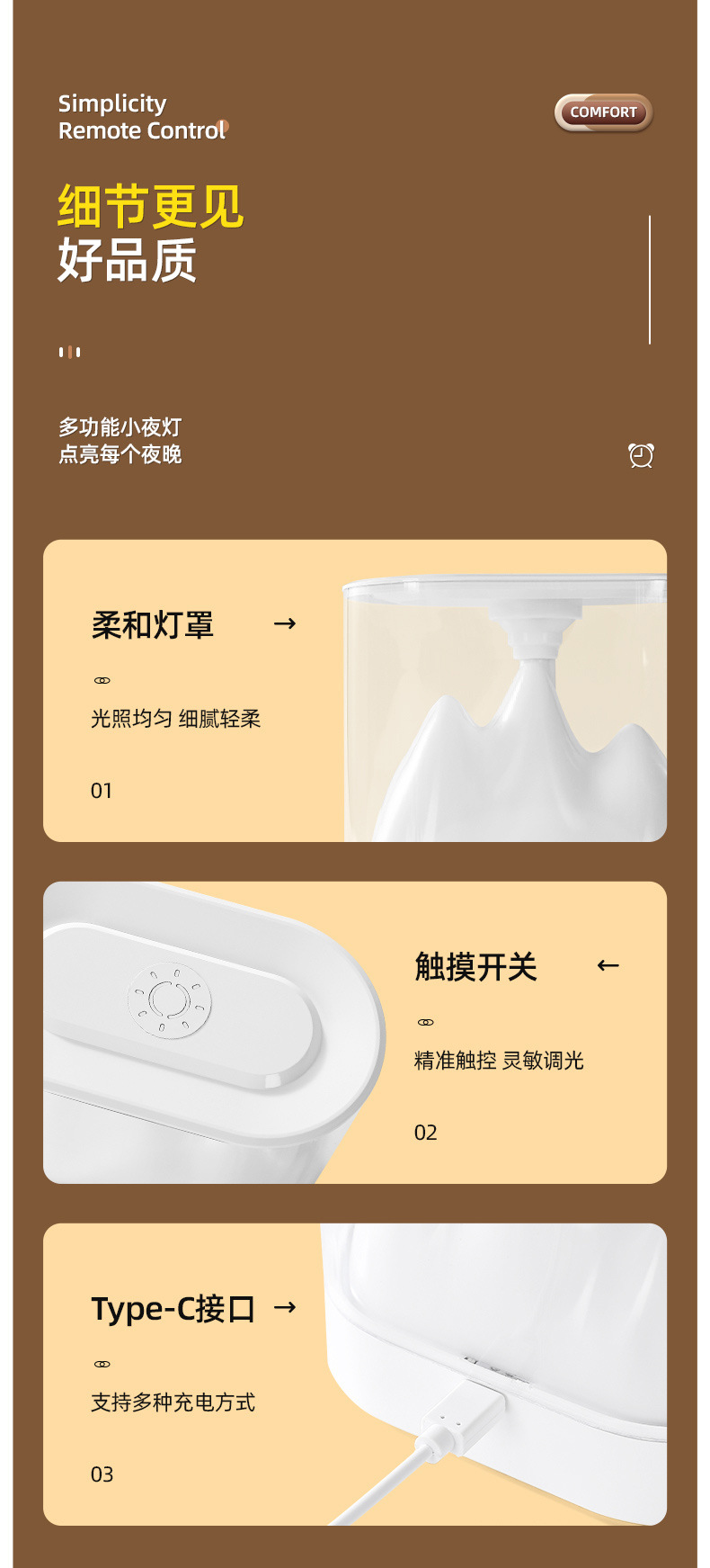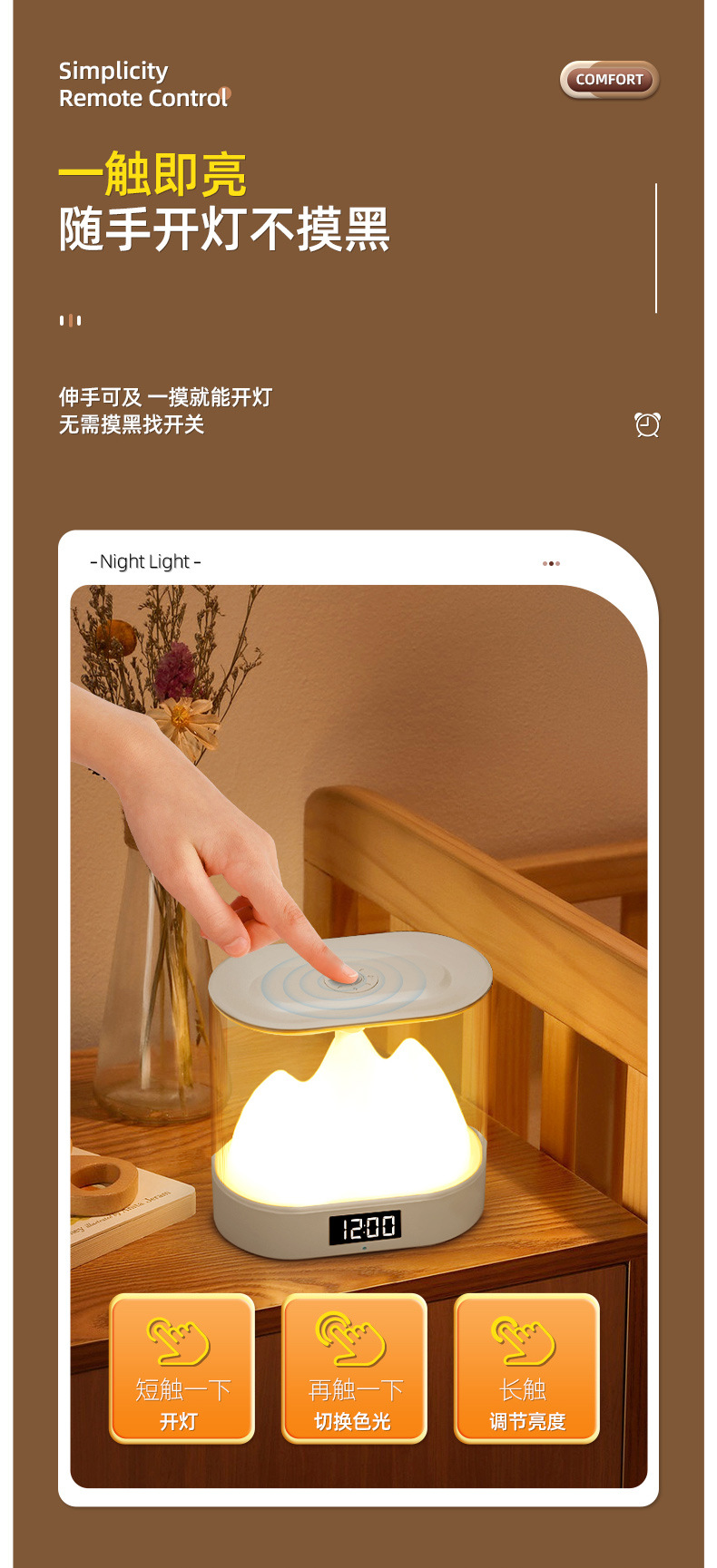 산 타원형 터치 라이트 충전 터치 야간 조명 침실 침대 옆 분위기 밝은 밤 따뜻한 조명 수면 눈 보호 테이블