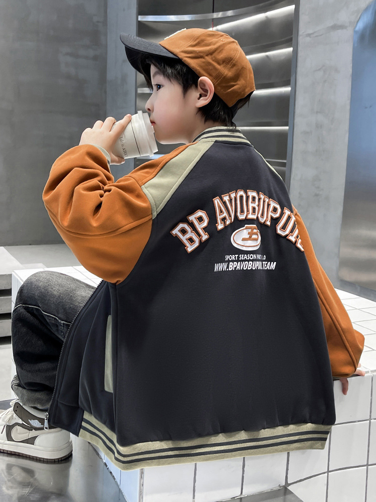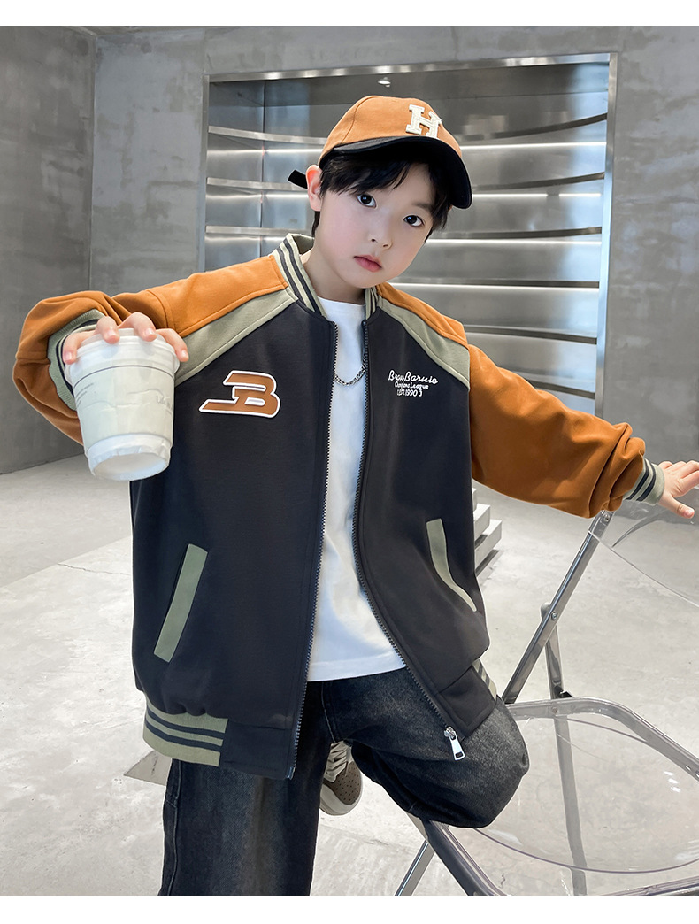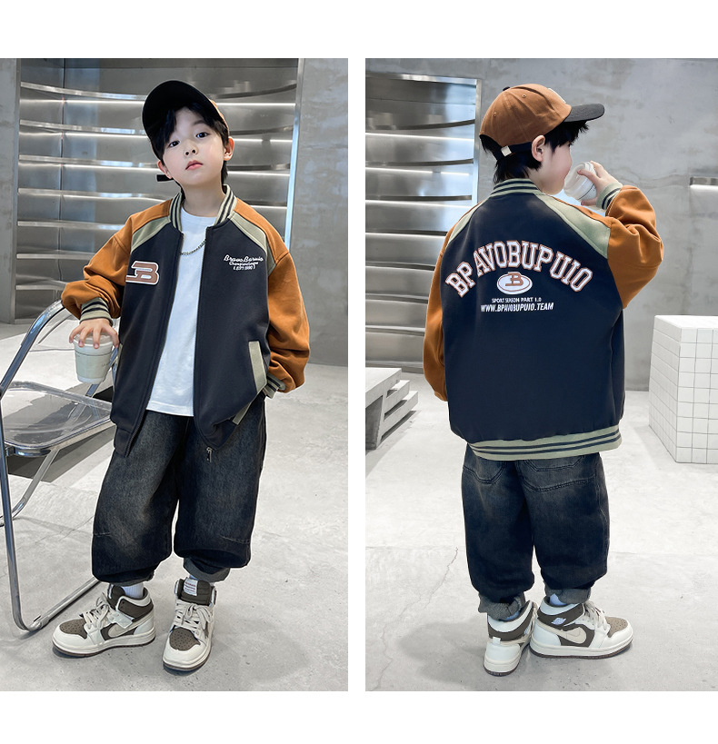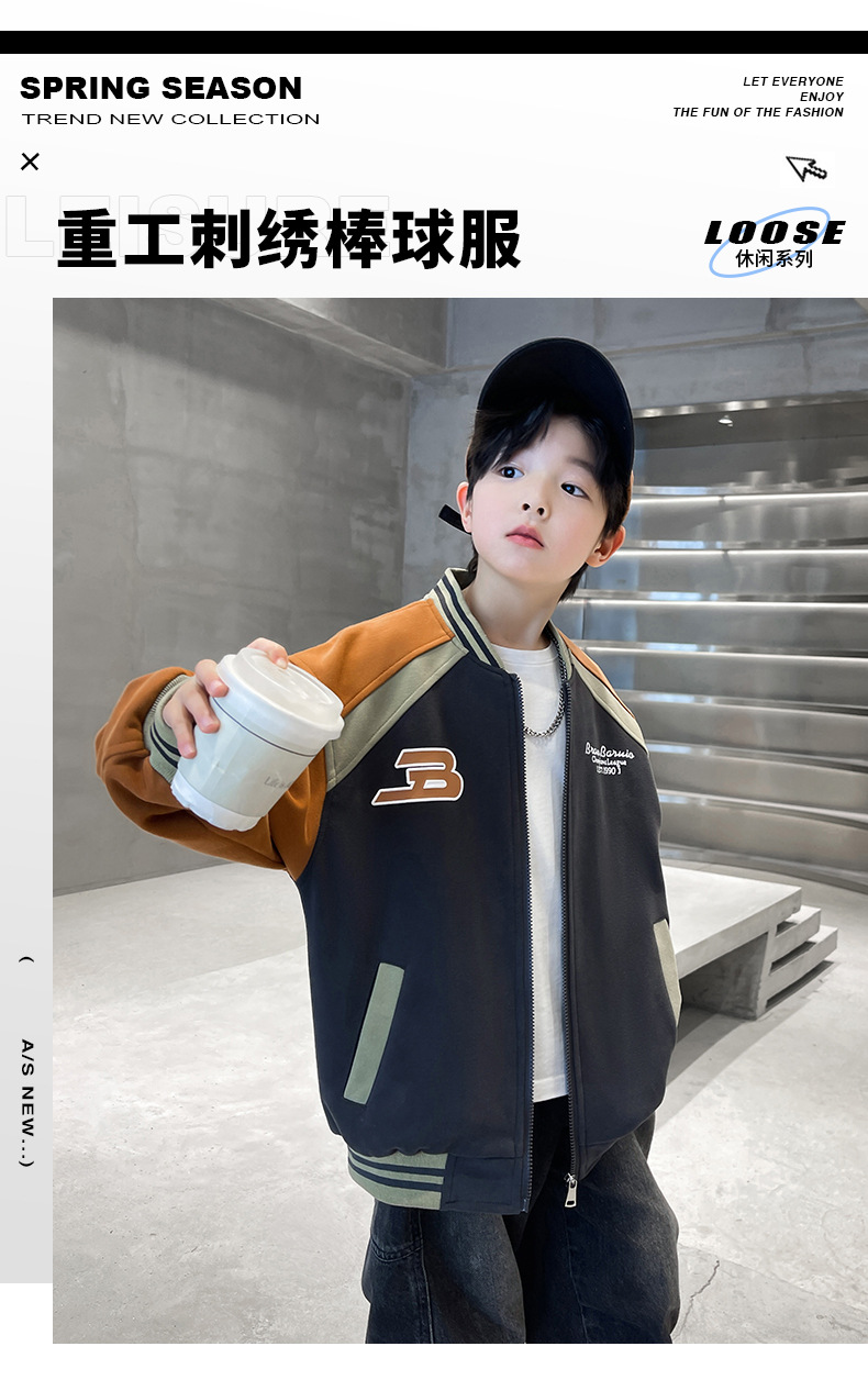 어린이 소년 봄 야구 세트 코트 2025 봄과 가을 새로운 스타일 중 큰 소년 봄 거리 튀김 옷스토어 가기