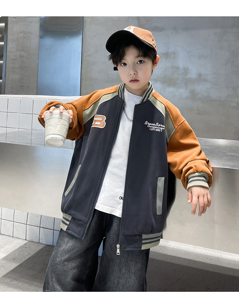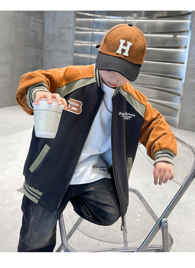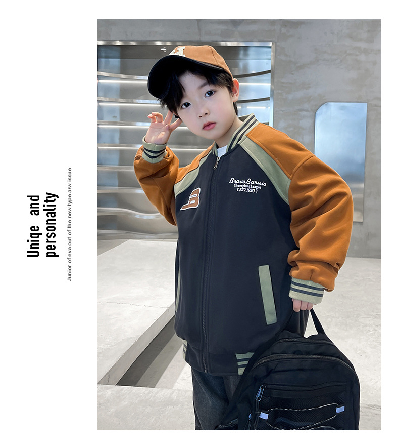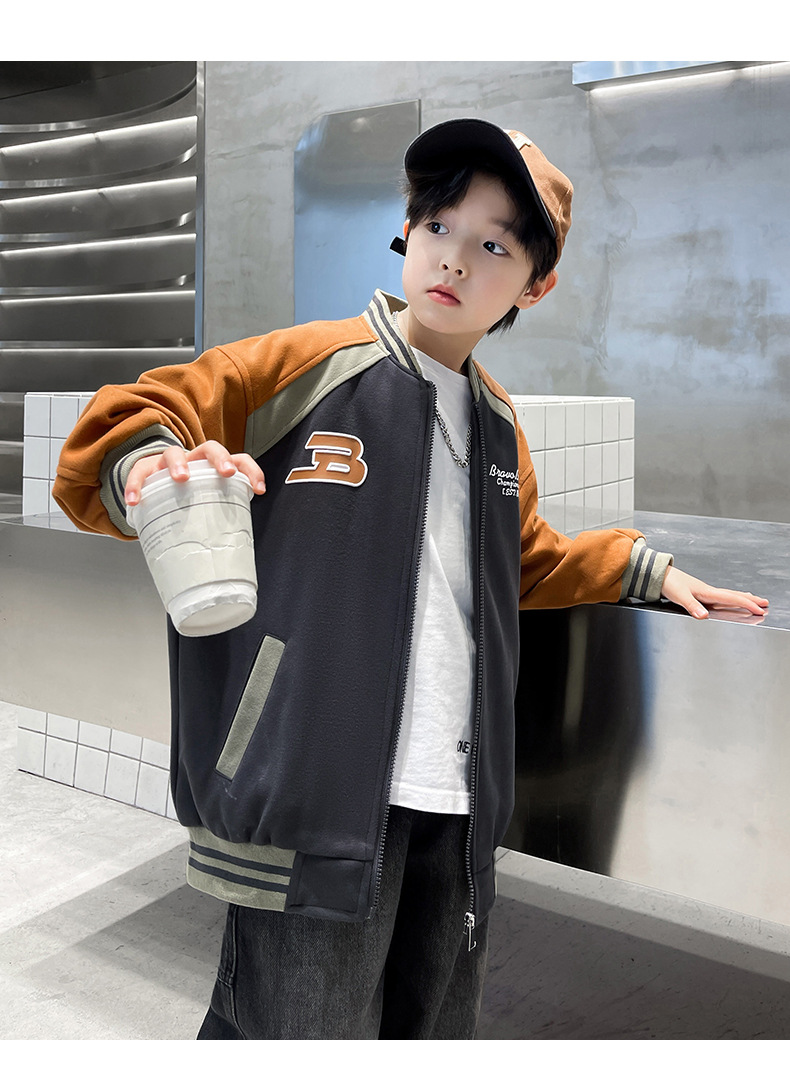 어린이 소년 봄 야구 세트 코트 2025 봄과 가을 새로운 스타일 중 큰 소년 봄 거리 튀김 옷스토어 가기