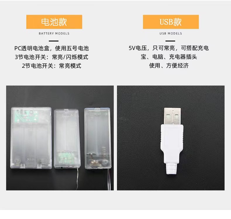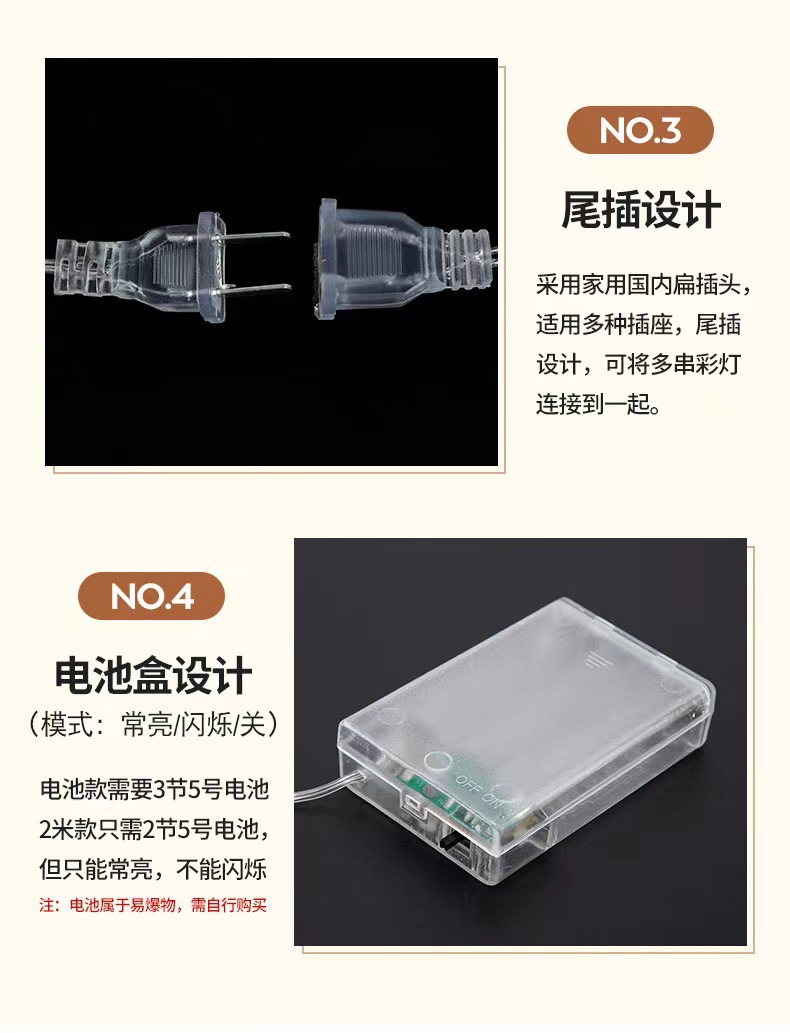 • [2 개의 배터리] 1.5 m 10 조명은 항상 켜져 있습니다.