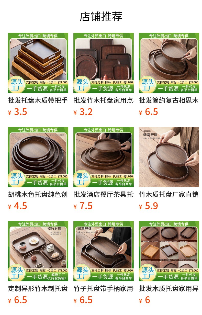 도매 나무 트레이 소형 가정용 일본식 돼지고기 트레이 커피 트레이 수납 트레이 미끄럼 방지 식판 로고 인쇄 가능스토어 가기