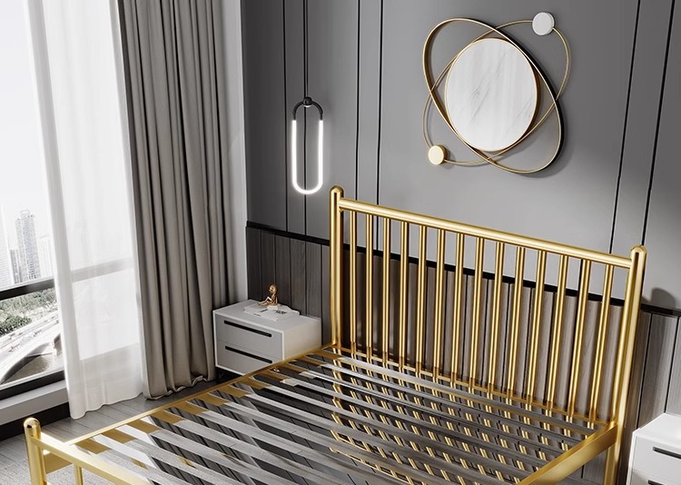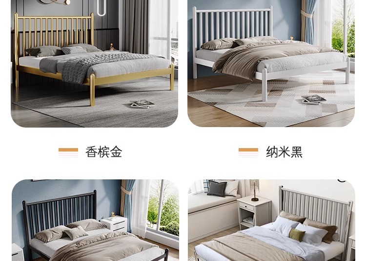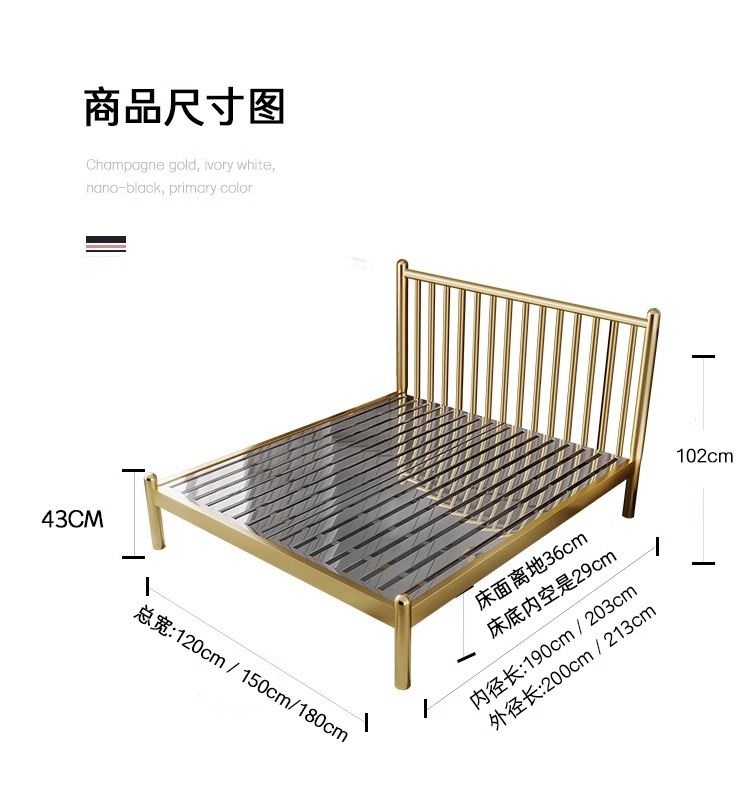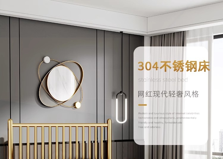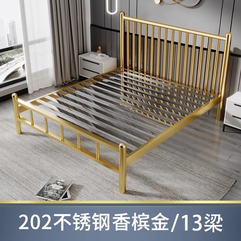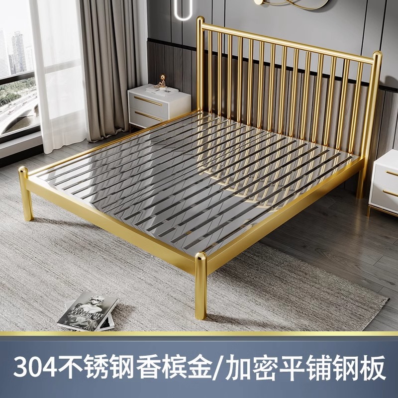 304 스테인레스 스틸 침대 1.68m 싱글 더블 침대 현대적인 미니멀리스트 임대 아파트 인터넷 연예인 라이트 럭셔리 철 침대