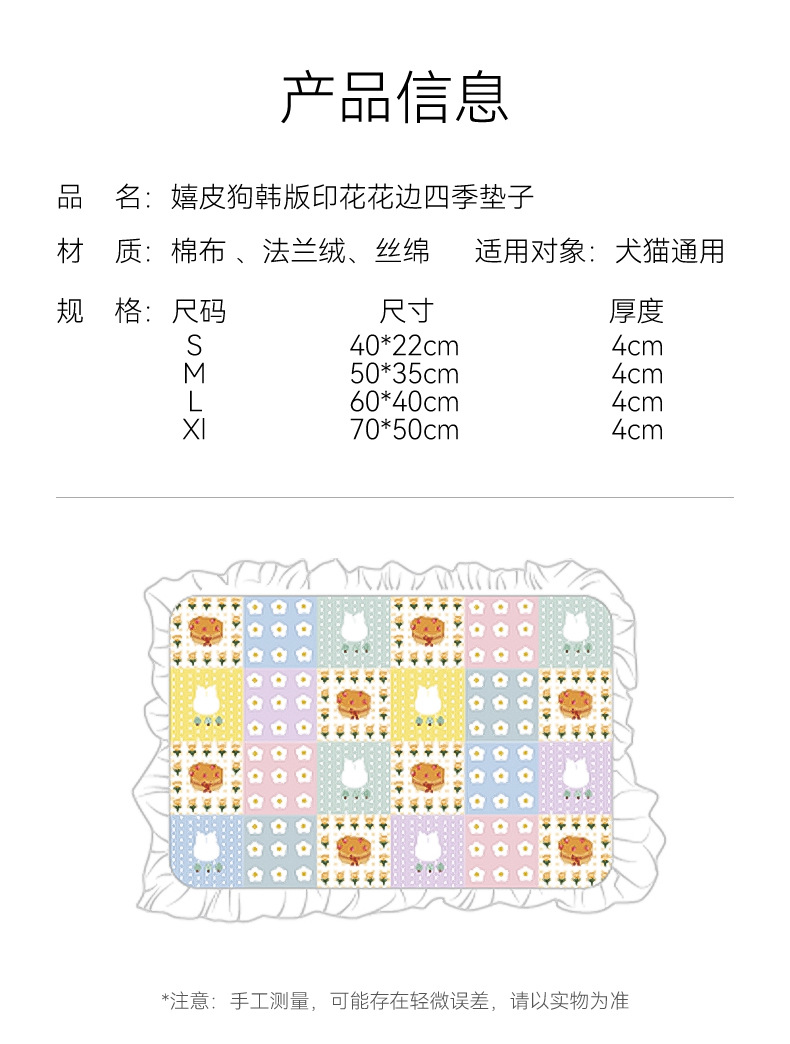 한국식 프린트 레이스 사계절 매트 봄과 여름 가정 애완 동물 매트 개 잠자는 매트 사육장 고양이 둥지 양면