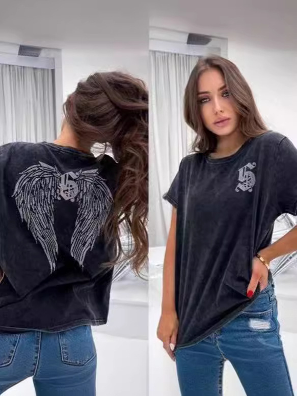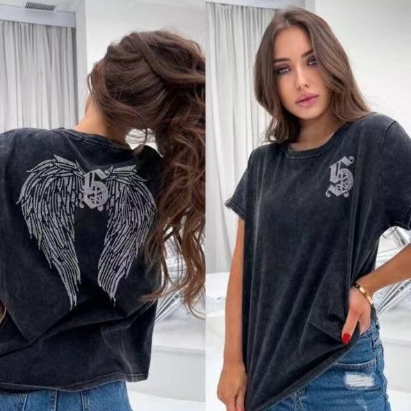 100% 코튼 미국 패션 브랜드 반팔 티셔츠 여름 빈티지 티셔츠 캐주얼 스타일 여성 하프 슬리브 탑