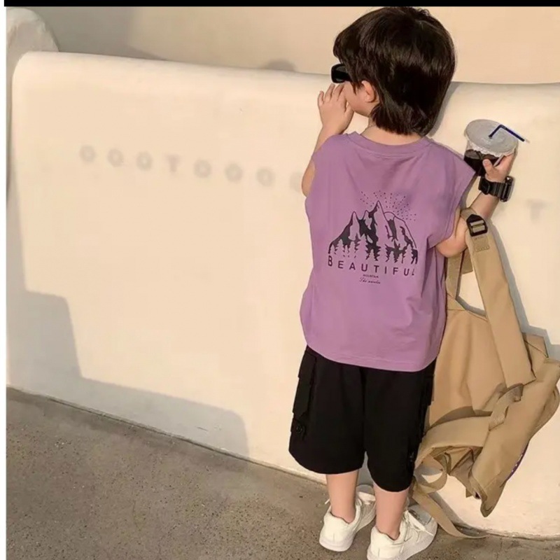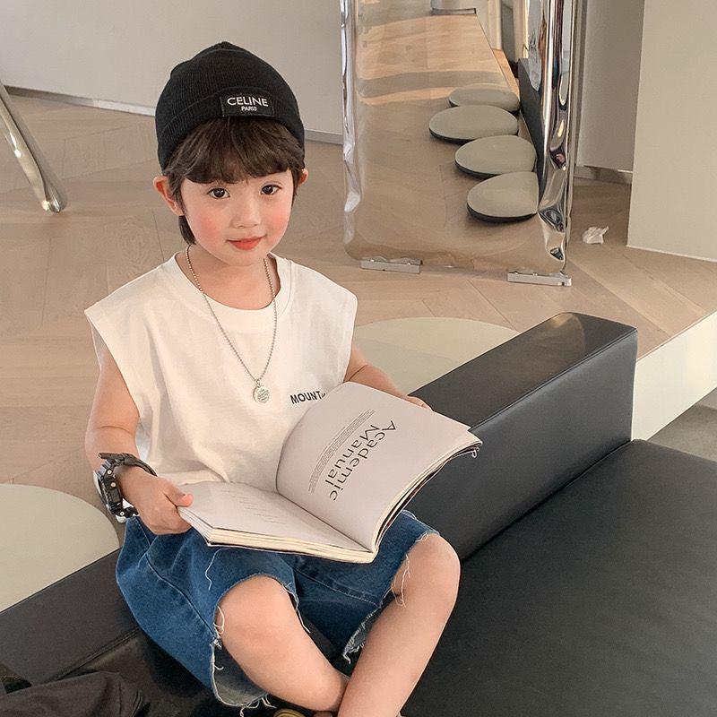 어린이 조끼 최고 소년 2024 여름 새 편지 산 느슨한 조끼 아기 성격 민소매 패션 T스토어 가기